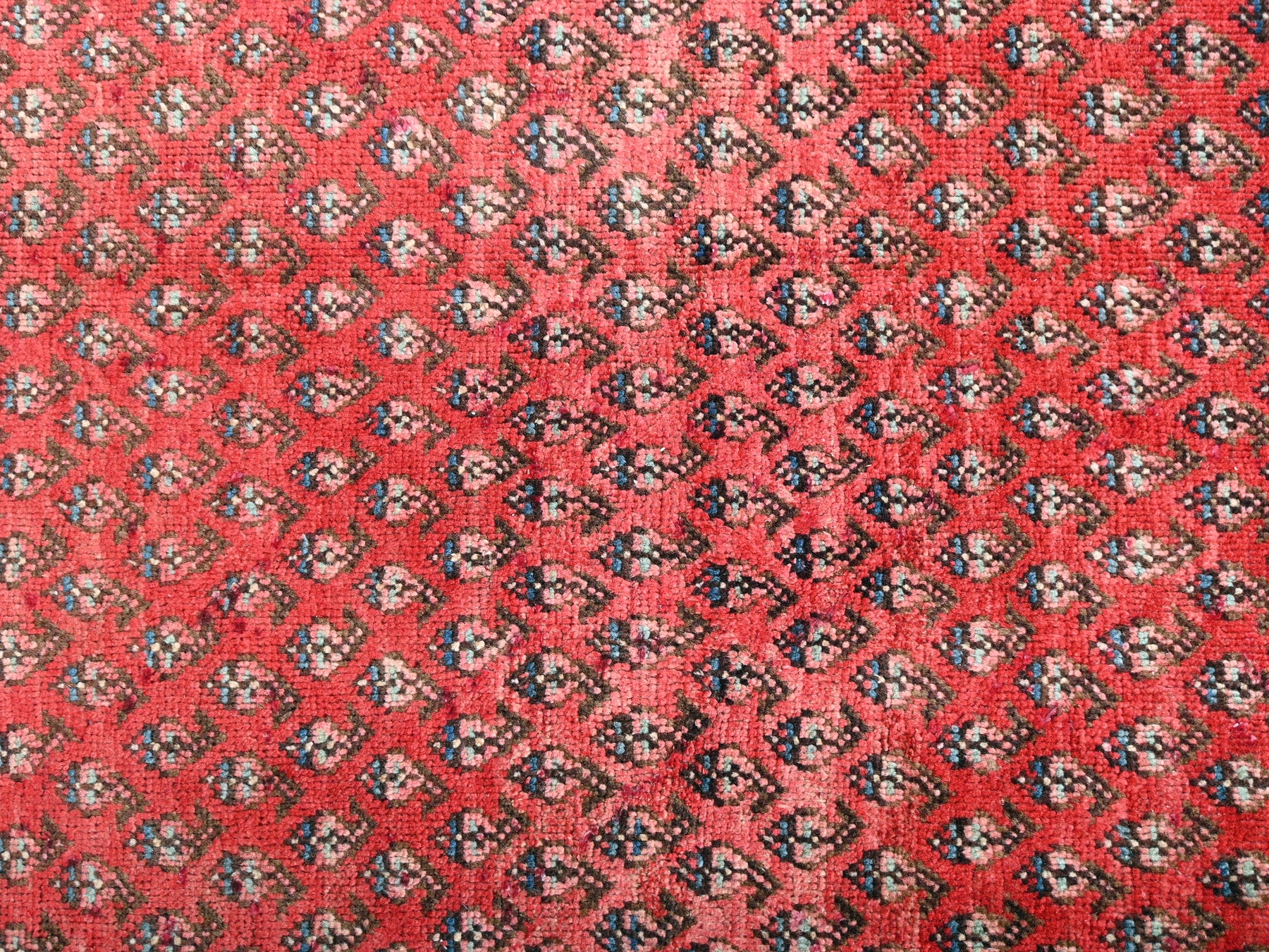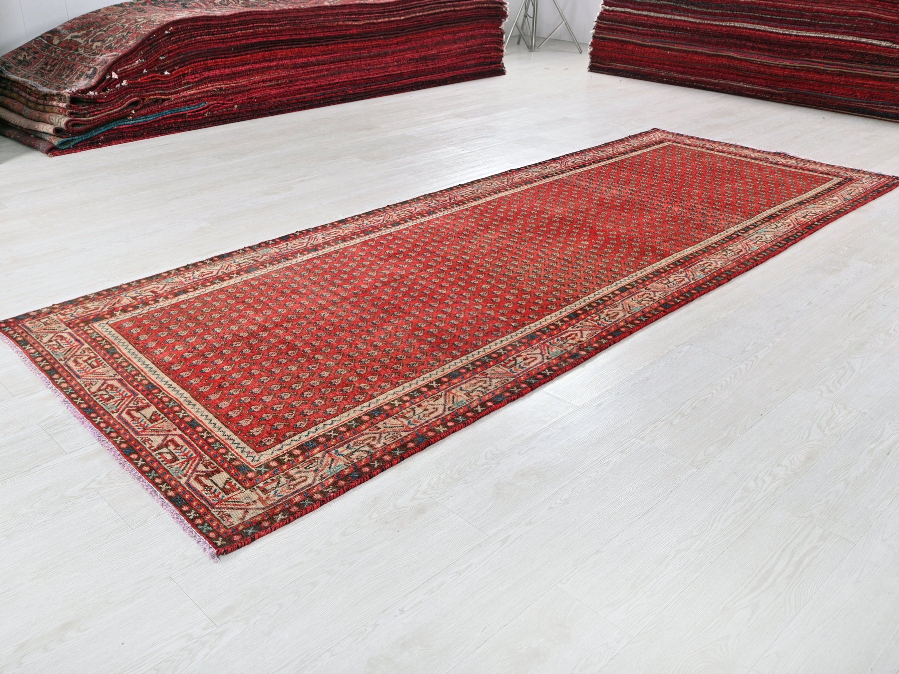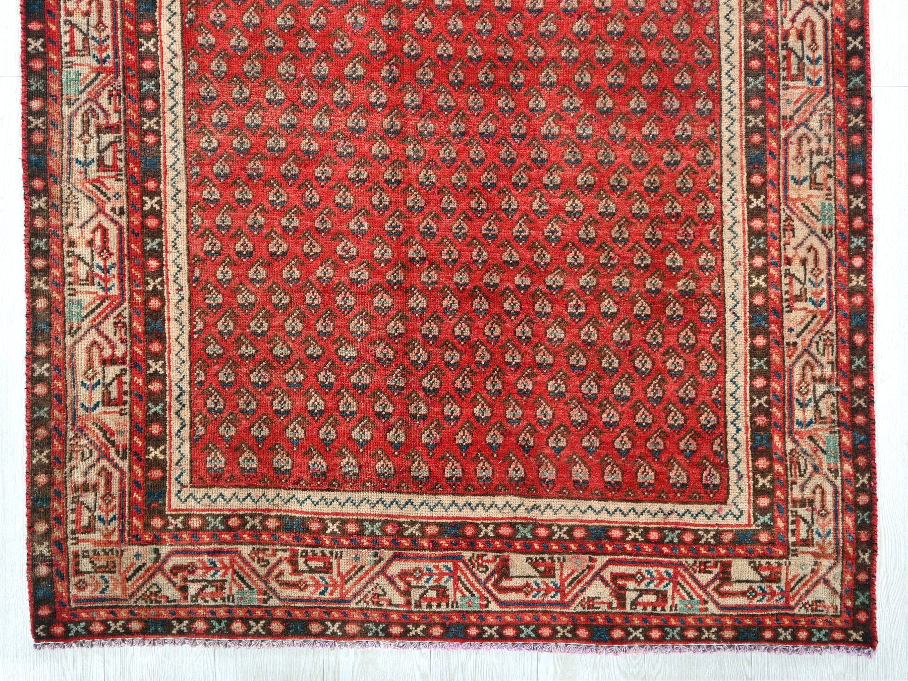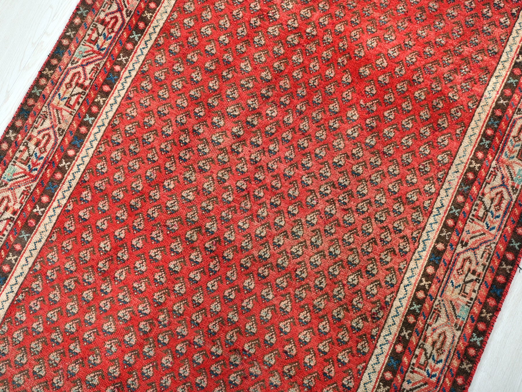 This is a hand-knotted, one-of-a-kind vintage rug. Due to the nature of this piece, there may be slight imperfections in its wear, shape, dimensions, and color. All of our rugs are professionally cleaned and repaired.