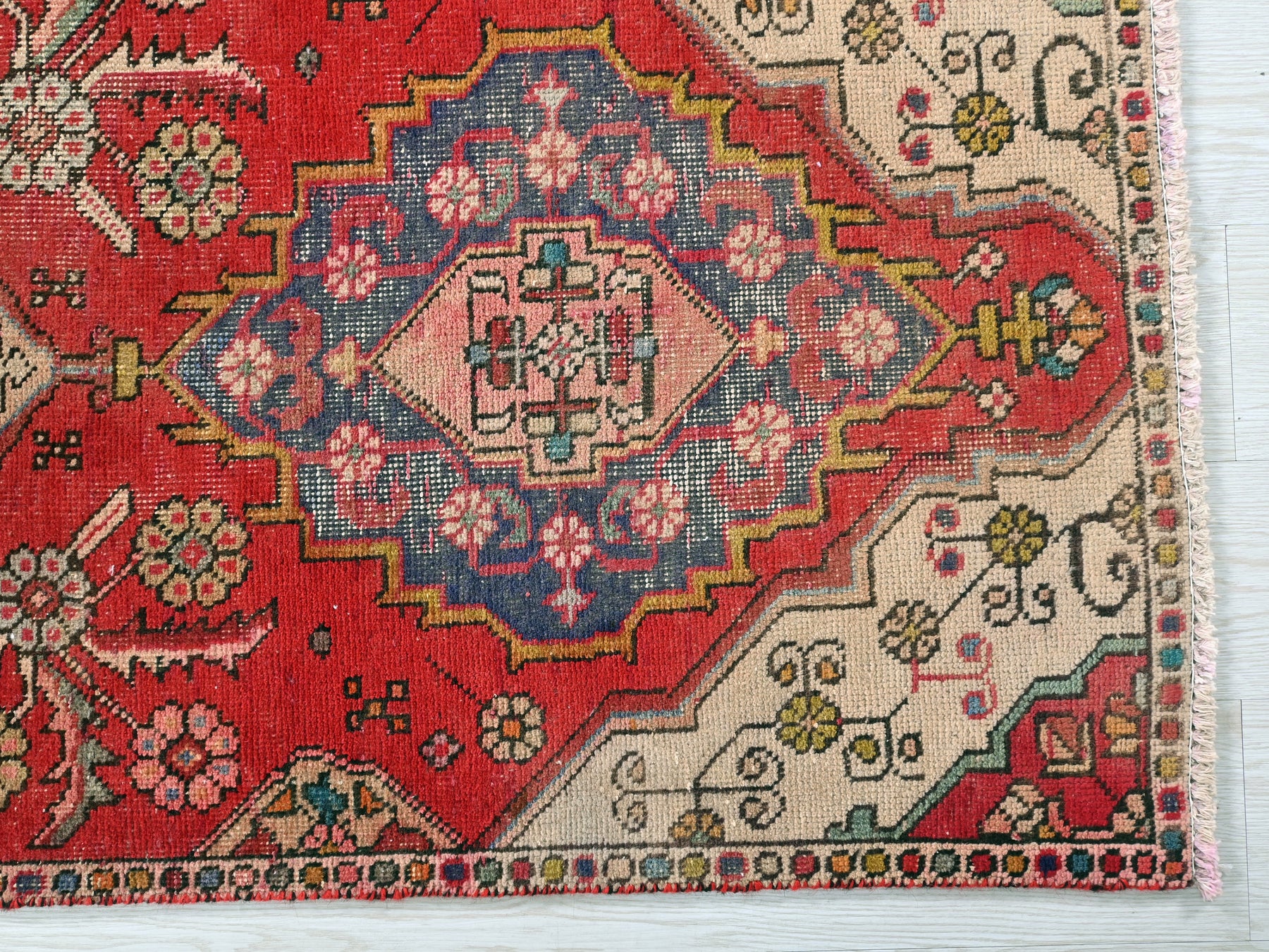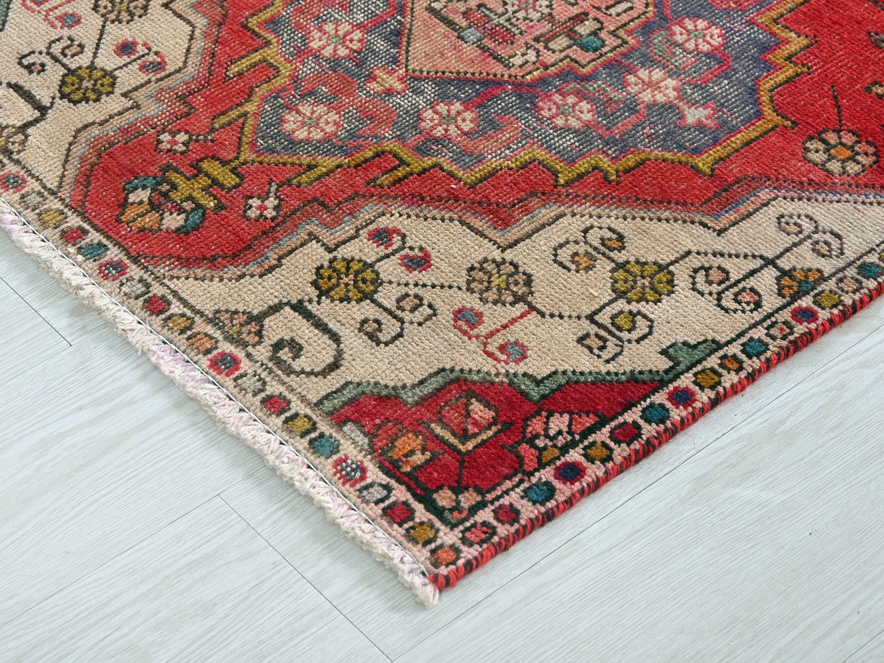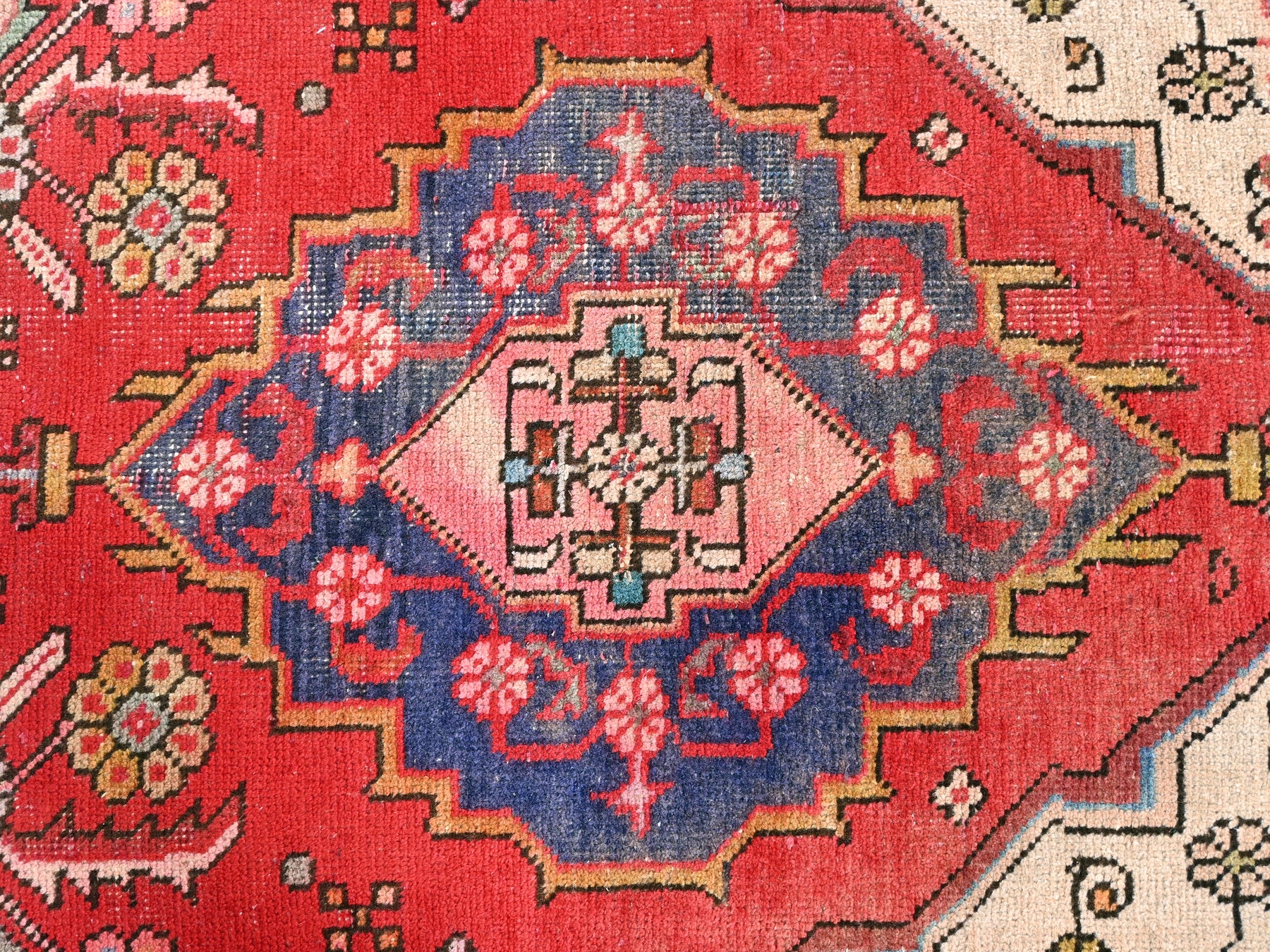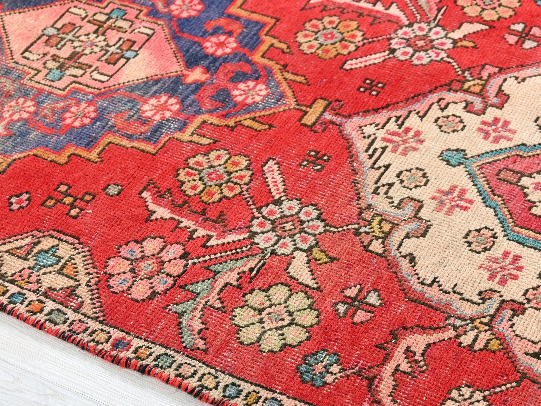This is a hand-knotted, one-of-a-kind vintage rug. Due to the nature of this piece, there may be slight imperfections in its wear, shape, dimensions, and color. All of our rugs are professionally cleaned and repaired.