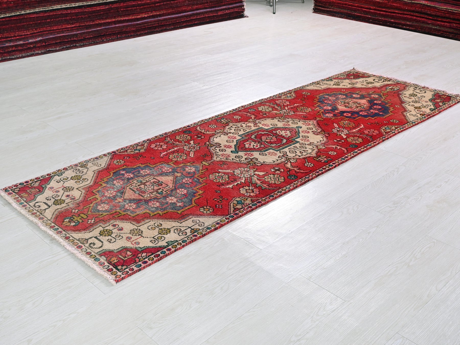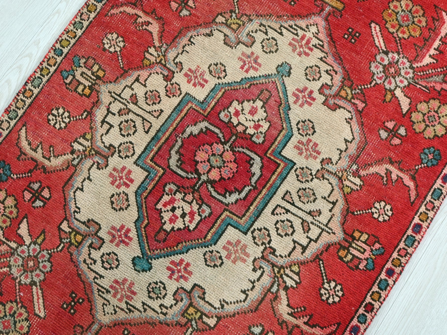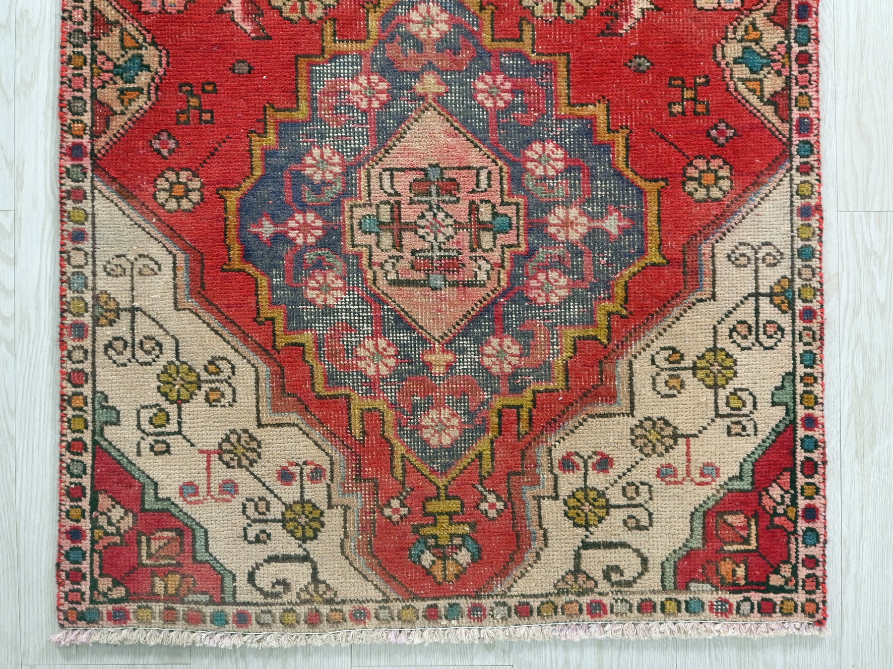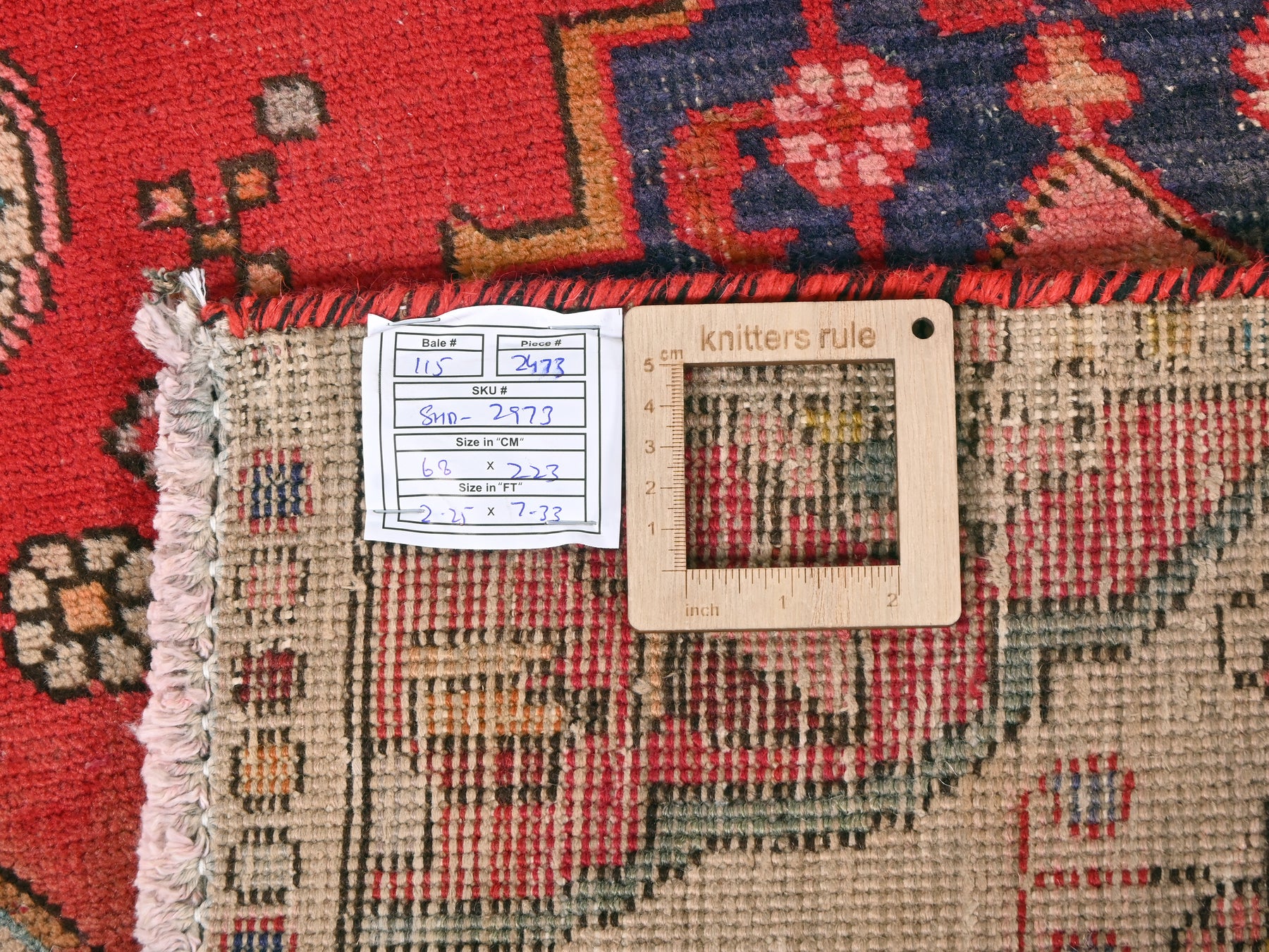 This is a hand-knotted, one-of-a-kind vintage rug. Due to the nature of this piece, there may be slight imperfections in its wear, shape, dimensions, and color. All of our rugs are professionally cleaned and repaired.