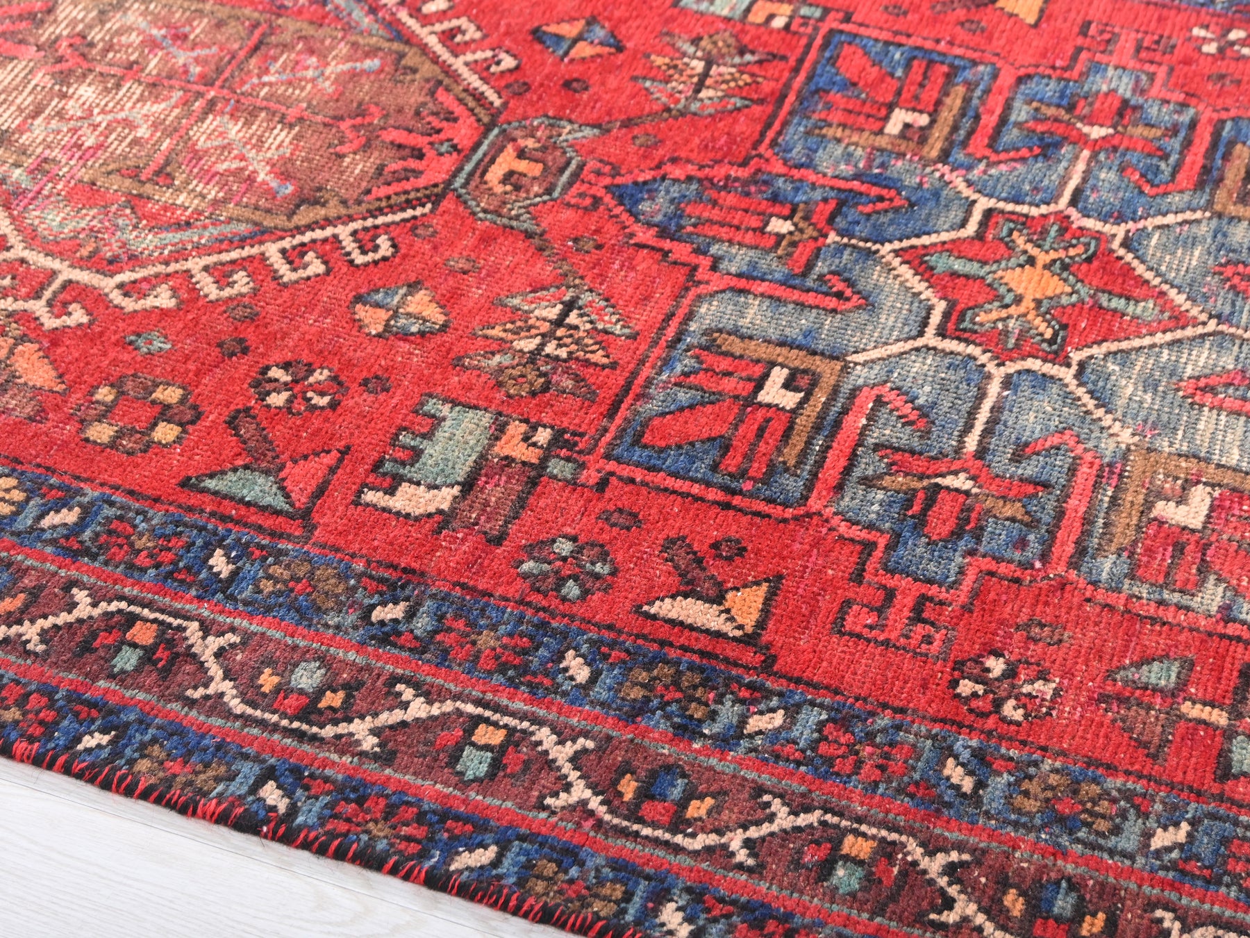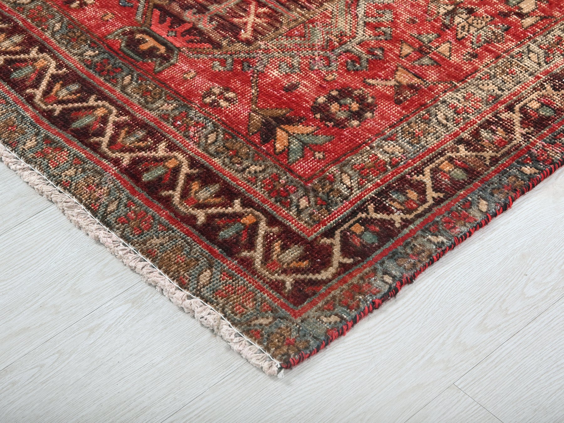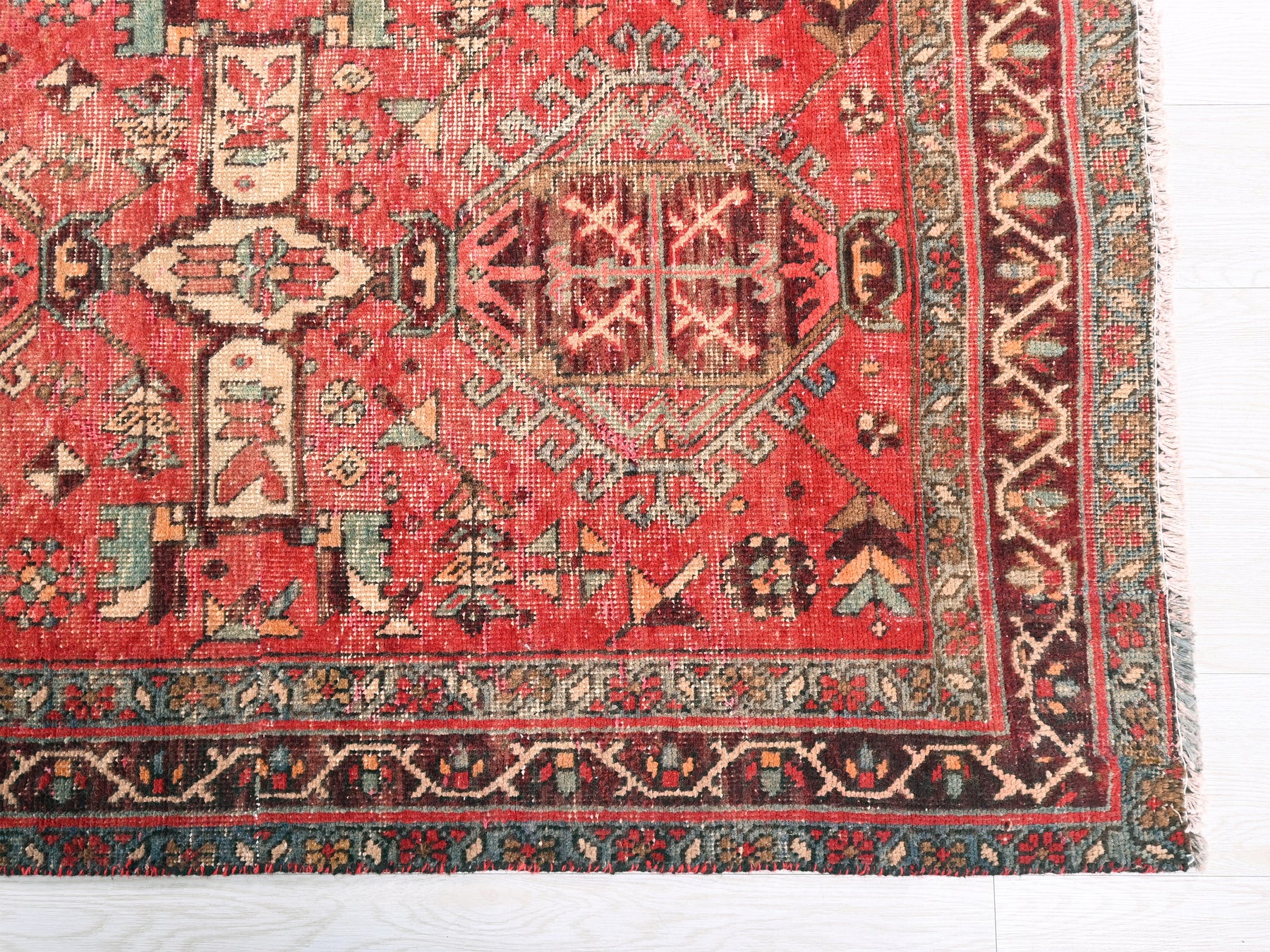 This is a hand-knotted, one-of-a-kind vintage rug. Due to the nature of this piece, there may be slight imperfections in its wear, shape, dimensions, and color. All of our rugs are professionally cleaned and repaired.