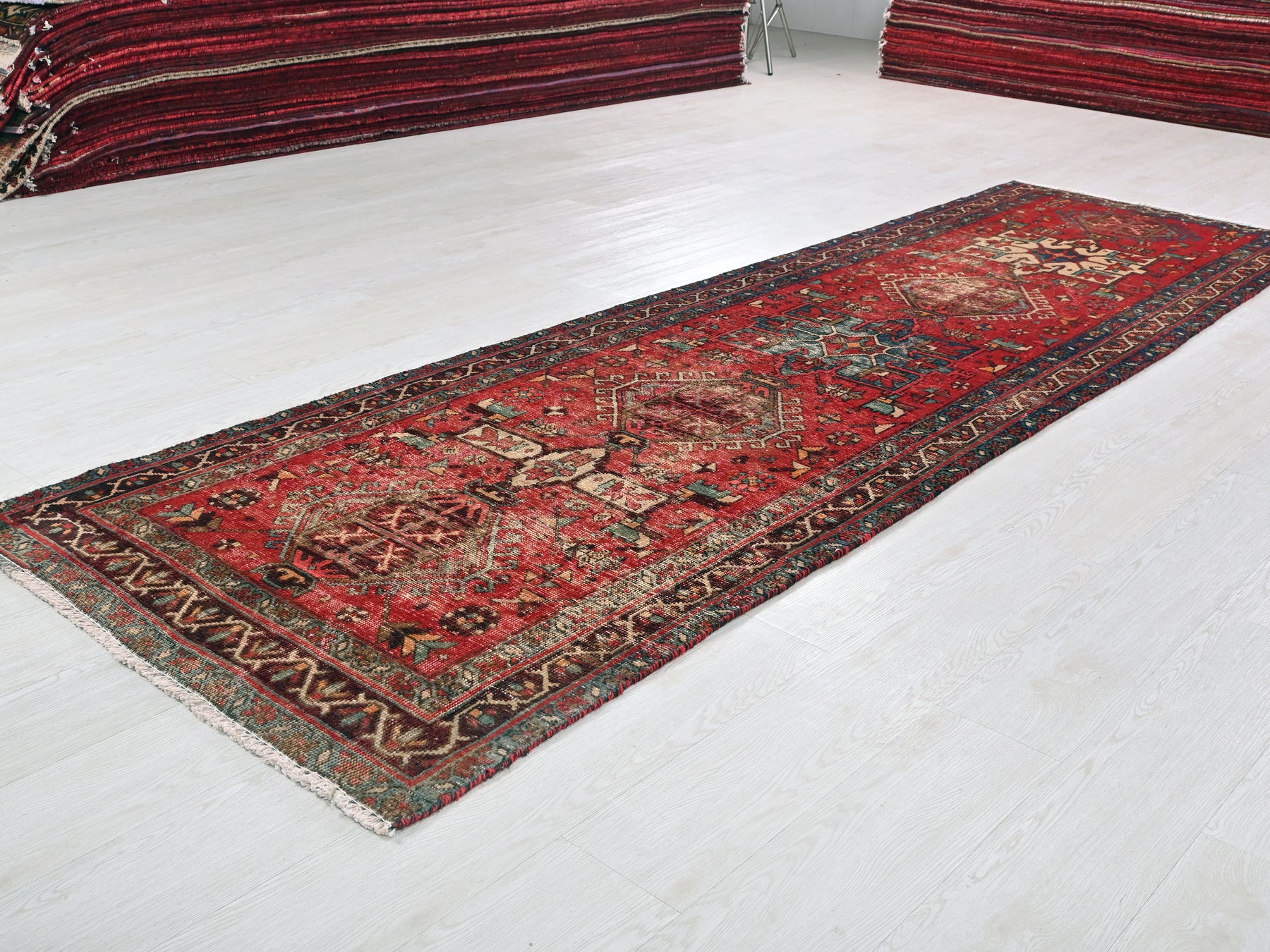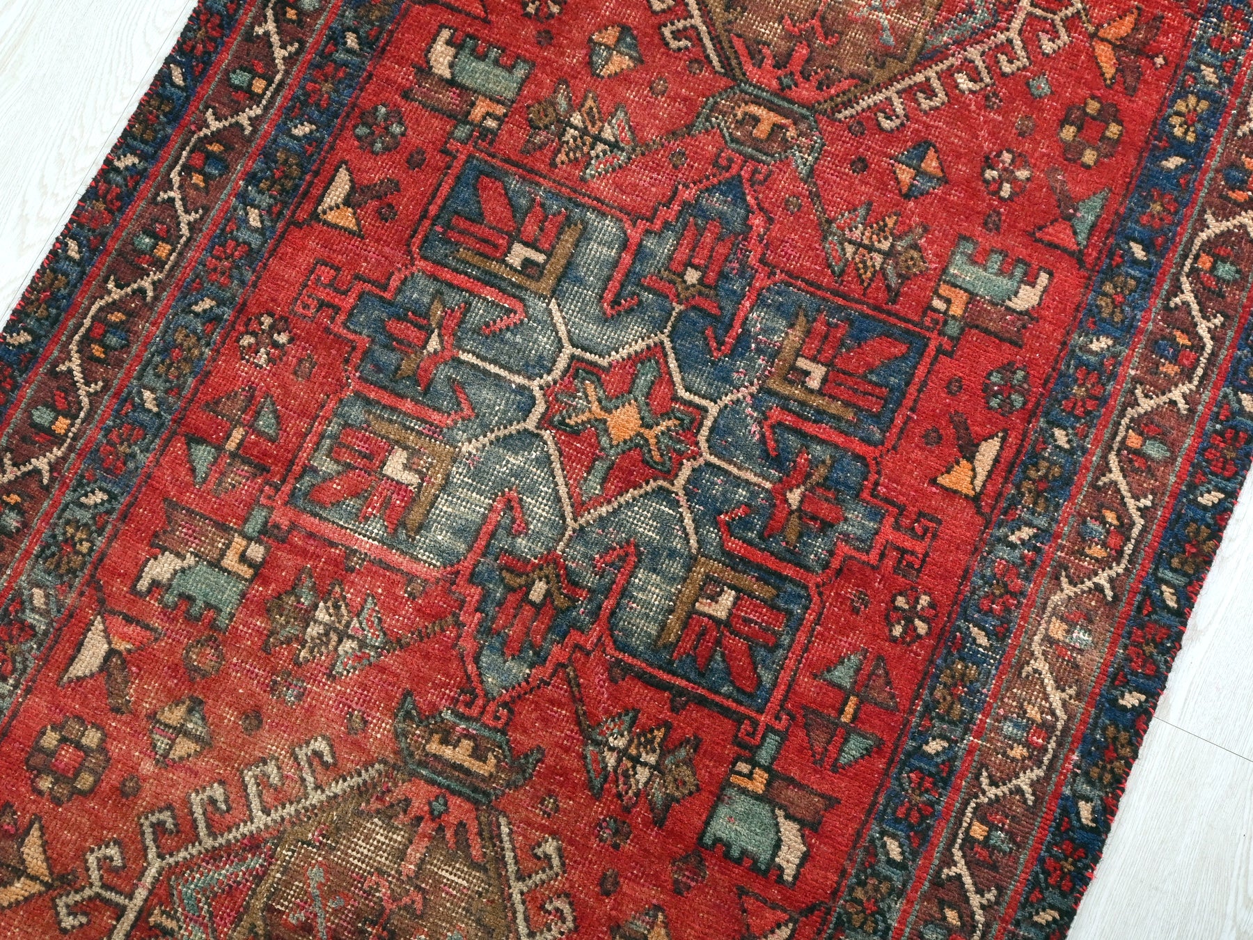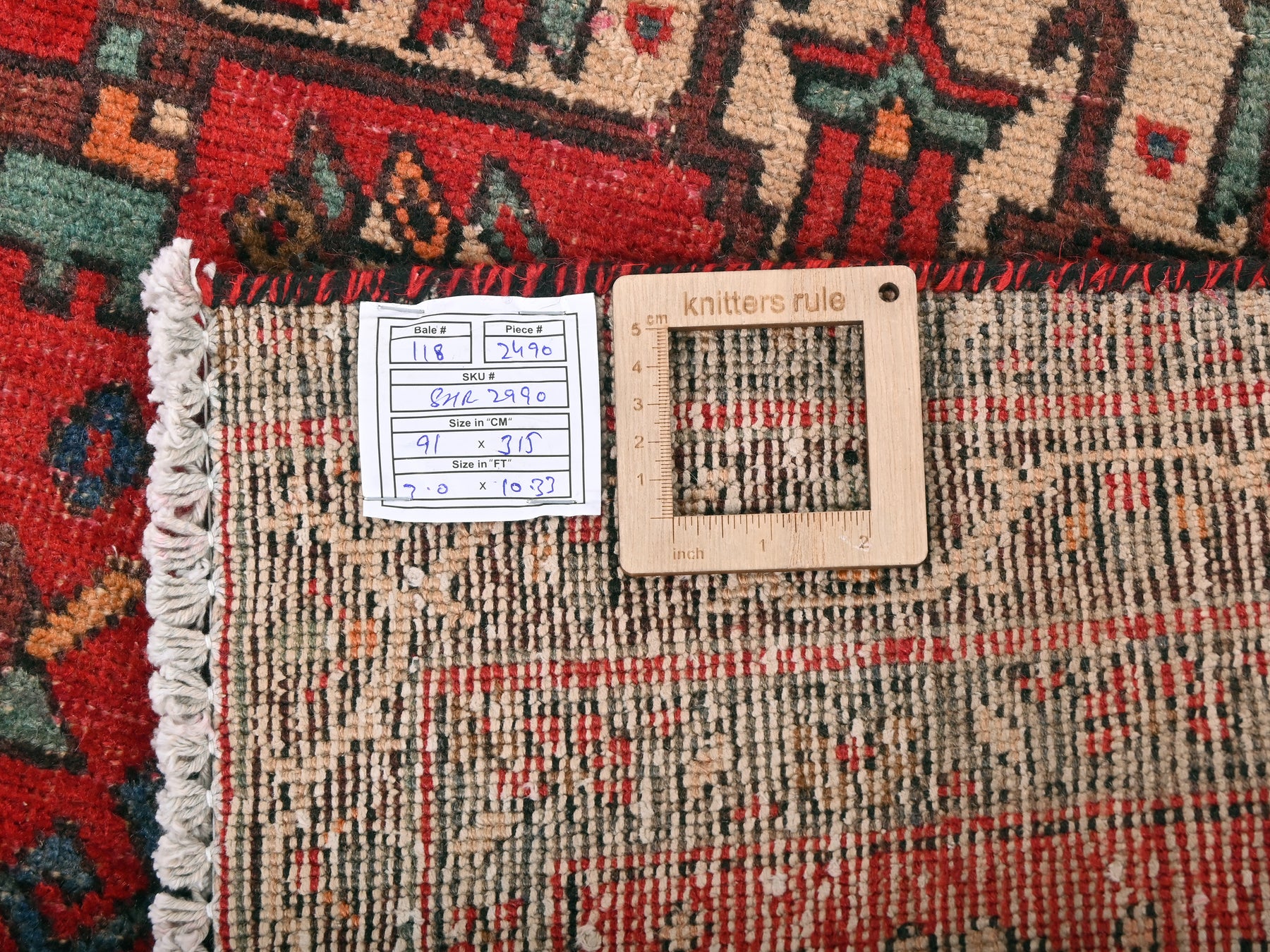 This is a hand-knotted, one-of-a-kind vintage rug. Due to the nature of this piece, there may be slight imperfections in its wear, shape, dimensions, and color. All of our rugs are professionally cleaned and repaired.