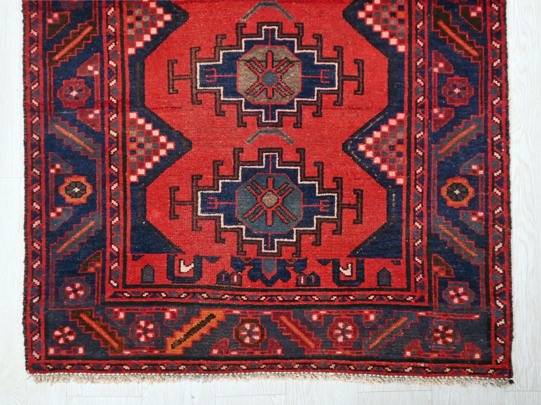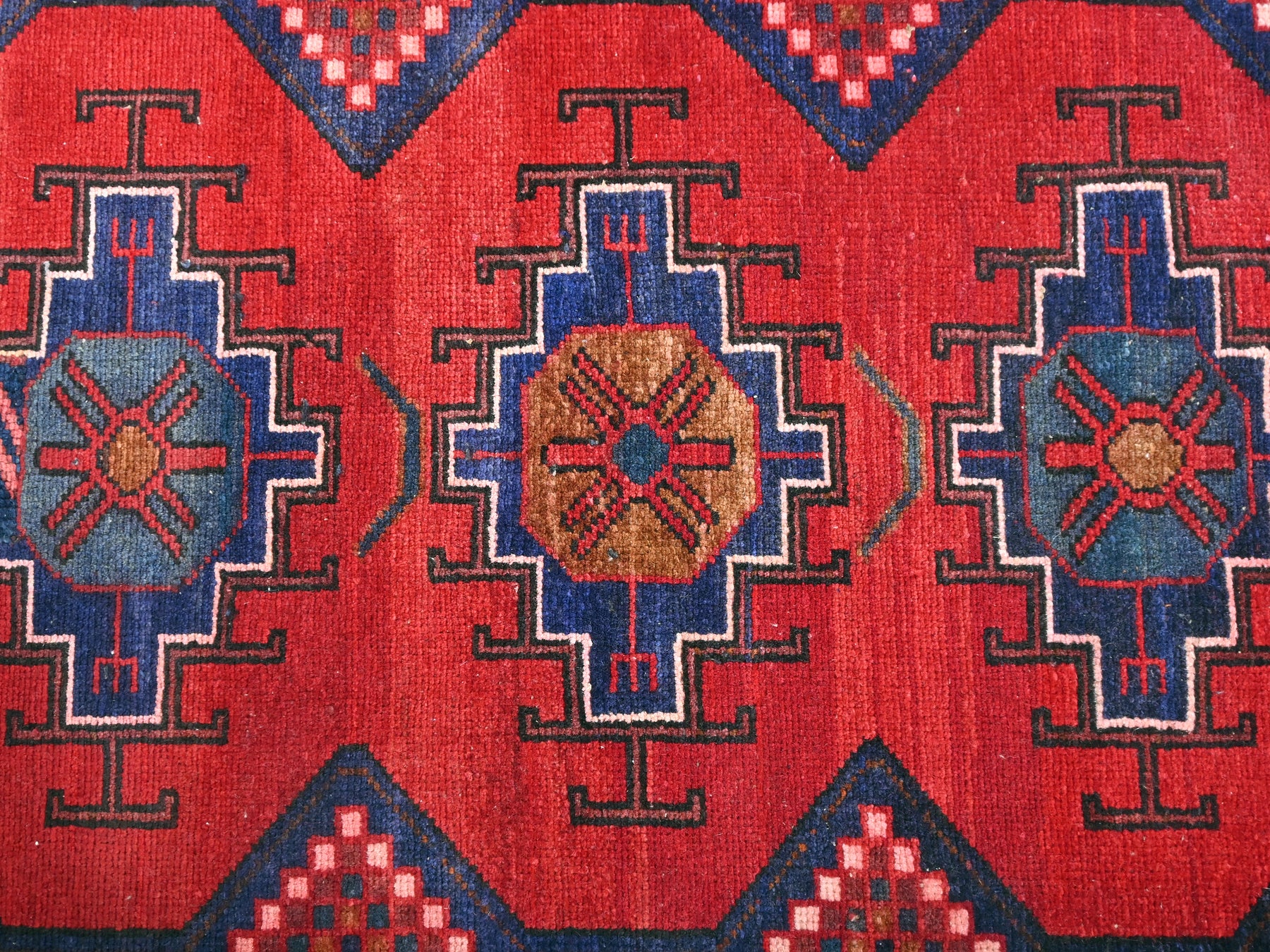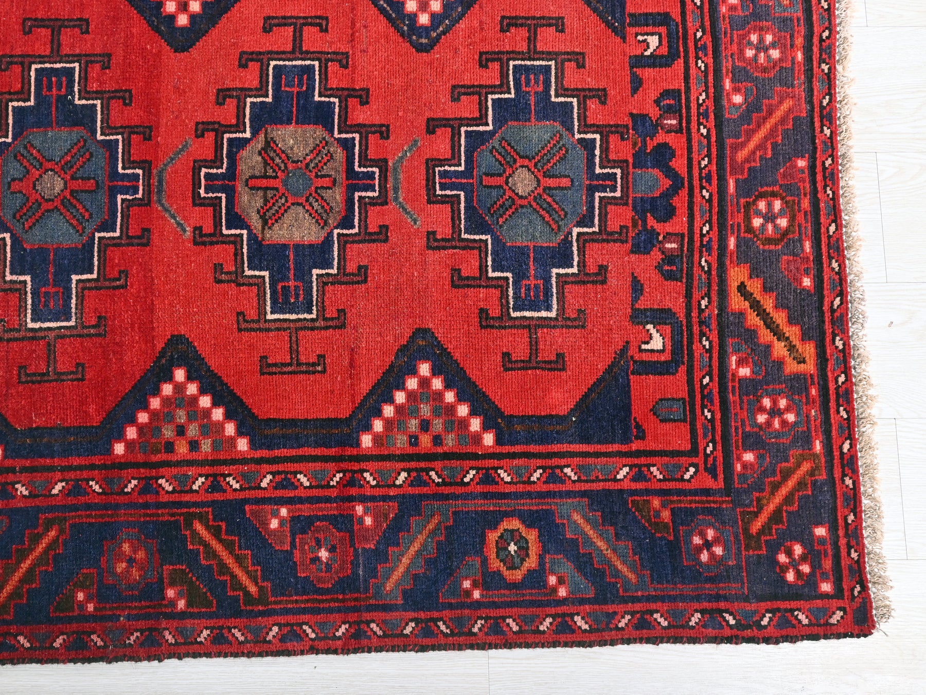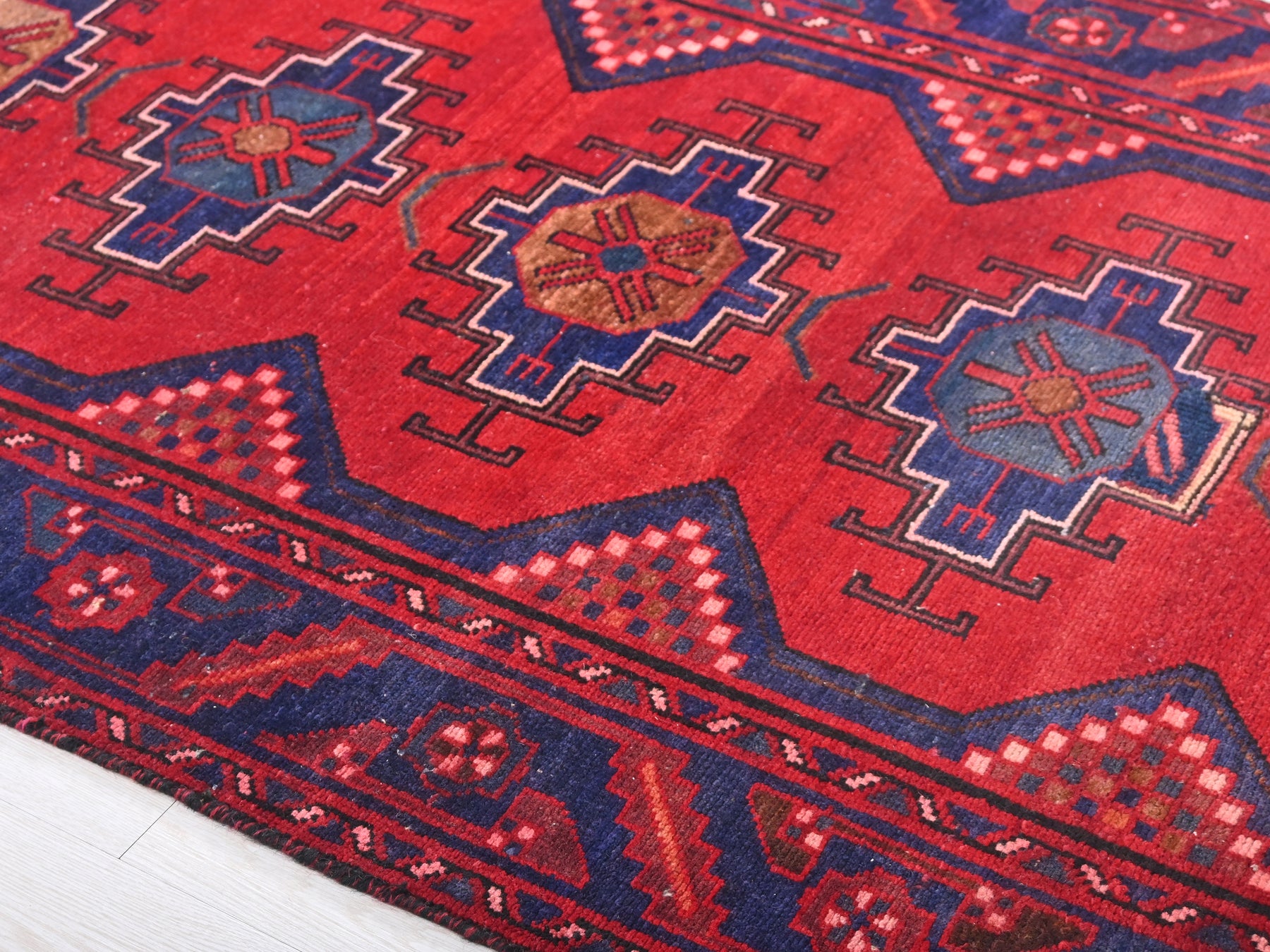 This is a hand-knotted, one-of-a-kind vintage rug. Due to the nature of this piece, there may be slight imperfections in its wear, shape, dimensions, and color. All of our rugs are professionally cleaned and repaired.