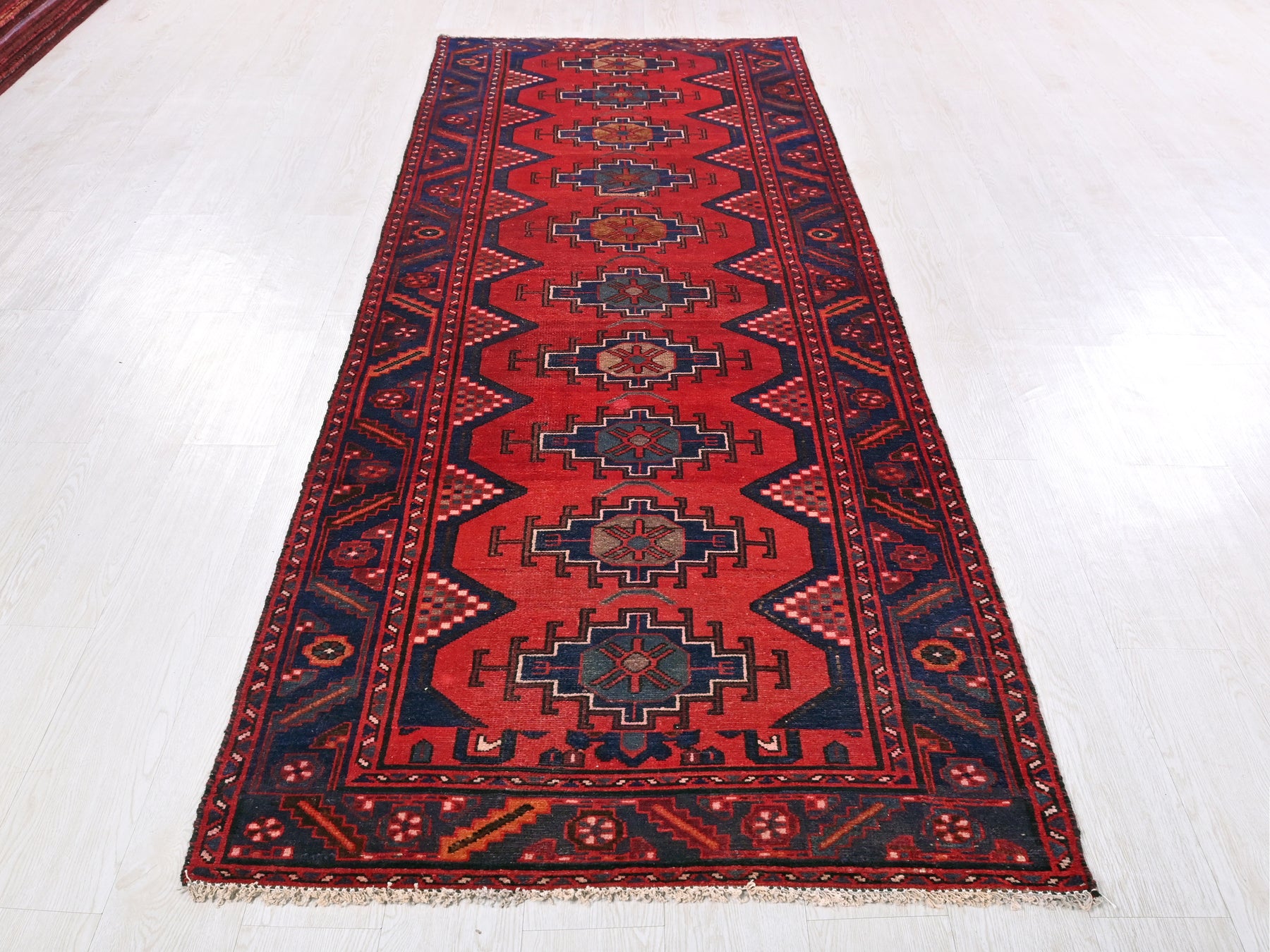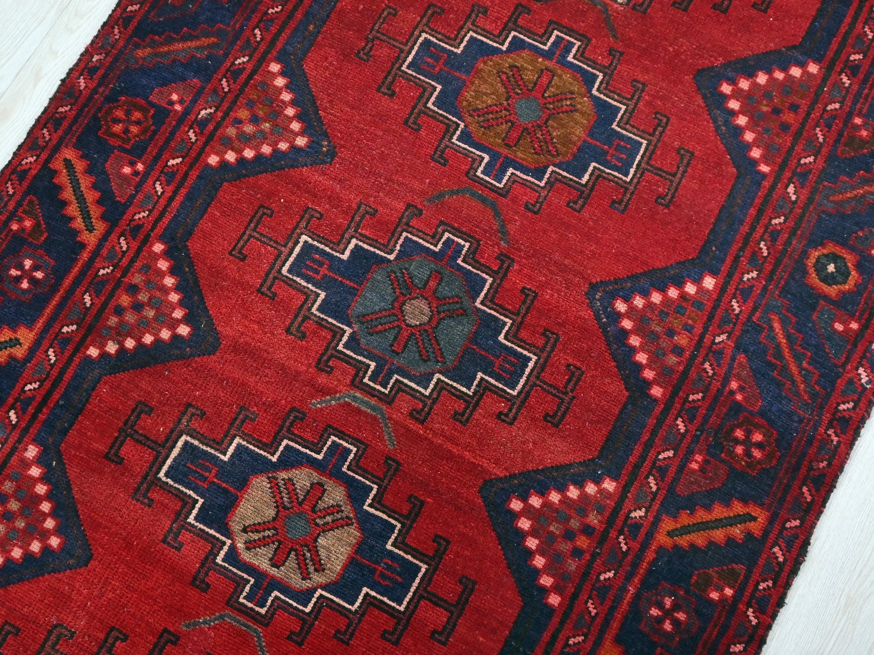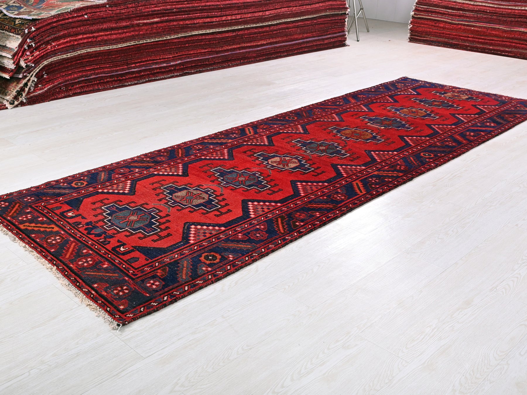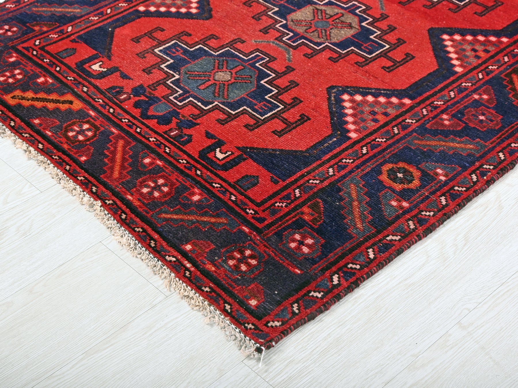 This is a hand-knotted, one-of-a-kind vintage rug. Due to the nature of this piece, there may be slight imperfections in its wear, shape, dimensions, and color. All of our rugs are professionally cleaned and repaired.