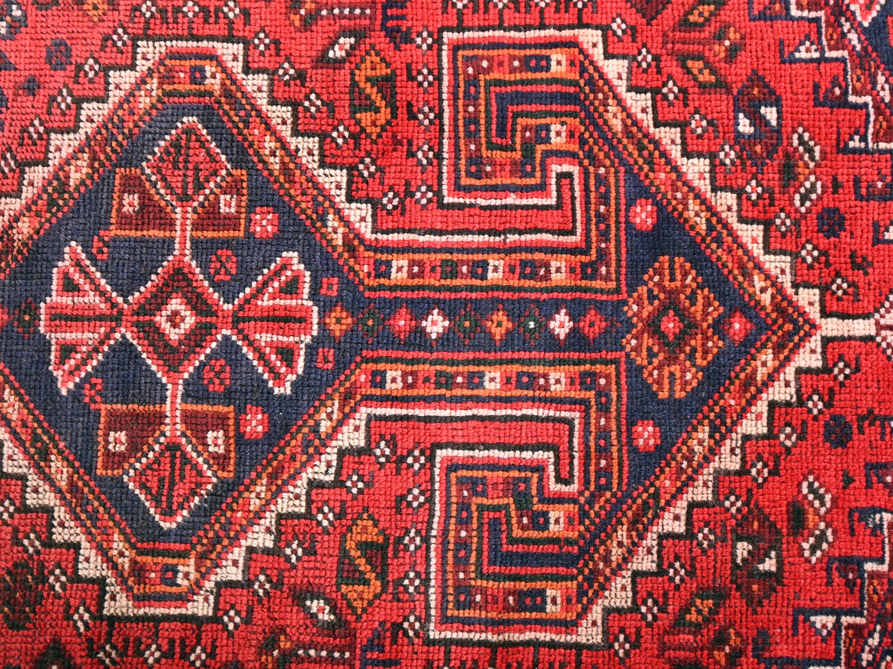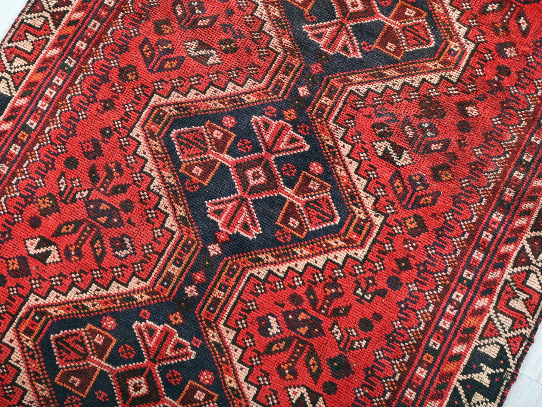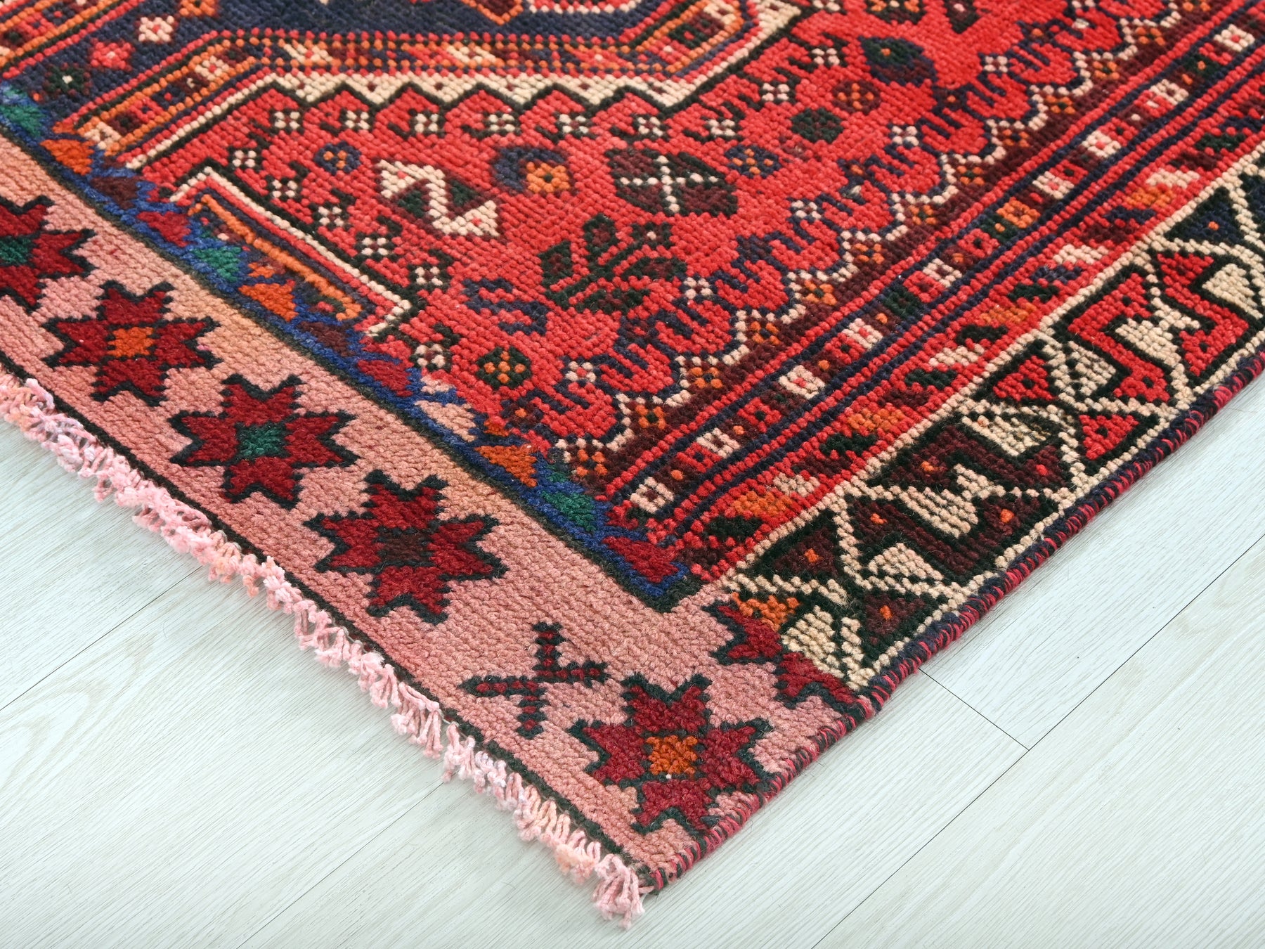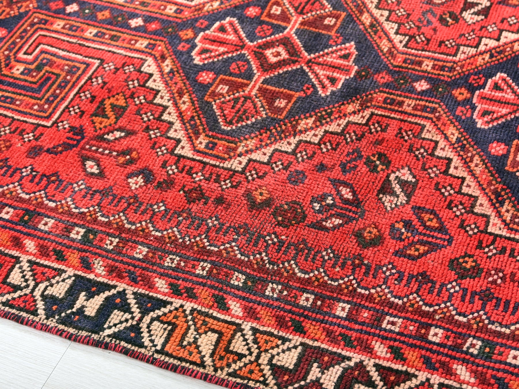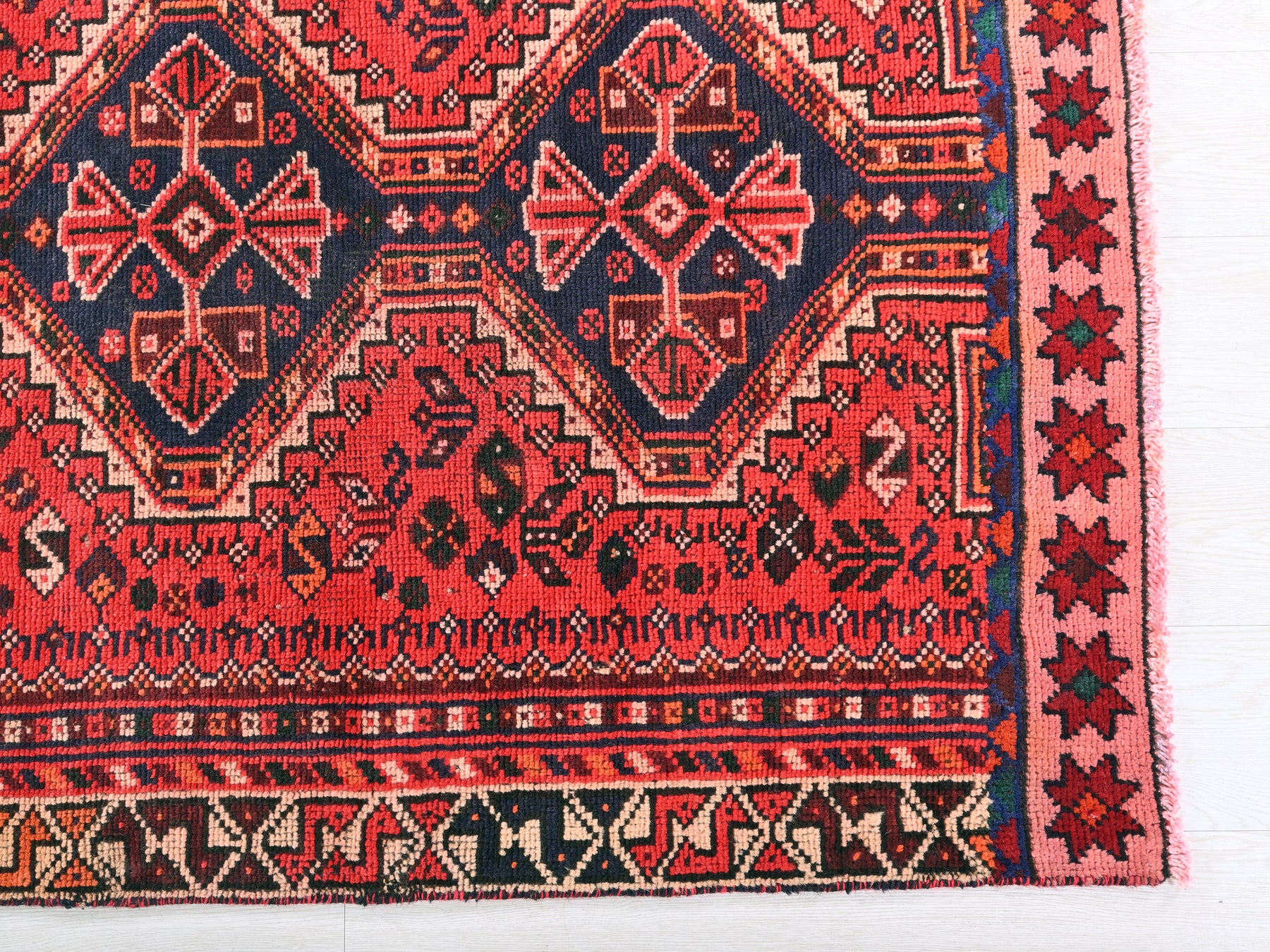 This is a hand-knotted, one-of-a-kind vintage rug. Due to the nature of this piece, there may be slight imperfections in its wear, shape, dimensions, and color. All of our rugs are professionally cleaned and repaired.