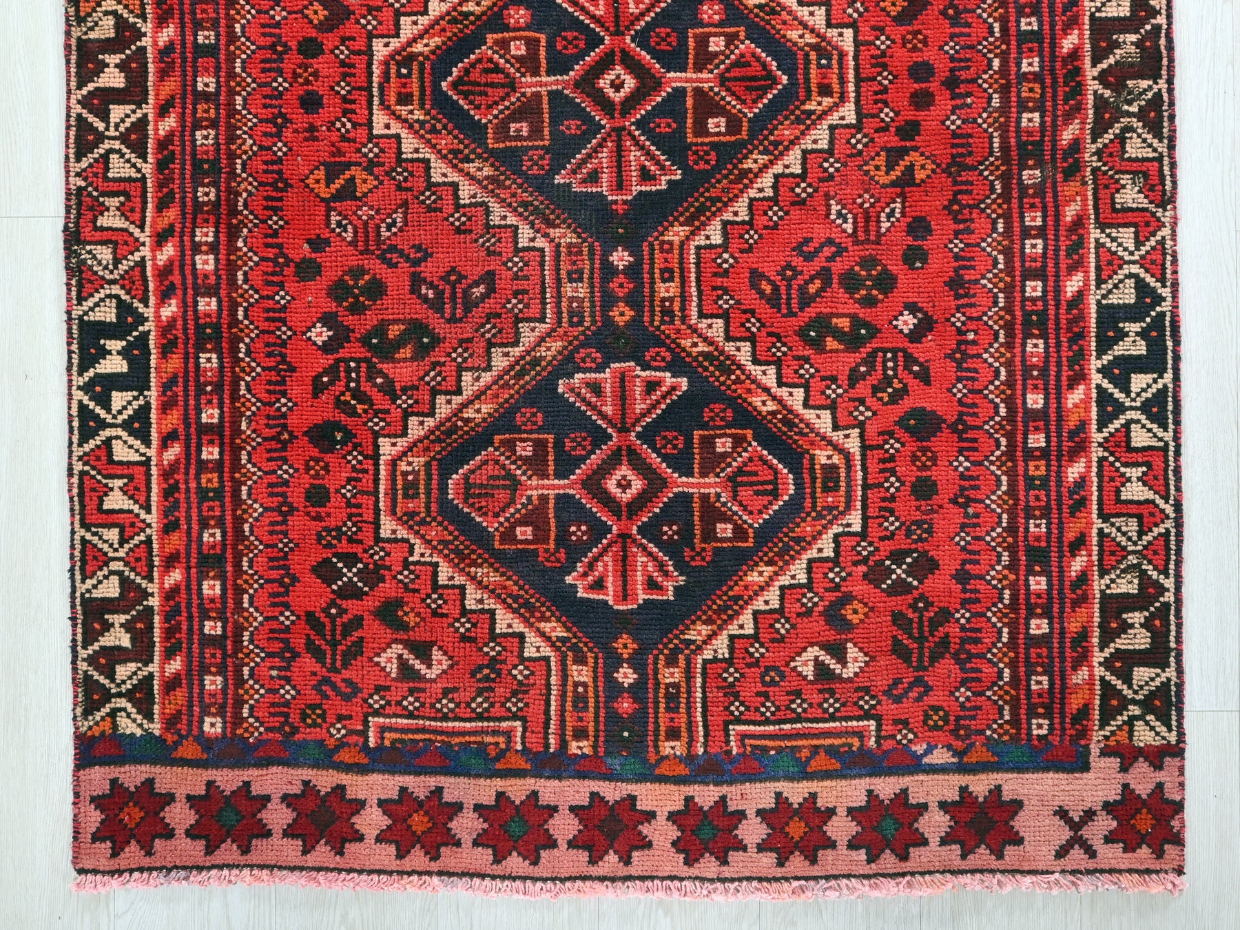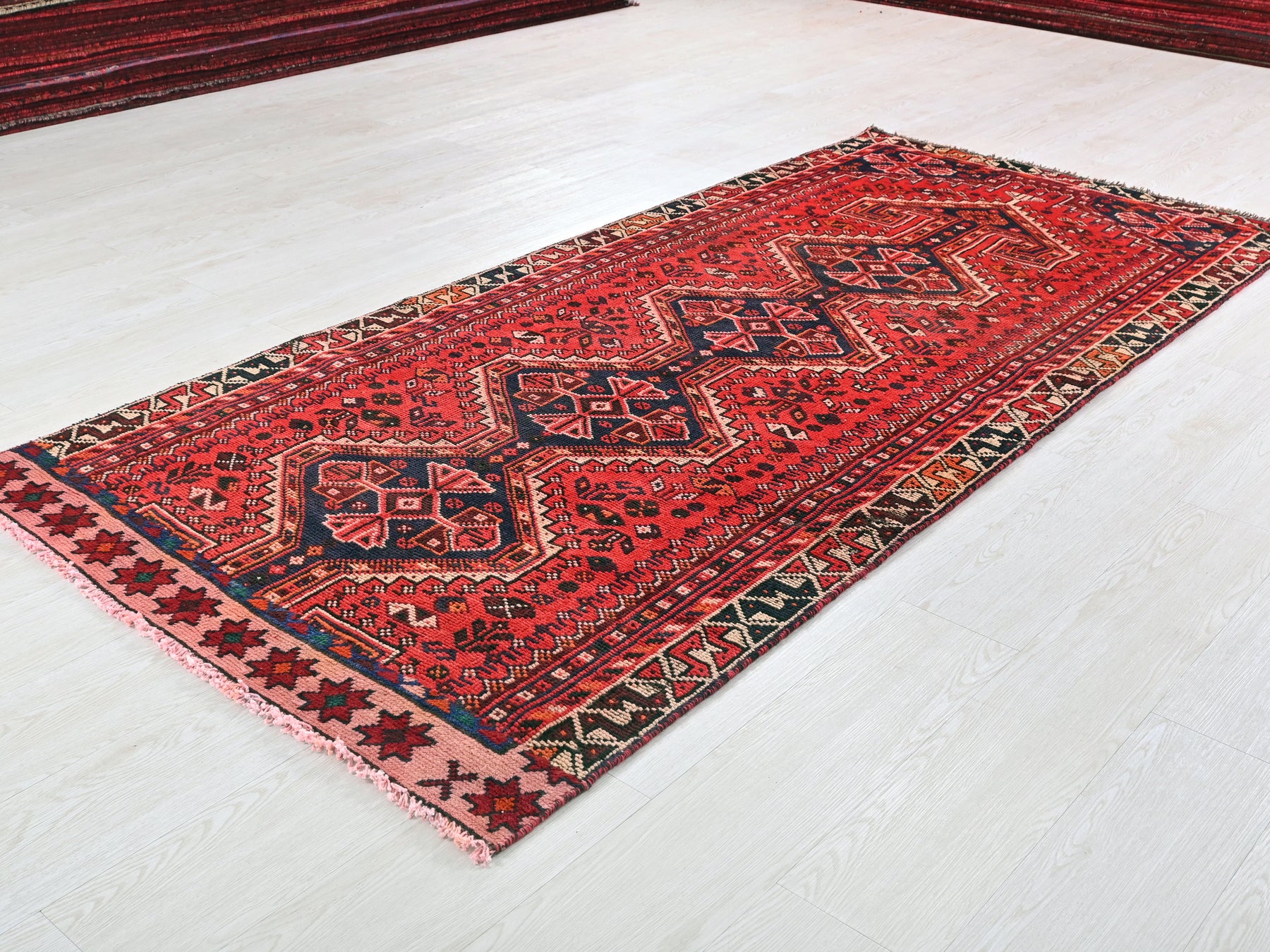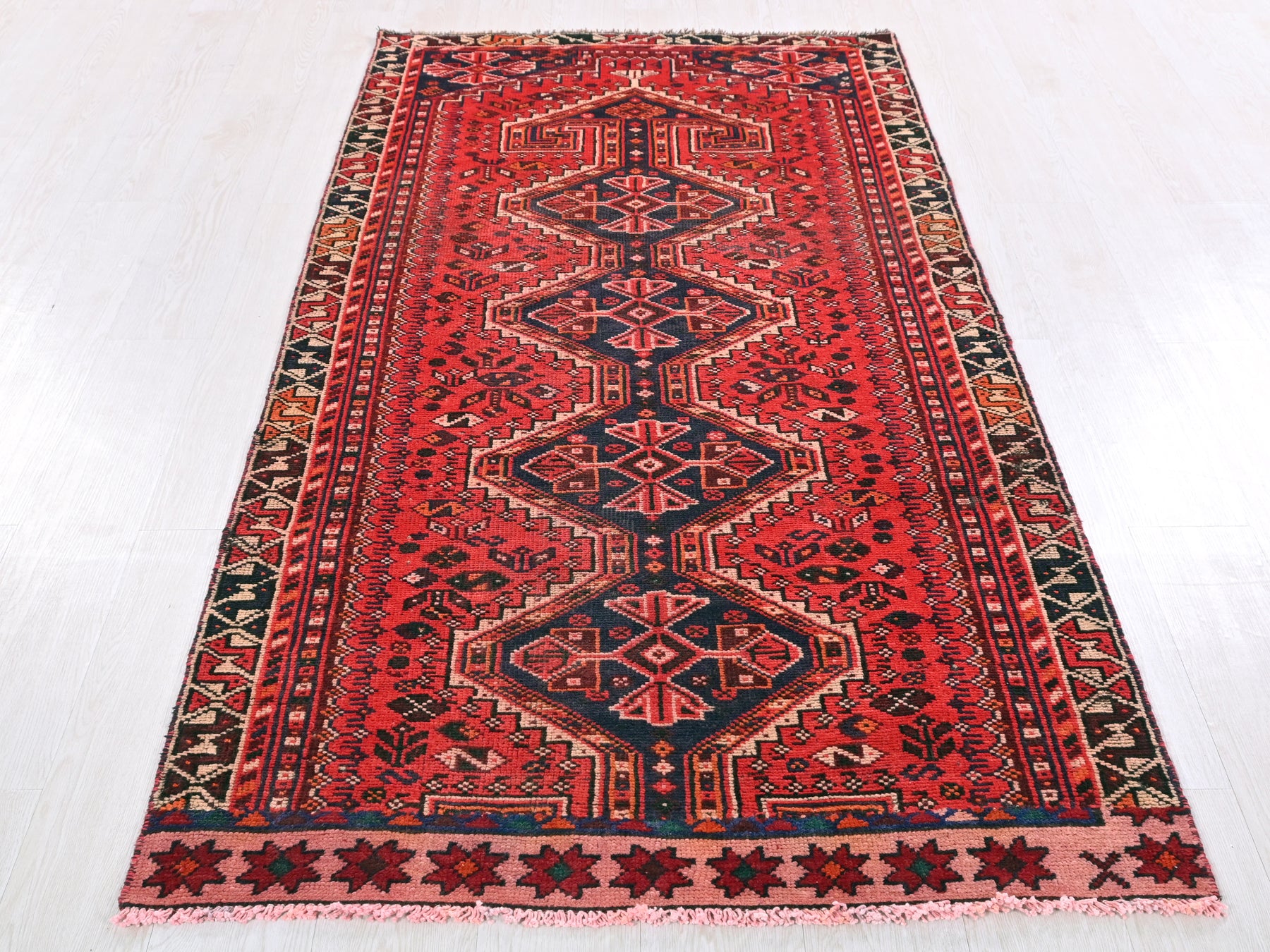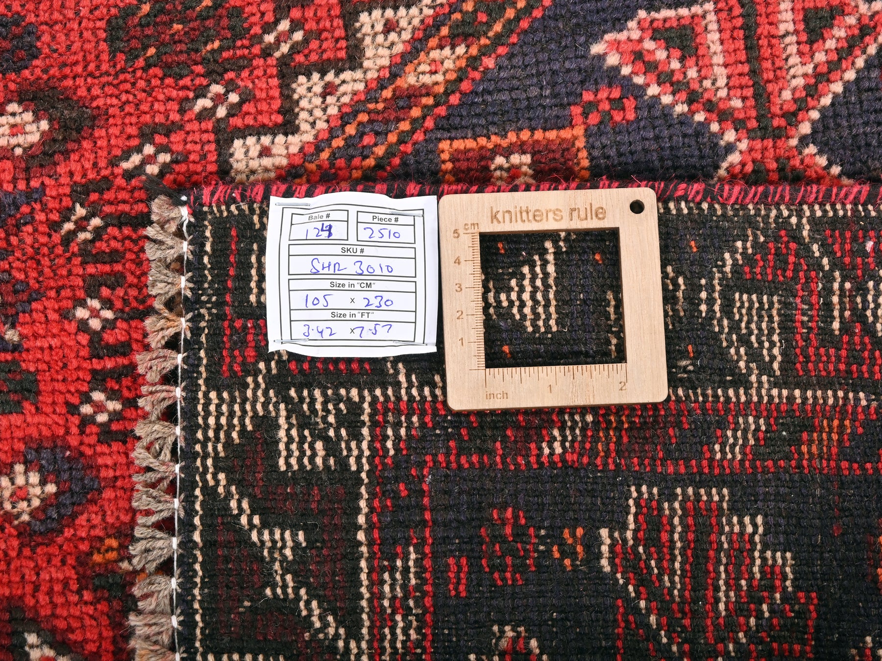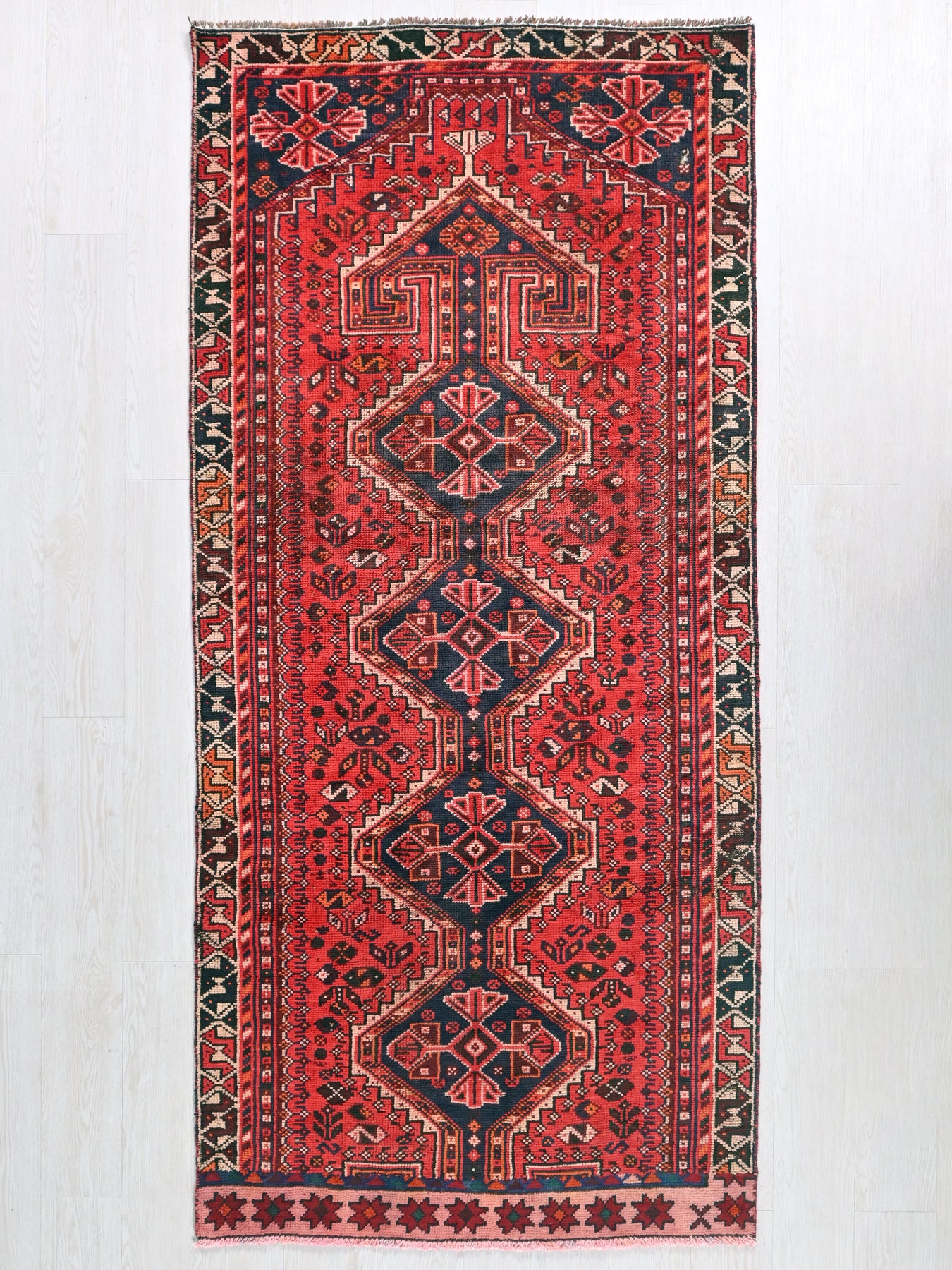 This is a hand-knotted, one-of-a-kind vintage rug. Due to the nature of this piece, there may be slight imperfections in its wear, shape, dimensions, and color. All of our rugs are professionally cleaned and repaired.