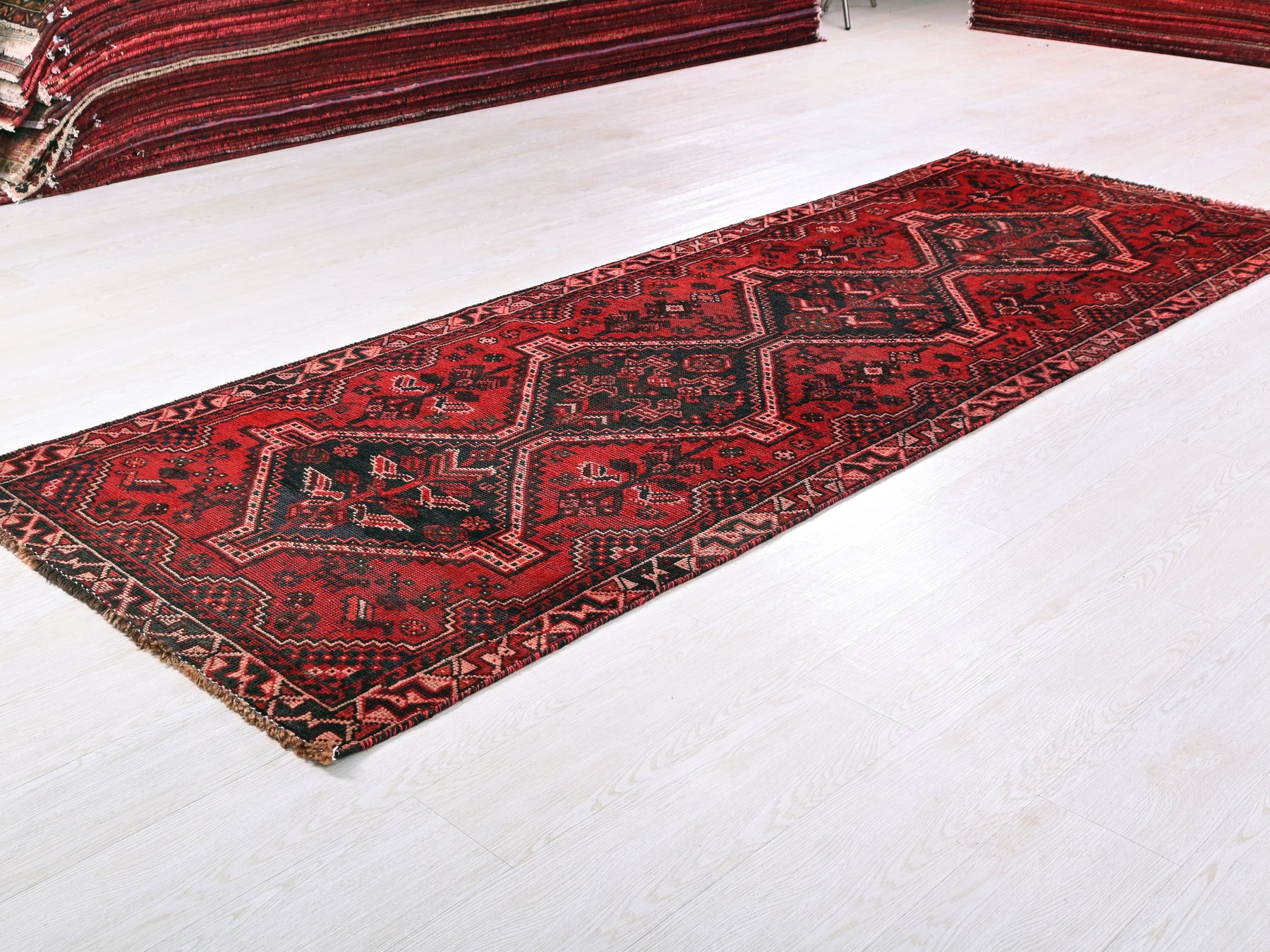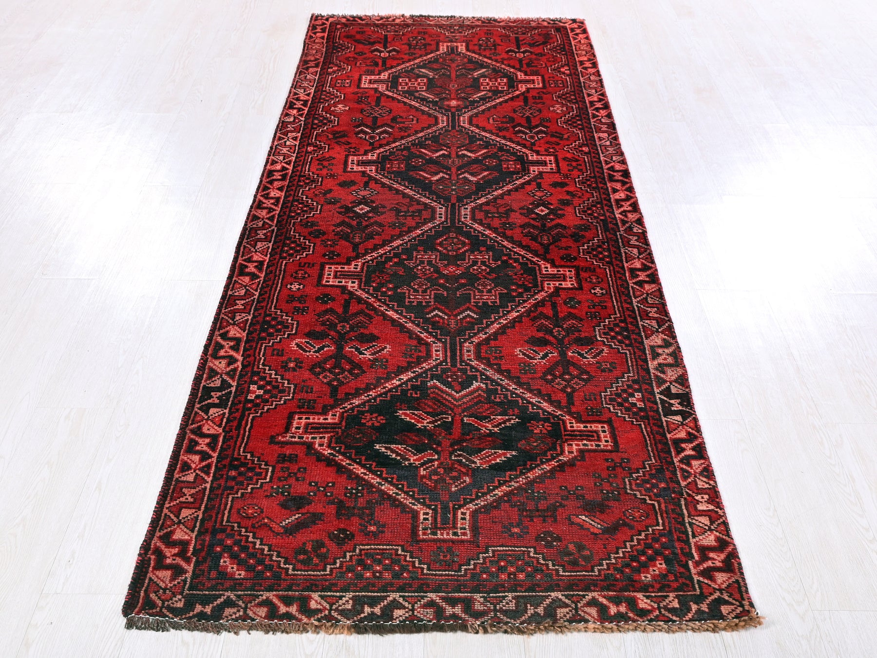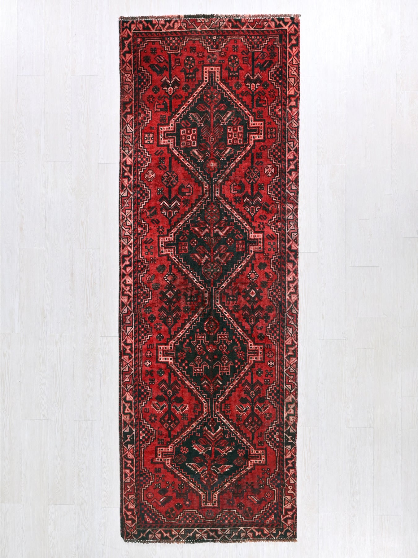 This is a hand-knotted, one-of-a-kind vintage rug. Due to the nature of this piece, there may be slight imperfections in its wear, shape, dimensions, and color. All of our rugs are professionally cleaned and repaired.