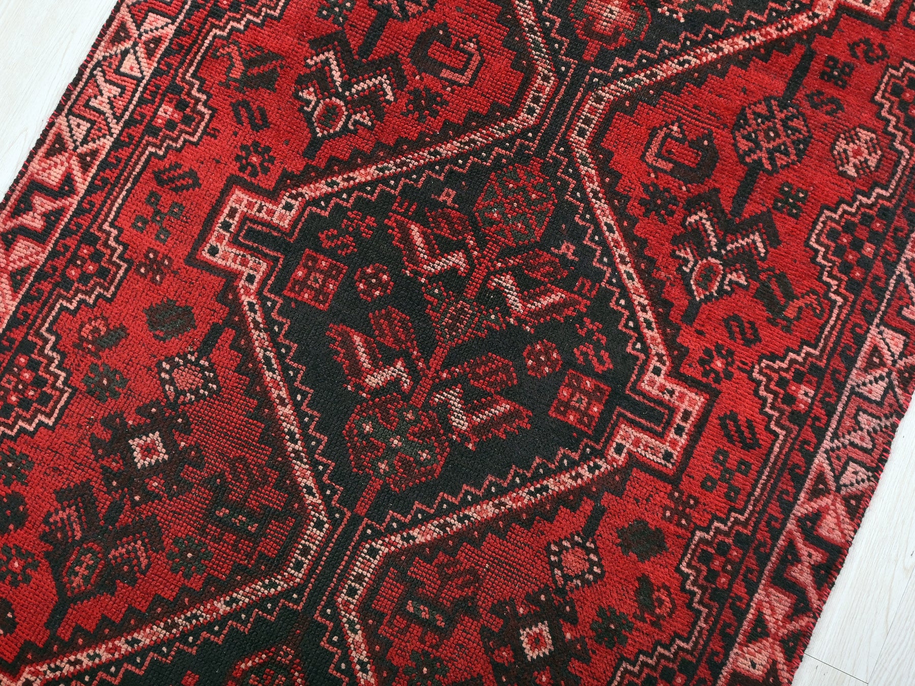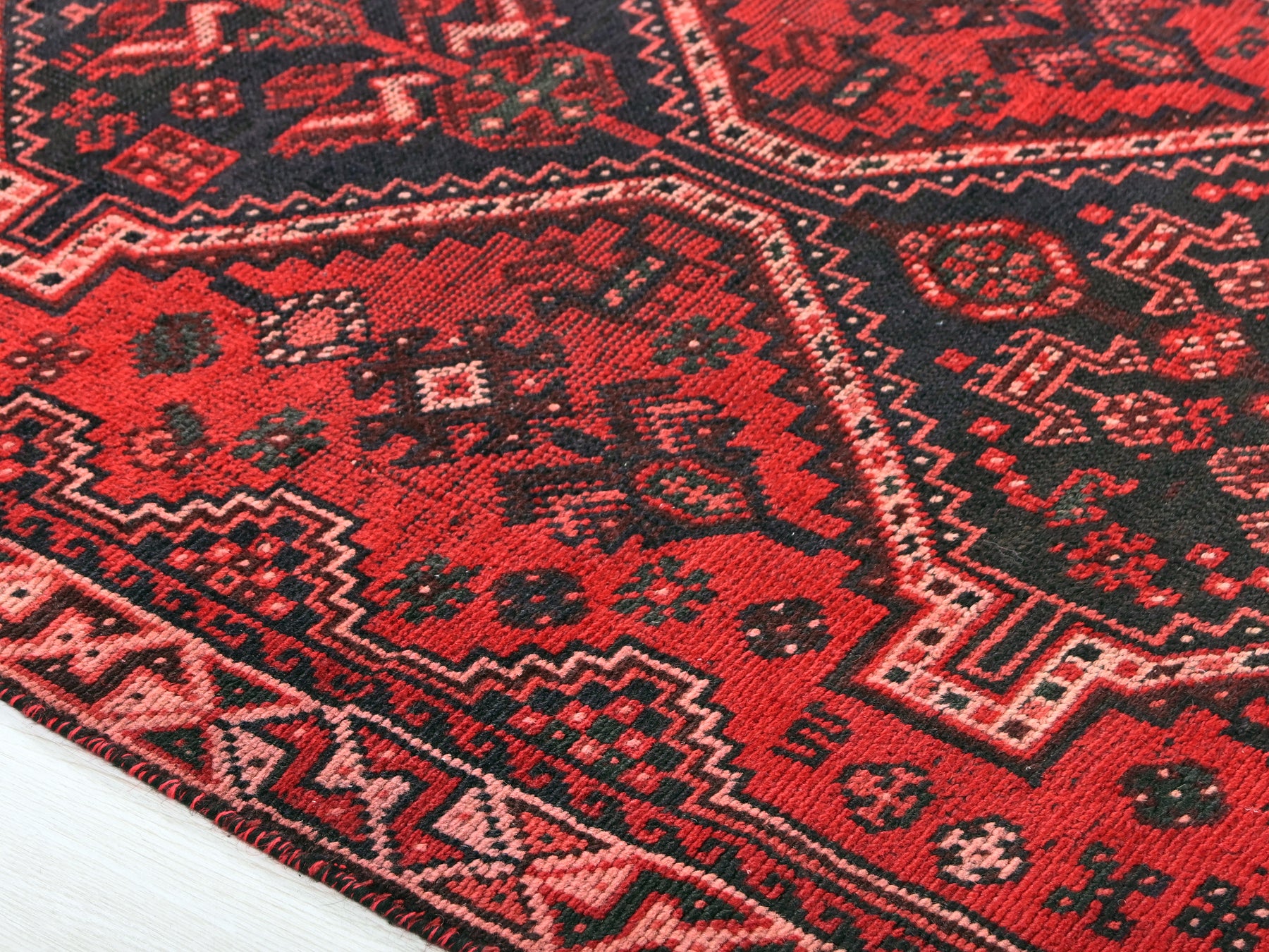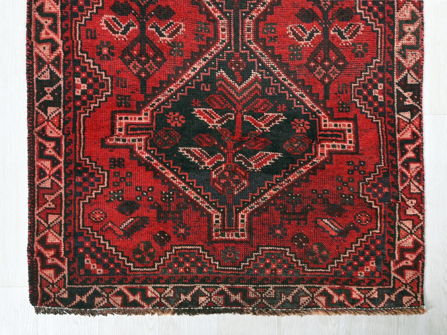 This is a hand-knotted, one-of-a-kind vintage rug. Due to the nature of this piece, there may be slight imperfections in its wear, shape, dimensions, and color. All of our rugs are professionally cleaned and repaired.