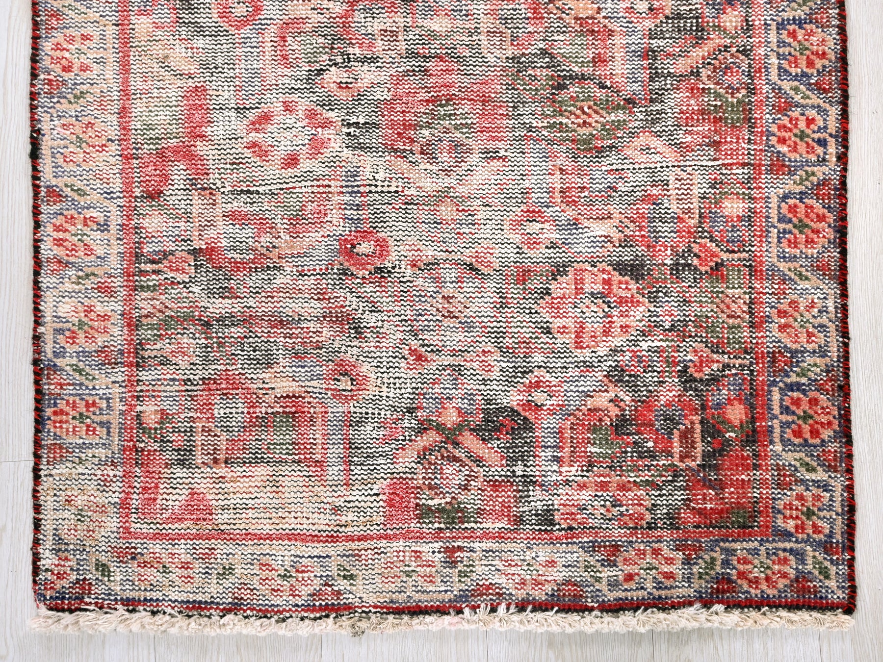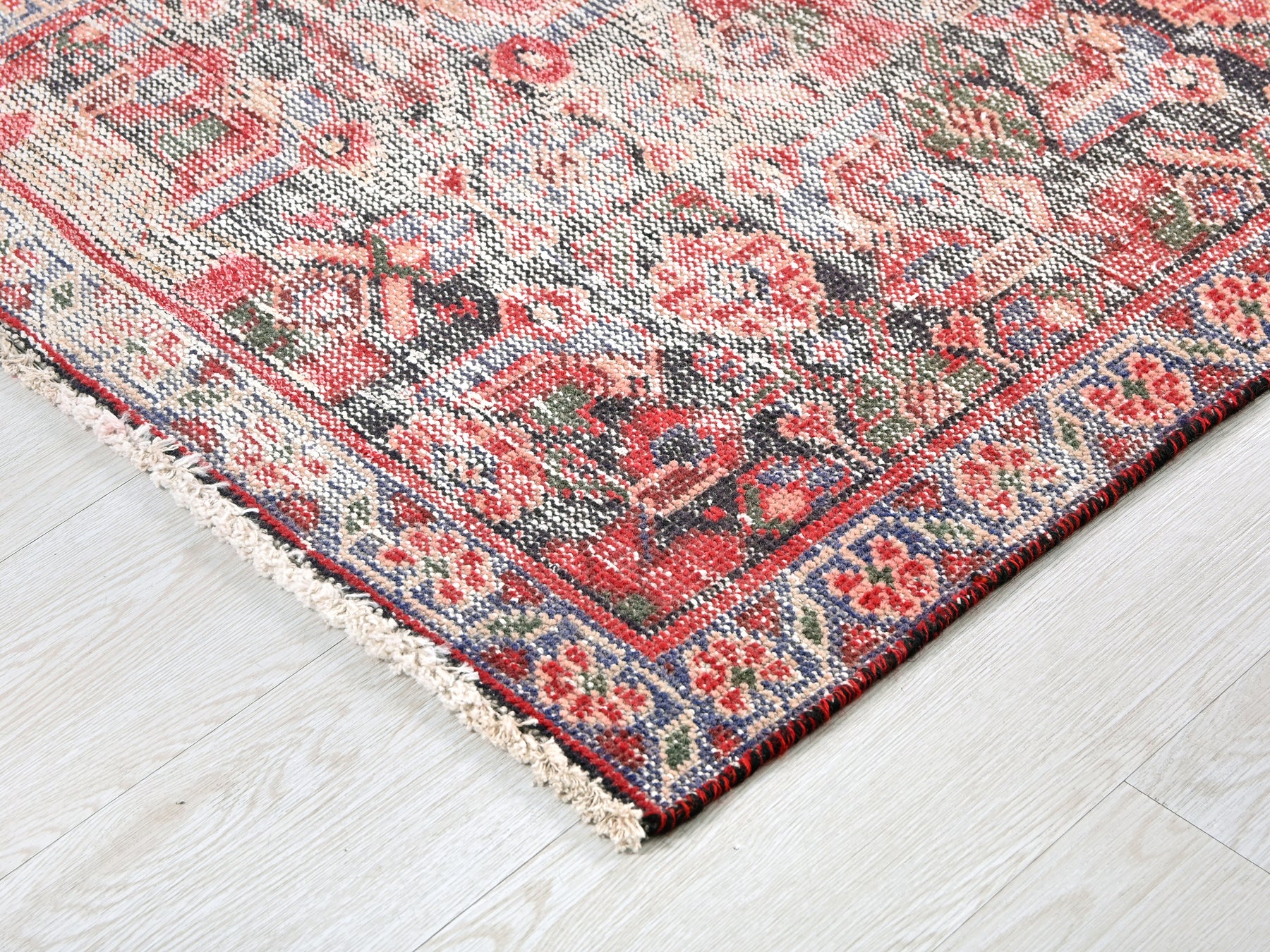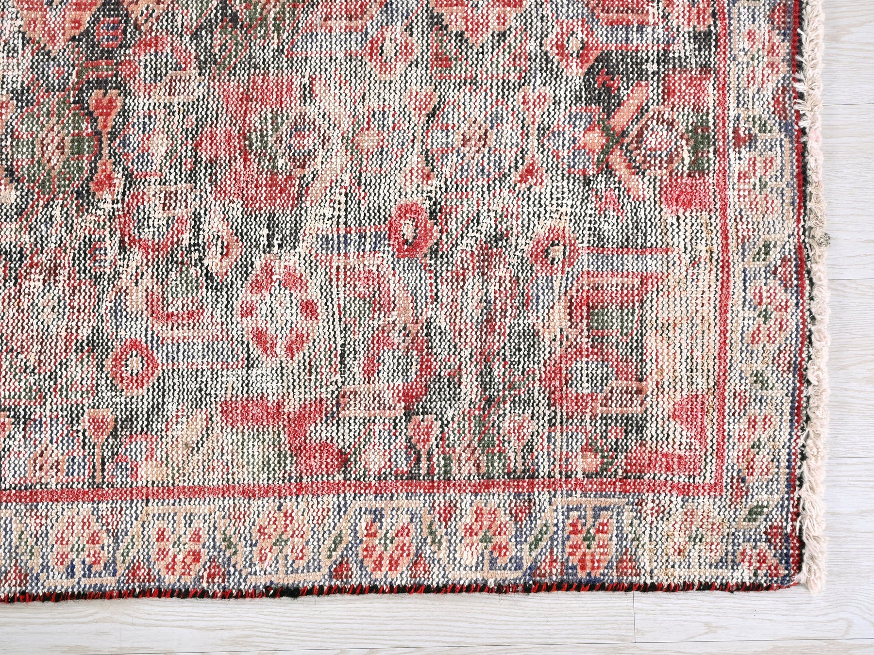 This is a hand-knotted, one-of-a-kind vintage rug. Due to the nature of this piece, there may be slight imperfections in its wear, shape, dimensions, and color. All of our rugs are professionally cleaned and repaired.