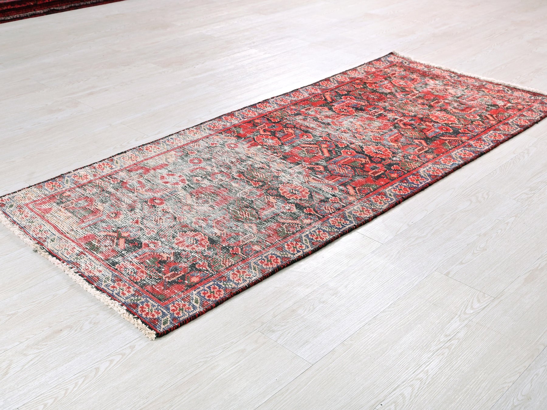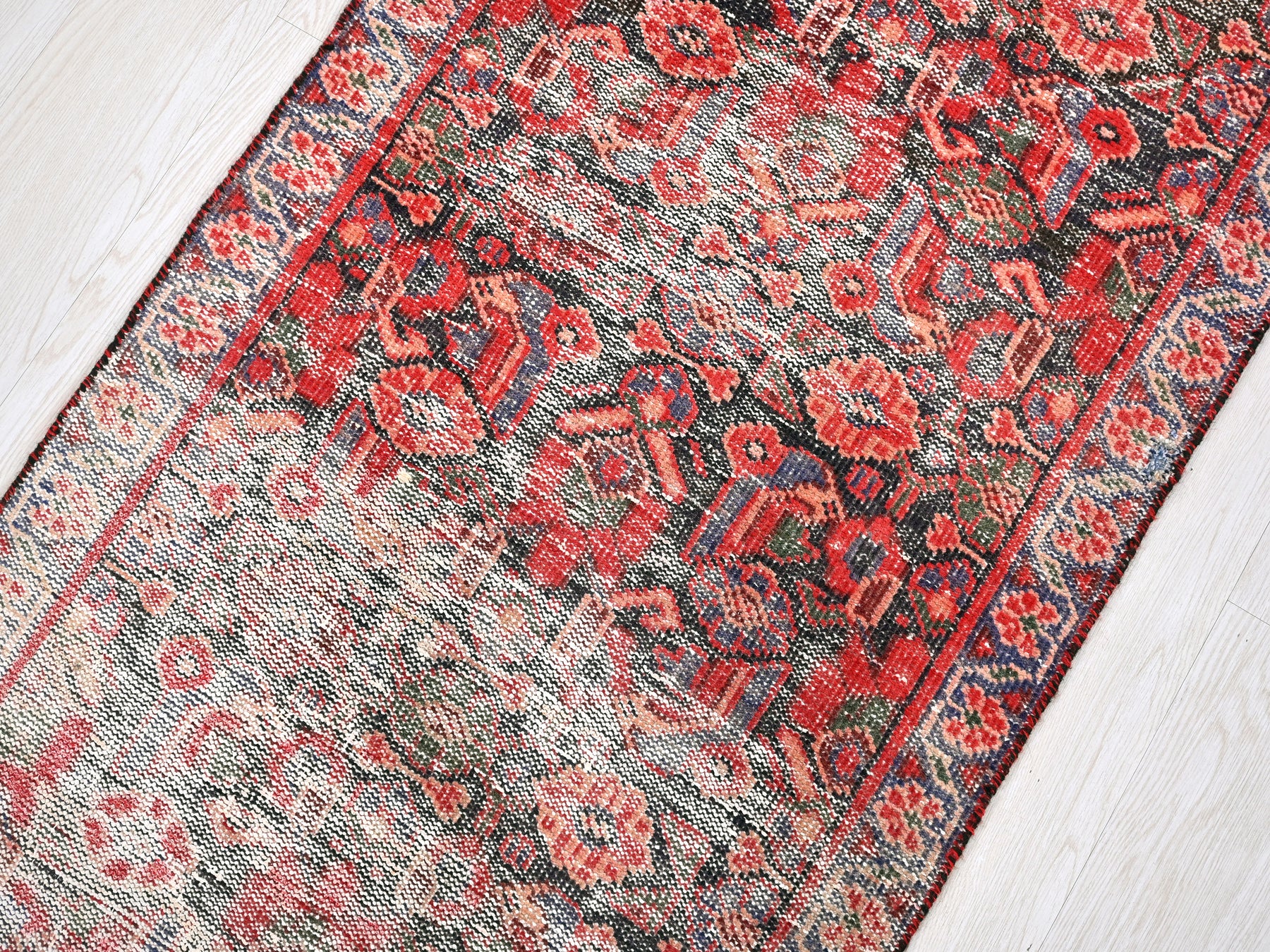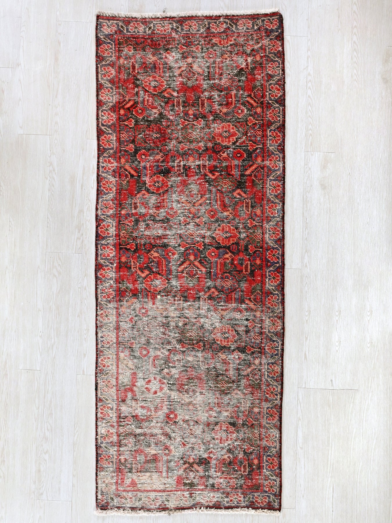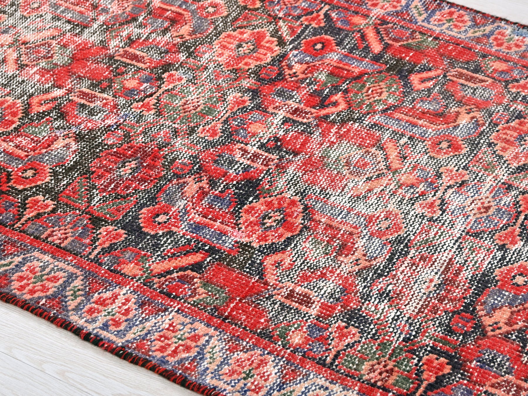 This is a hand-knotted, one-of-a-kind vintage rug. Due to the nature of this piece, there may be slight imperfections in its wear, shape, dimensions, and color. All of our rugs are professionally cleaned and repaired.