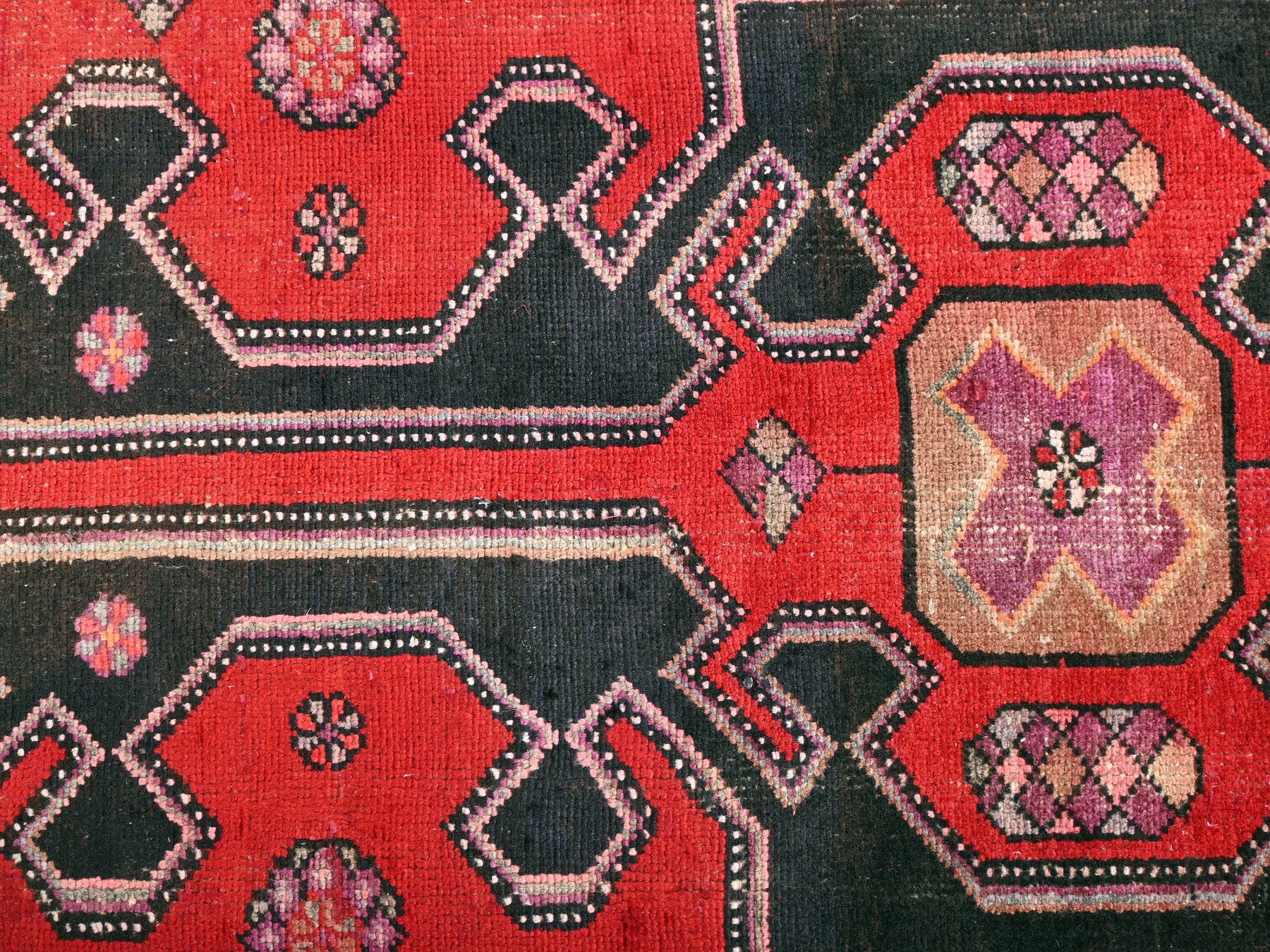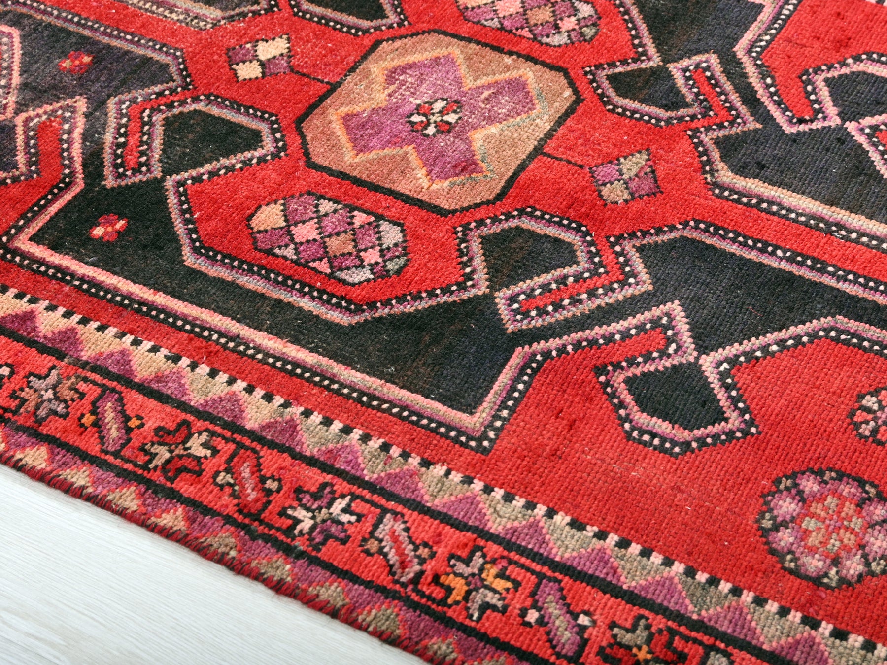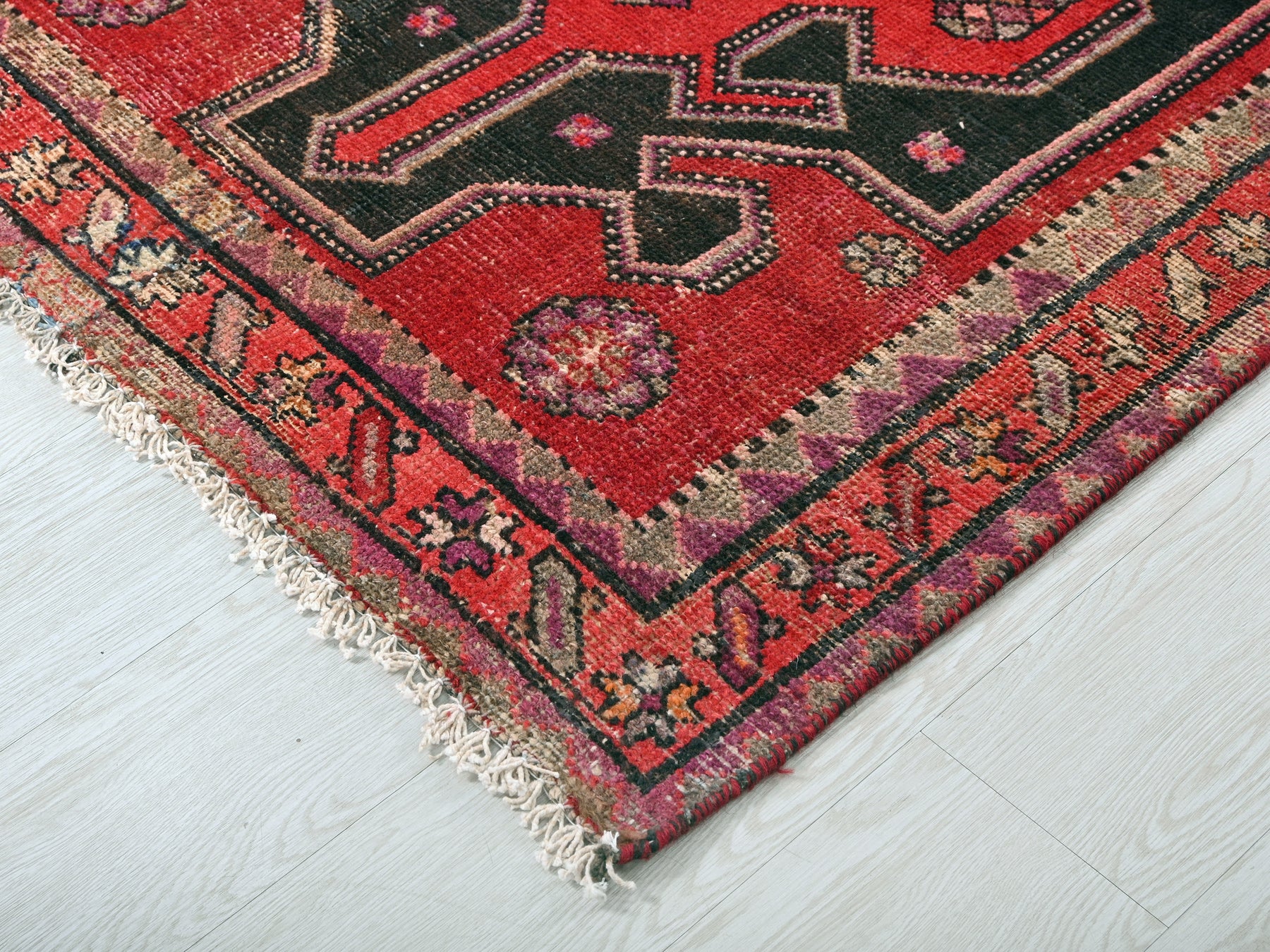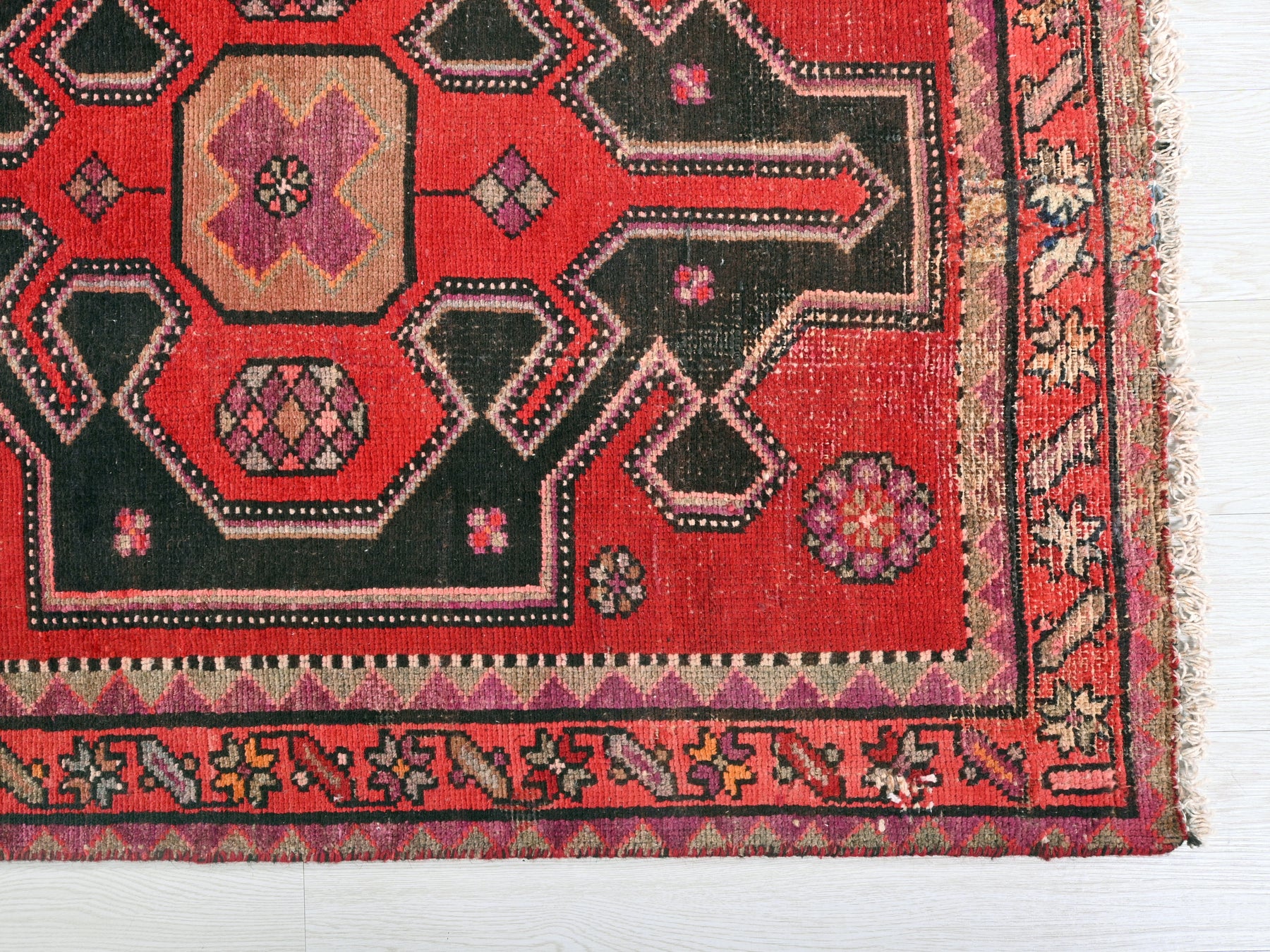 This is a hand-knotted, one-of-a-kind vintage rug. Due to the nature of this piece, there may be slight imperfections in its wear, shape, dimensions, and color. All of our rugs are professionally cleaned and repaired.