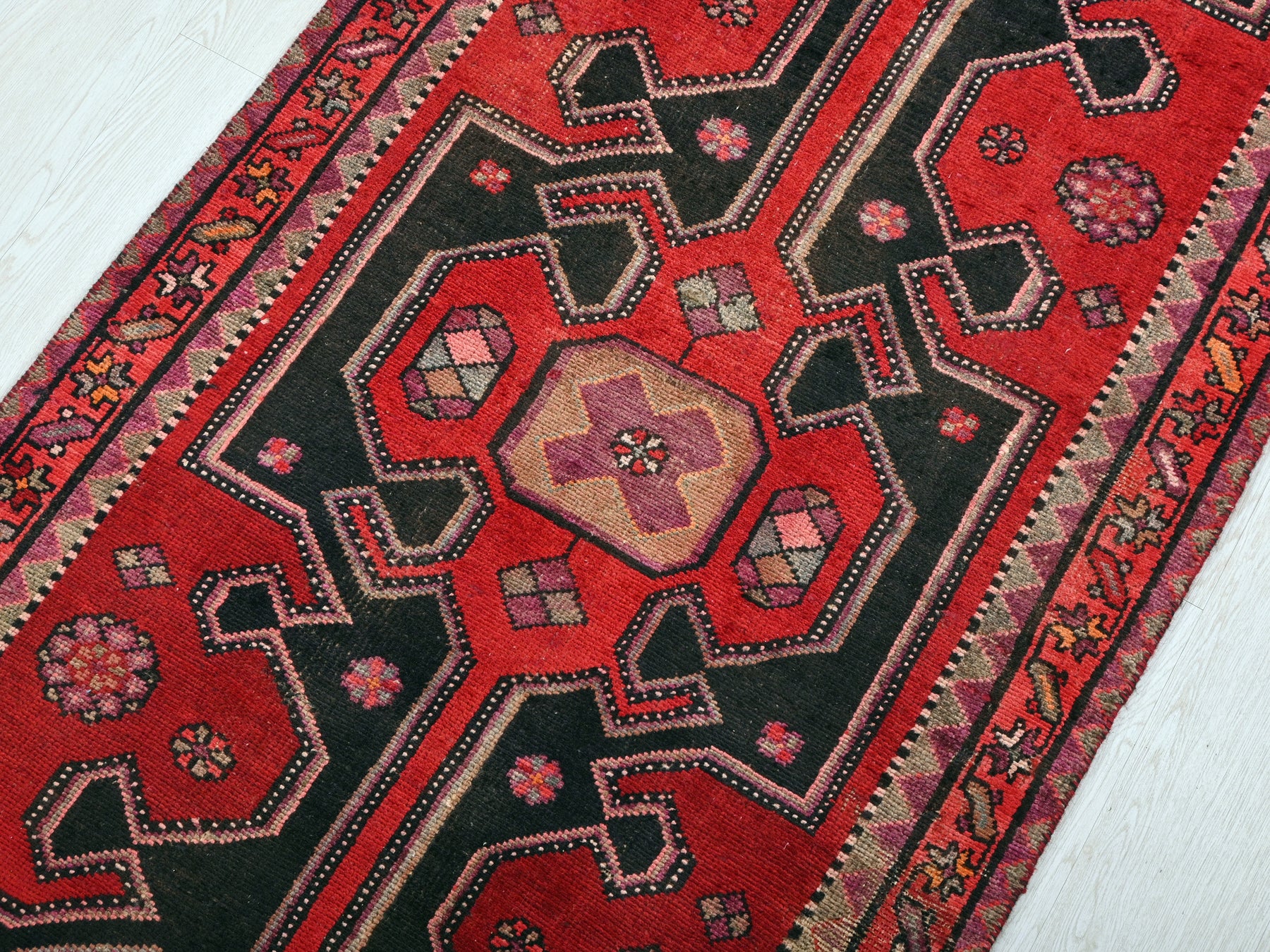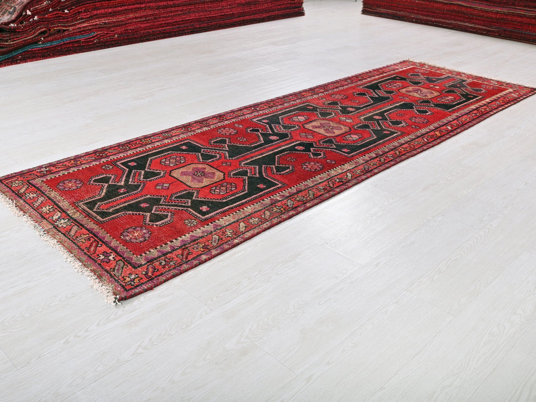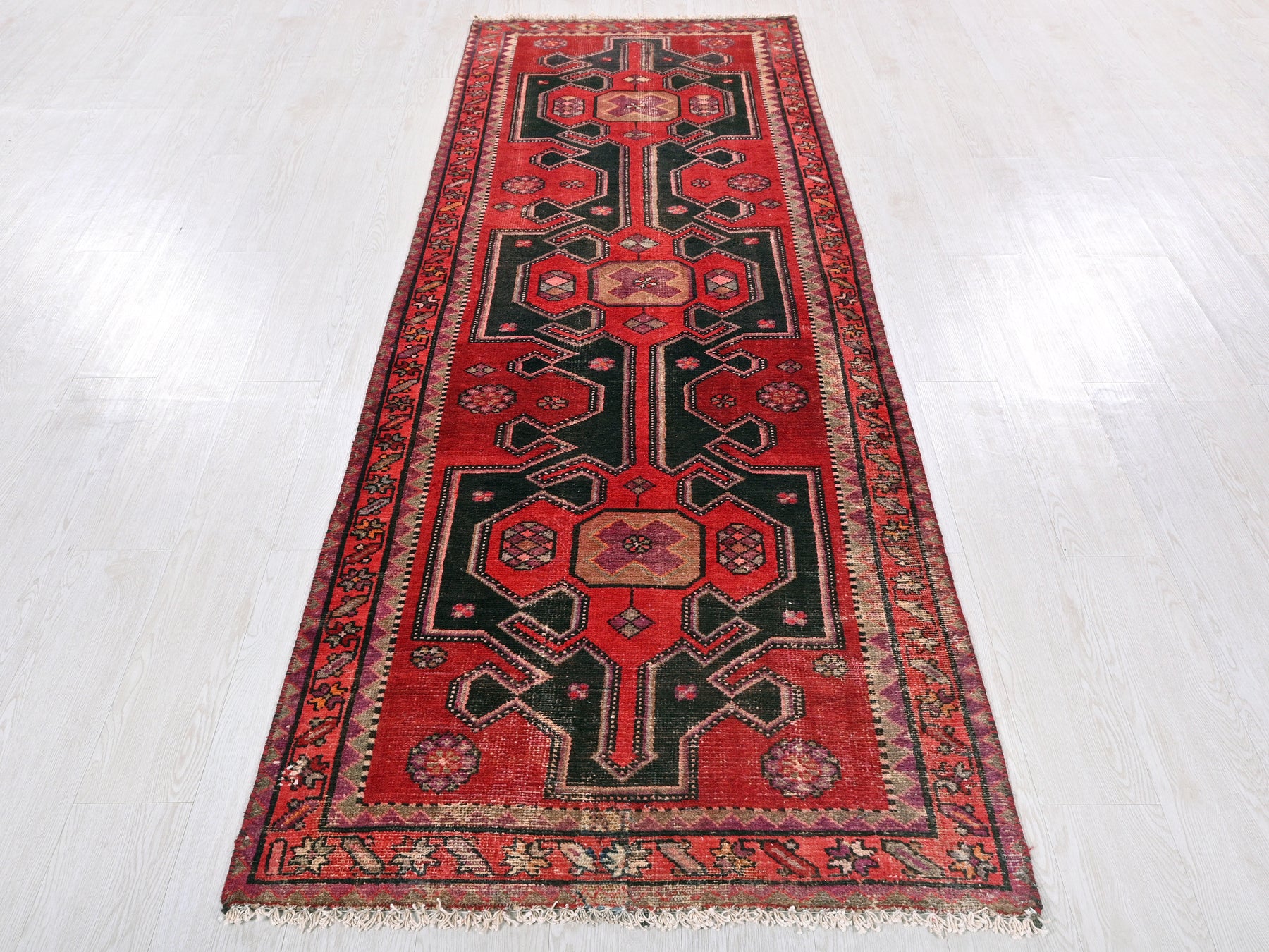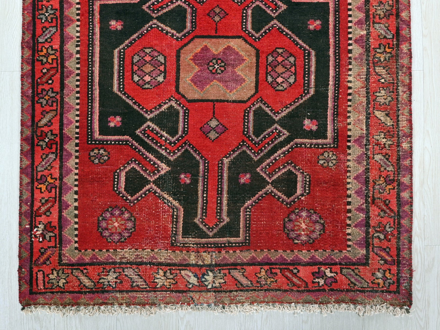 This is a hand-knotted, one-of-a-kind vintage rug. Due to the nature of this piece, there may be slight imperfections in its wear, shape, dimensions, and color. All of our rugs are professionally cleaned and repaired.