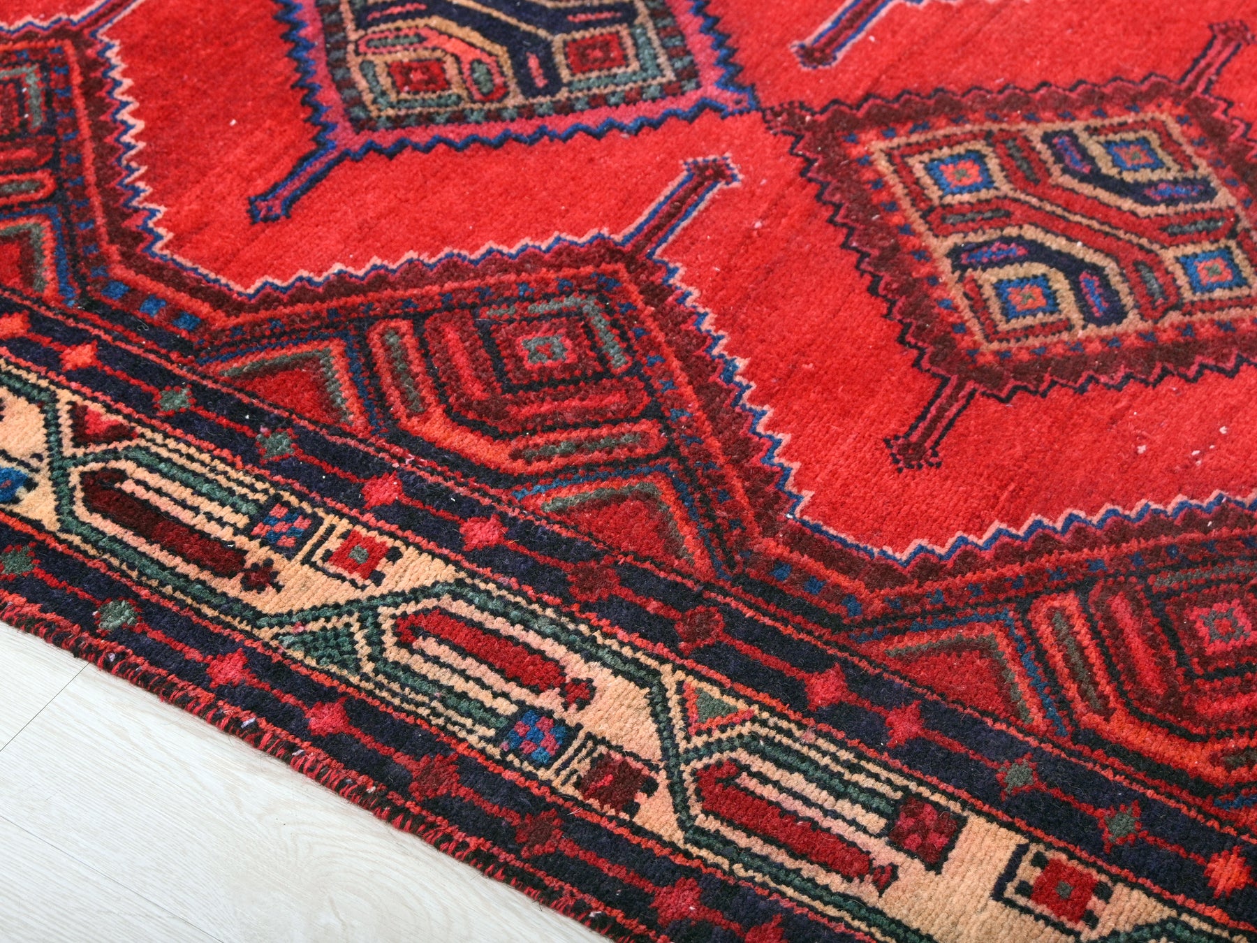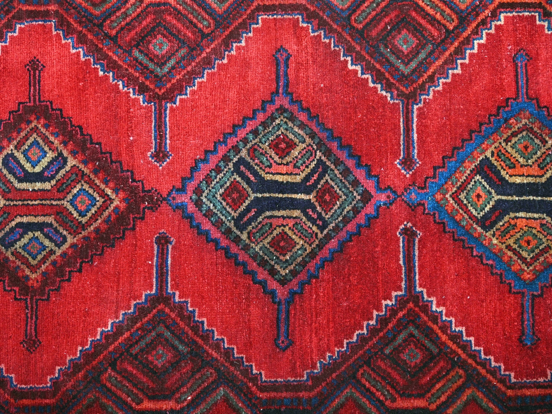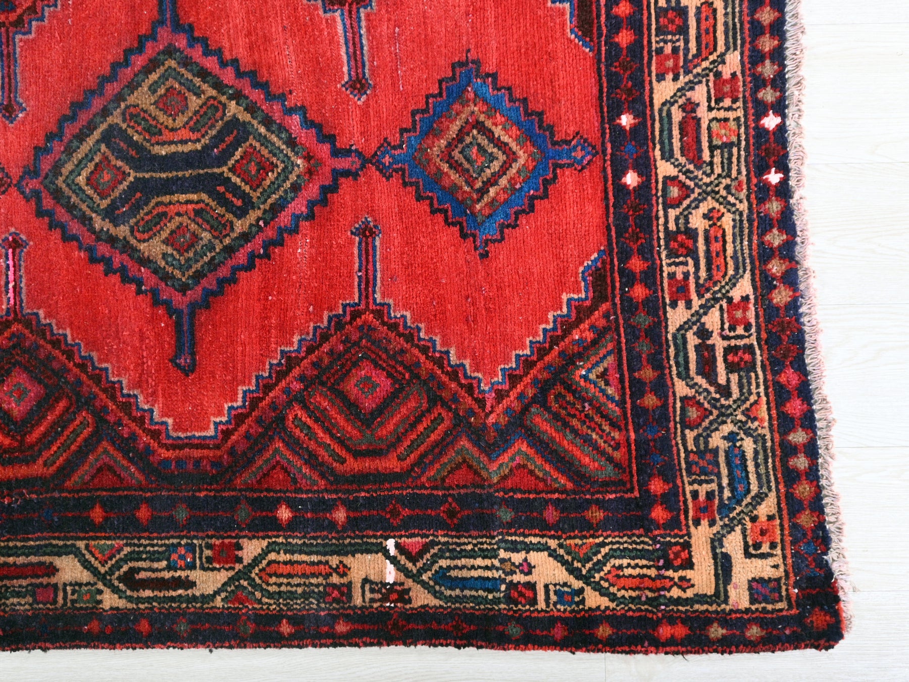This is a hand-knotted, one-of-a-kind vintage rug. Due to the nature of this piece, there may be slight imperfections in its wear, shape, dimensions, and color. All of our rugs are professionally cleaned and repaired.