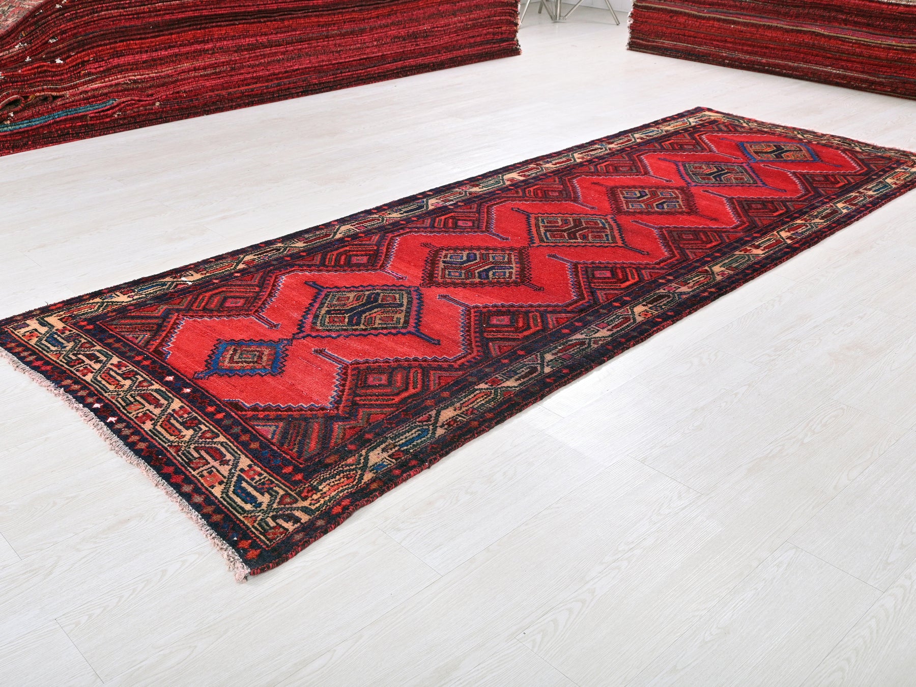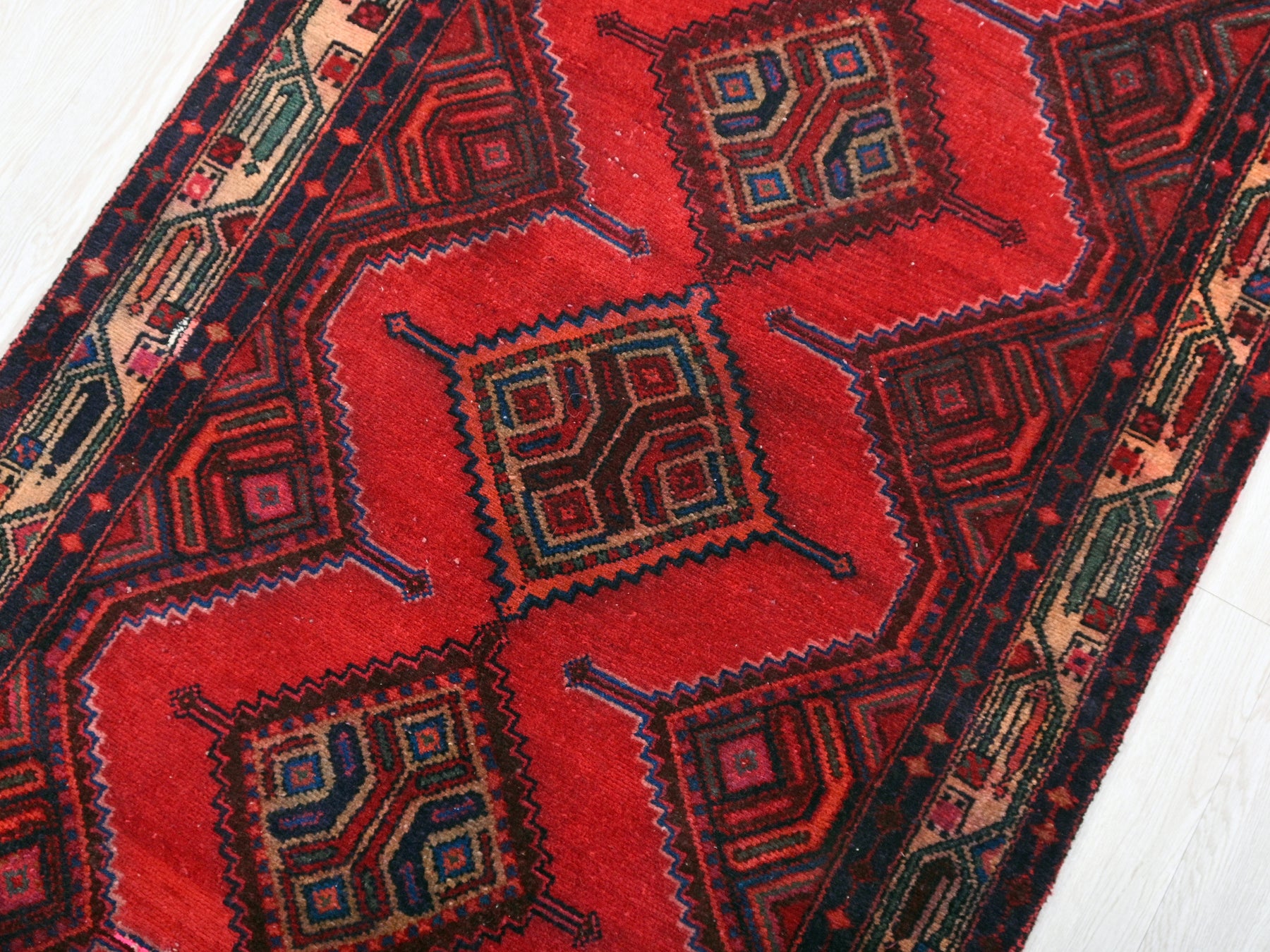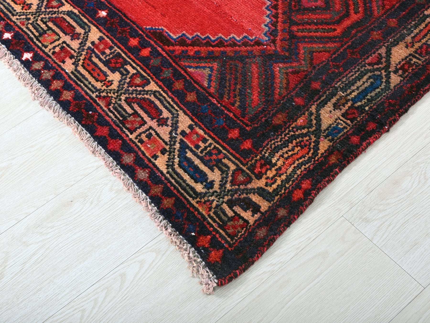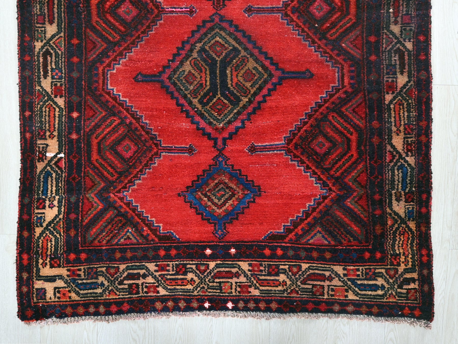 This is a hand-knotted, one-of-a-kind vintage rug. Due to the nature of this piece, there may be slight imperfections in its wear, shape, dimensions, and color. All of our rugs are professionally cleaned and repaired.