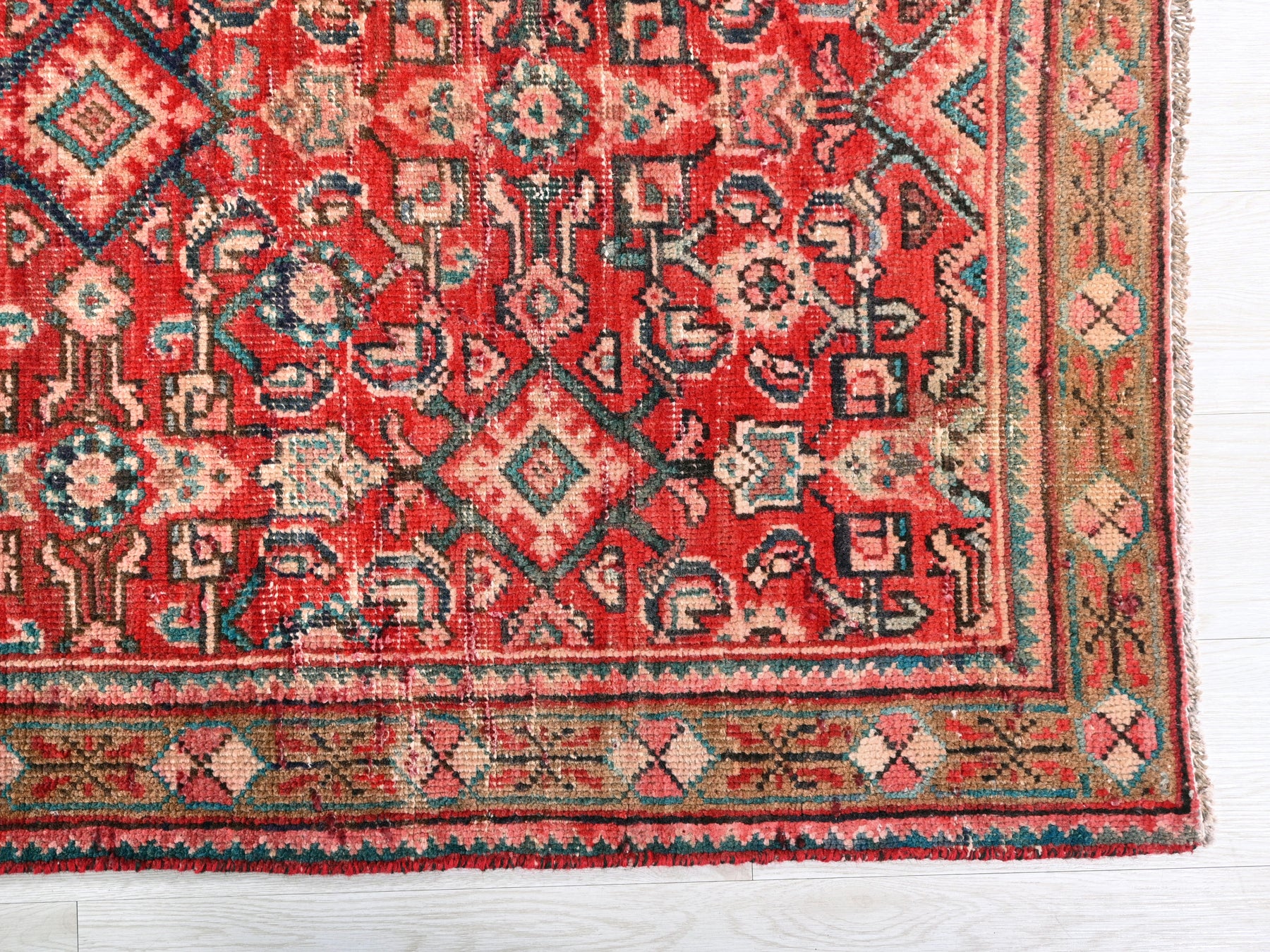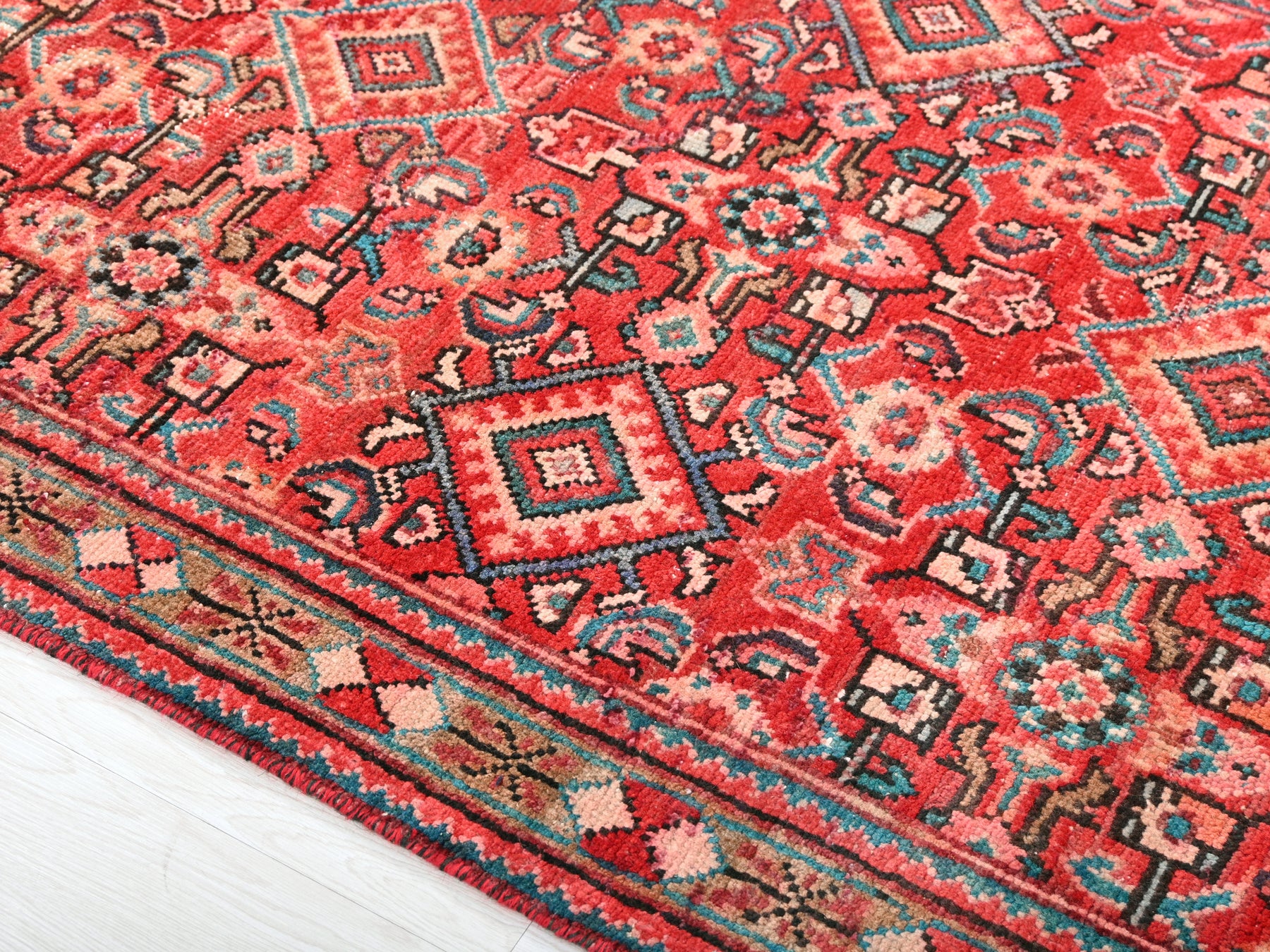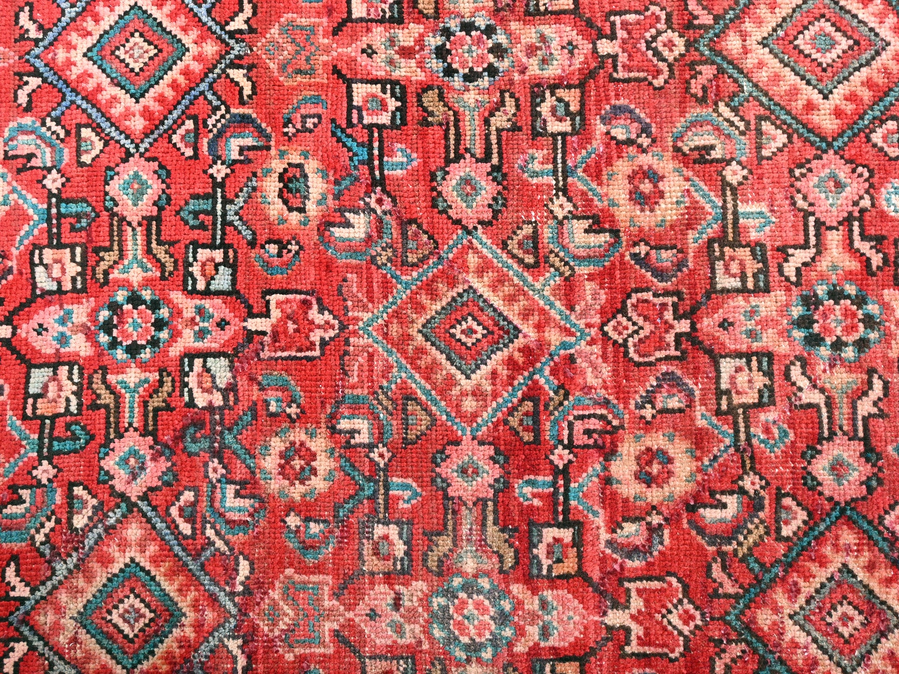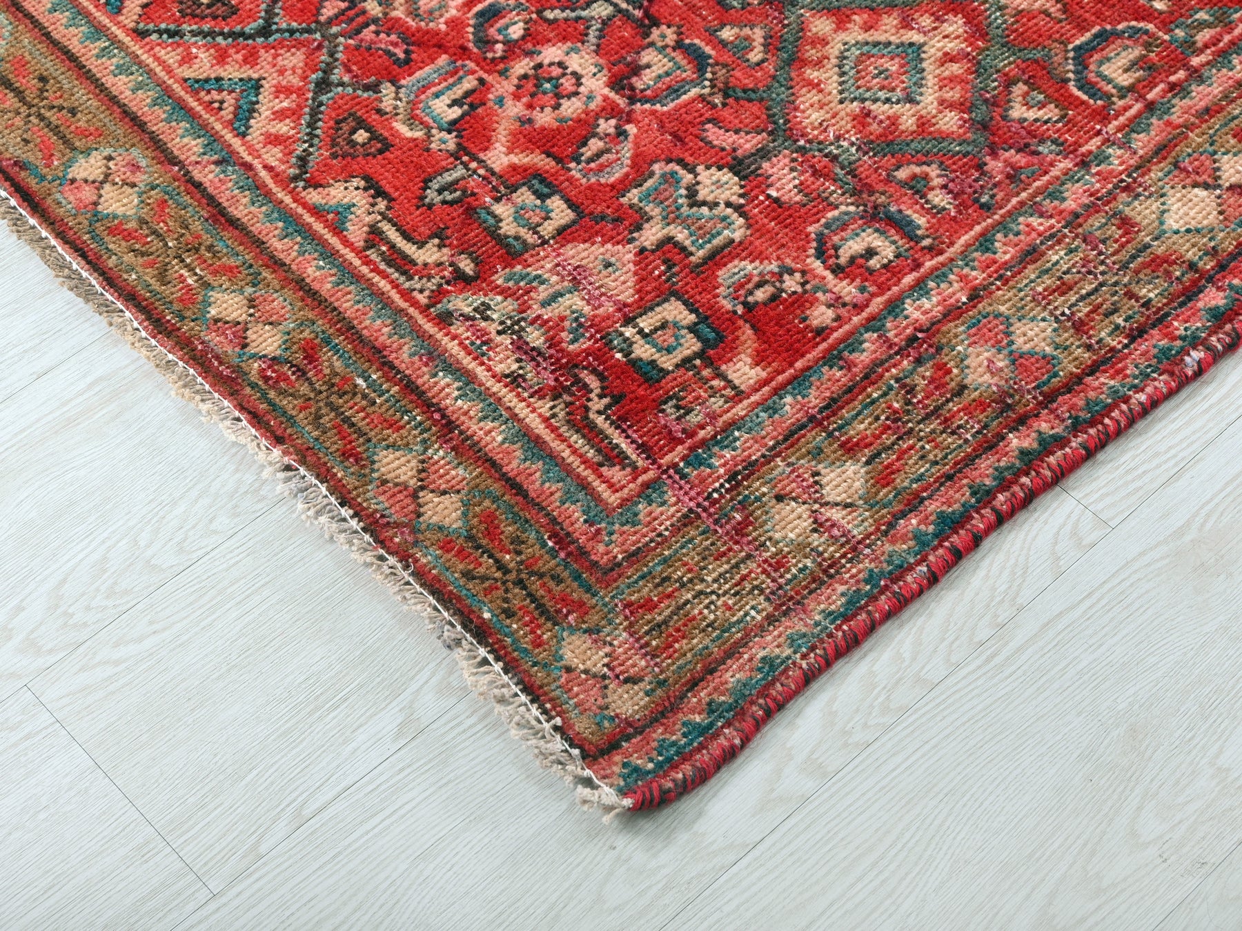 This is a hand-knotted, one-of-a-kind vintage rug. Due to the nature of this piece, there may be slight imperfections in its wear, shape, dimensions, and color. All of our rugs are professionally cleaned and repaired.