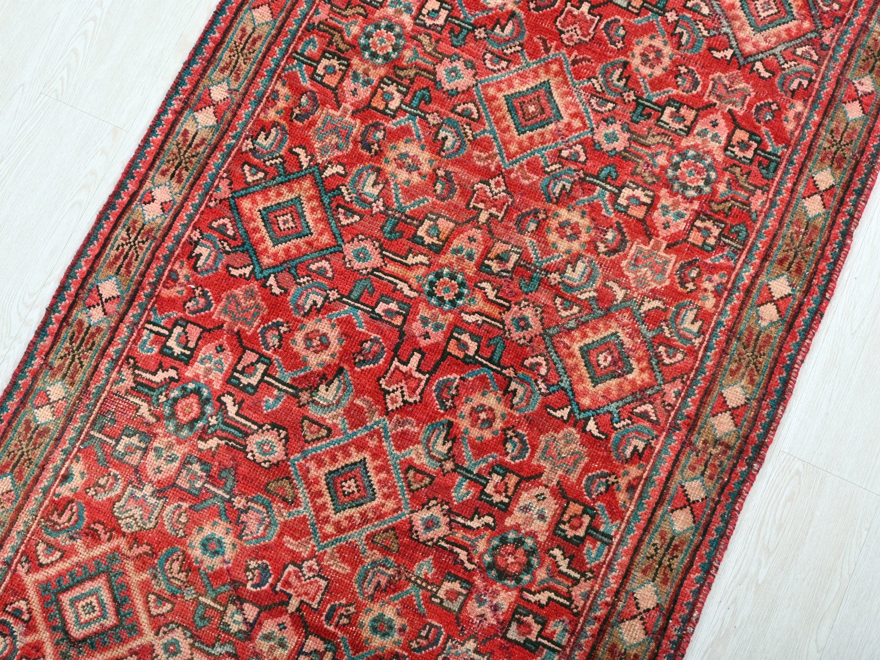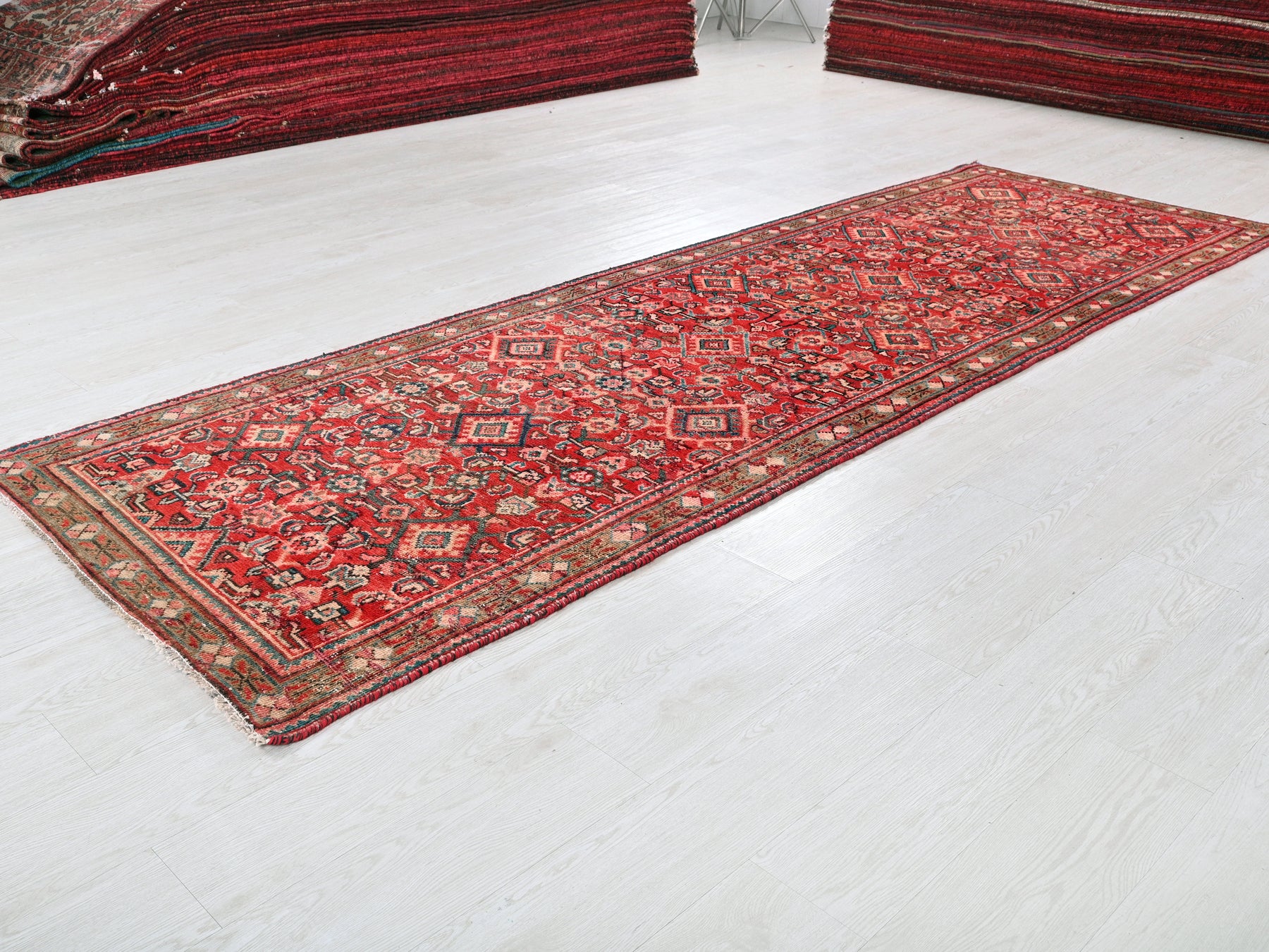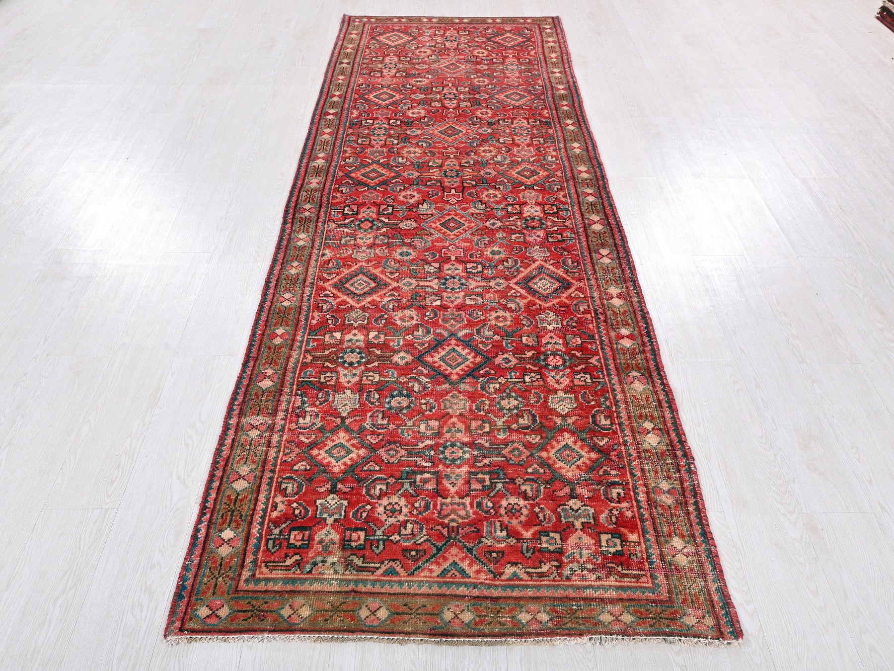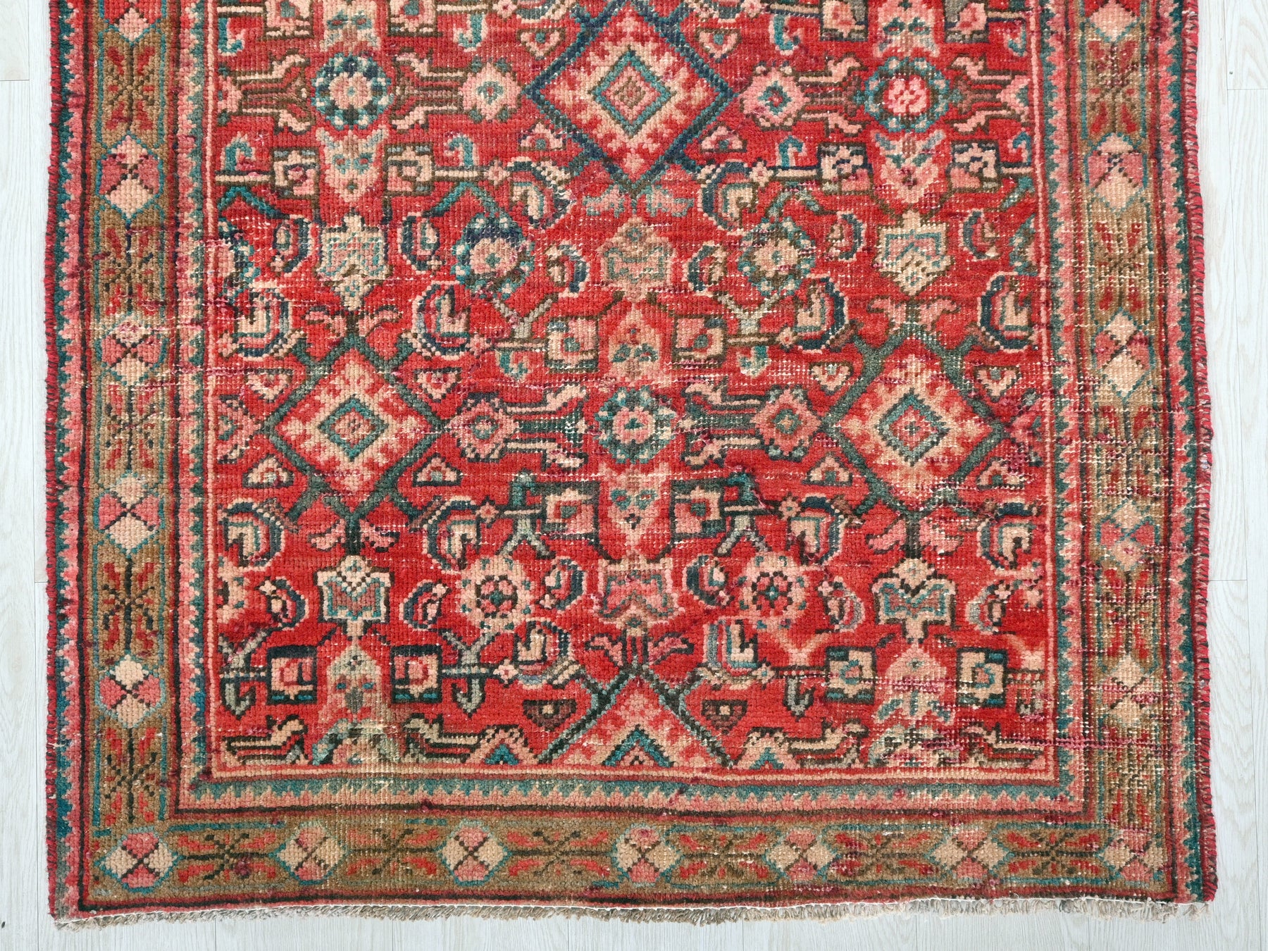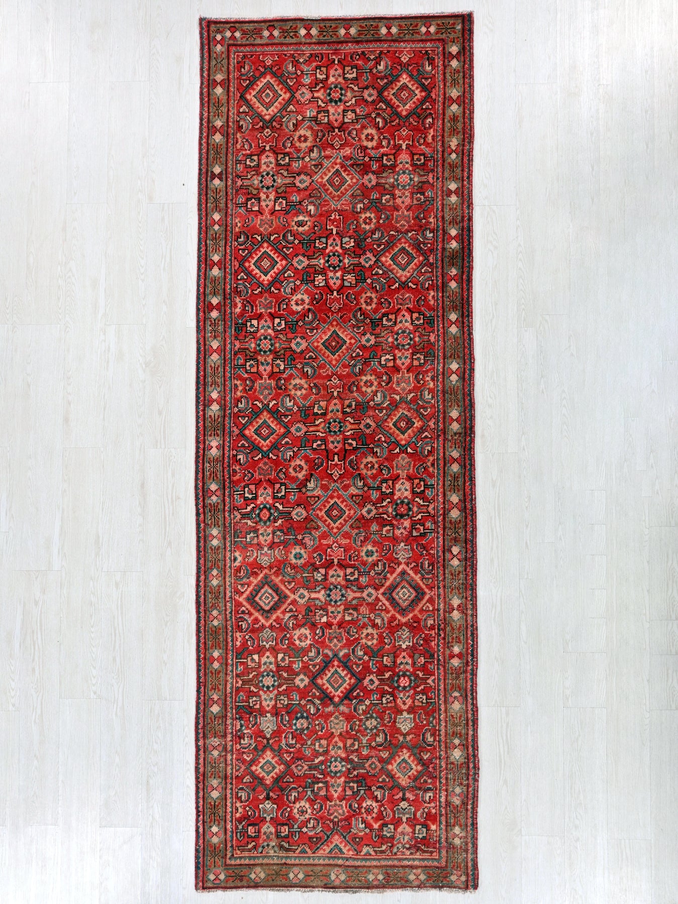 This is a hand-knotted, one-of-a-kind vintage rug. Due to the nature of this piece, there may be slight imperfections in its wear, shape, dimensions, and color. All of our rugs are professionally cleaned and repaired.
