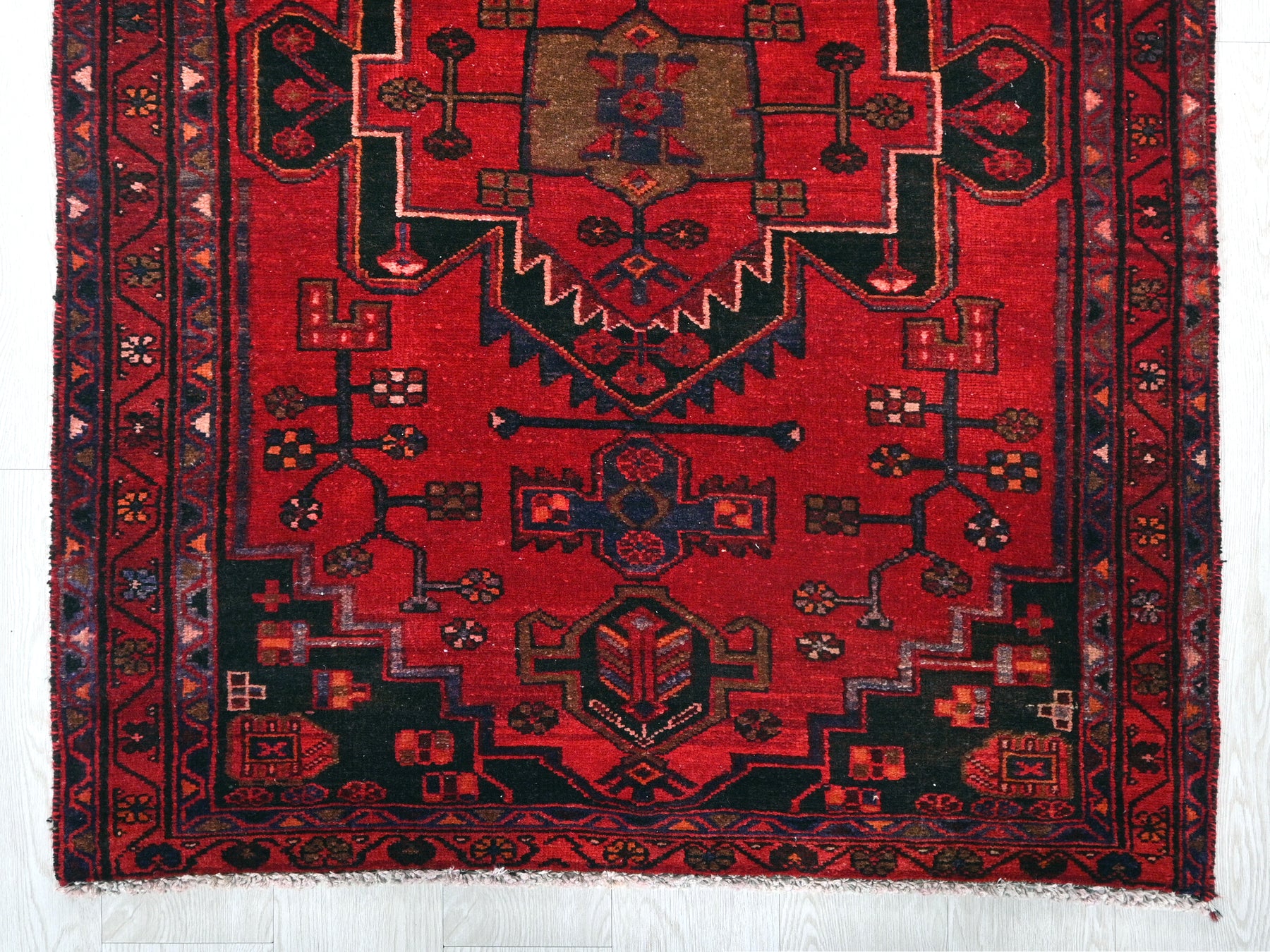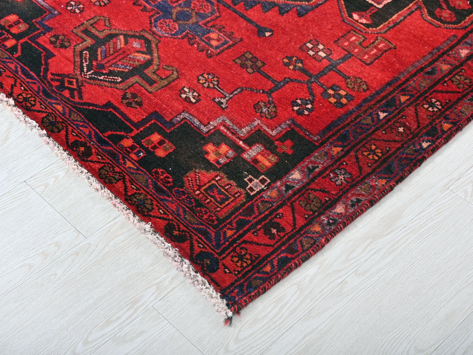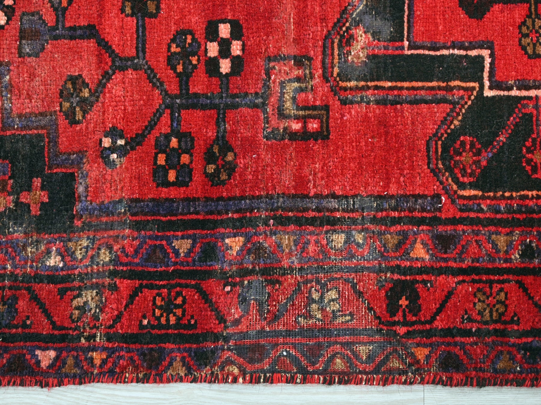 This is a hand-knotted, one-of-a-kind vintage rug. Due to the nature of this piece, there may be slight imperfections in its wear, shape, dimensions, and color. All of our rugs are professionally cleaned and repaired.