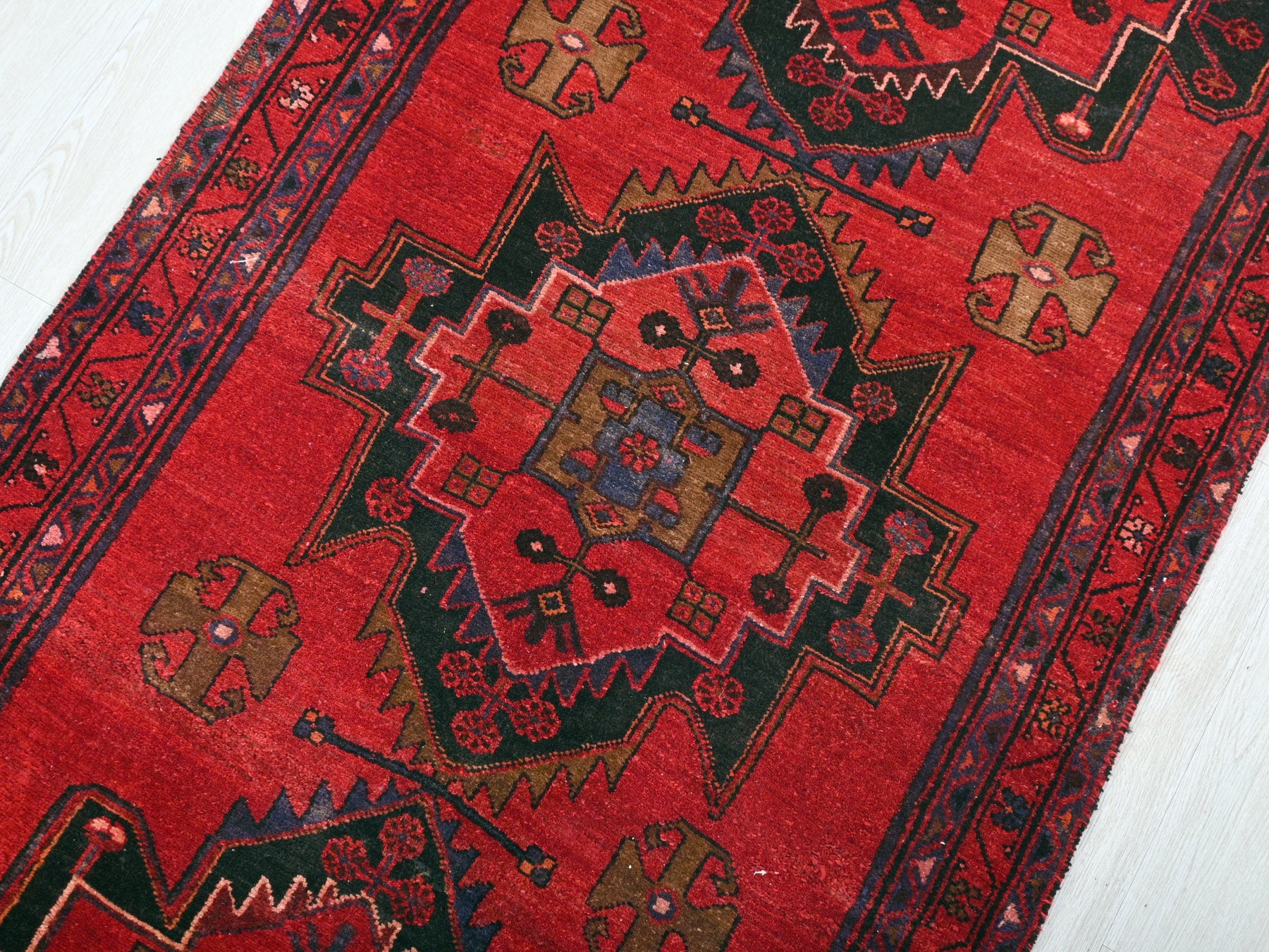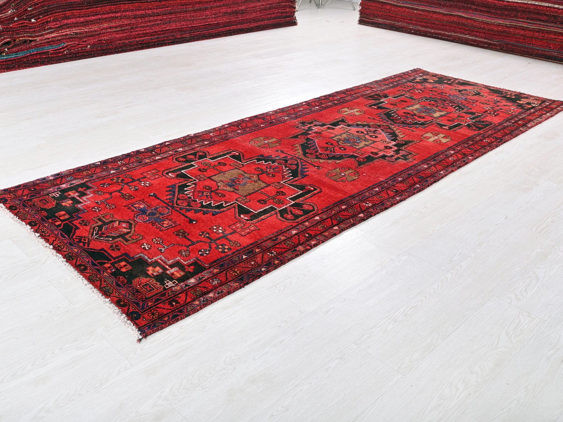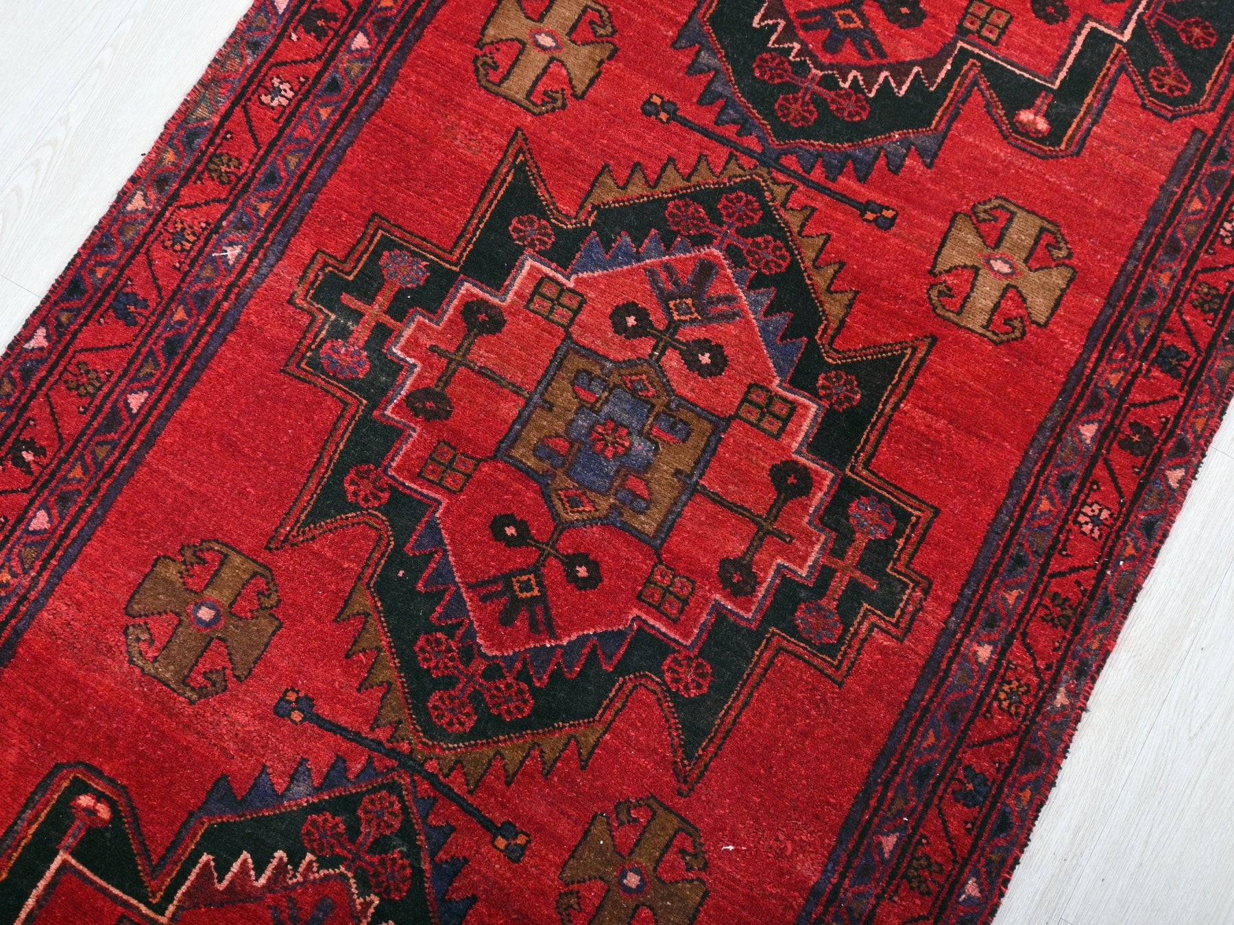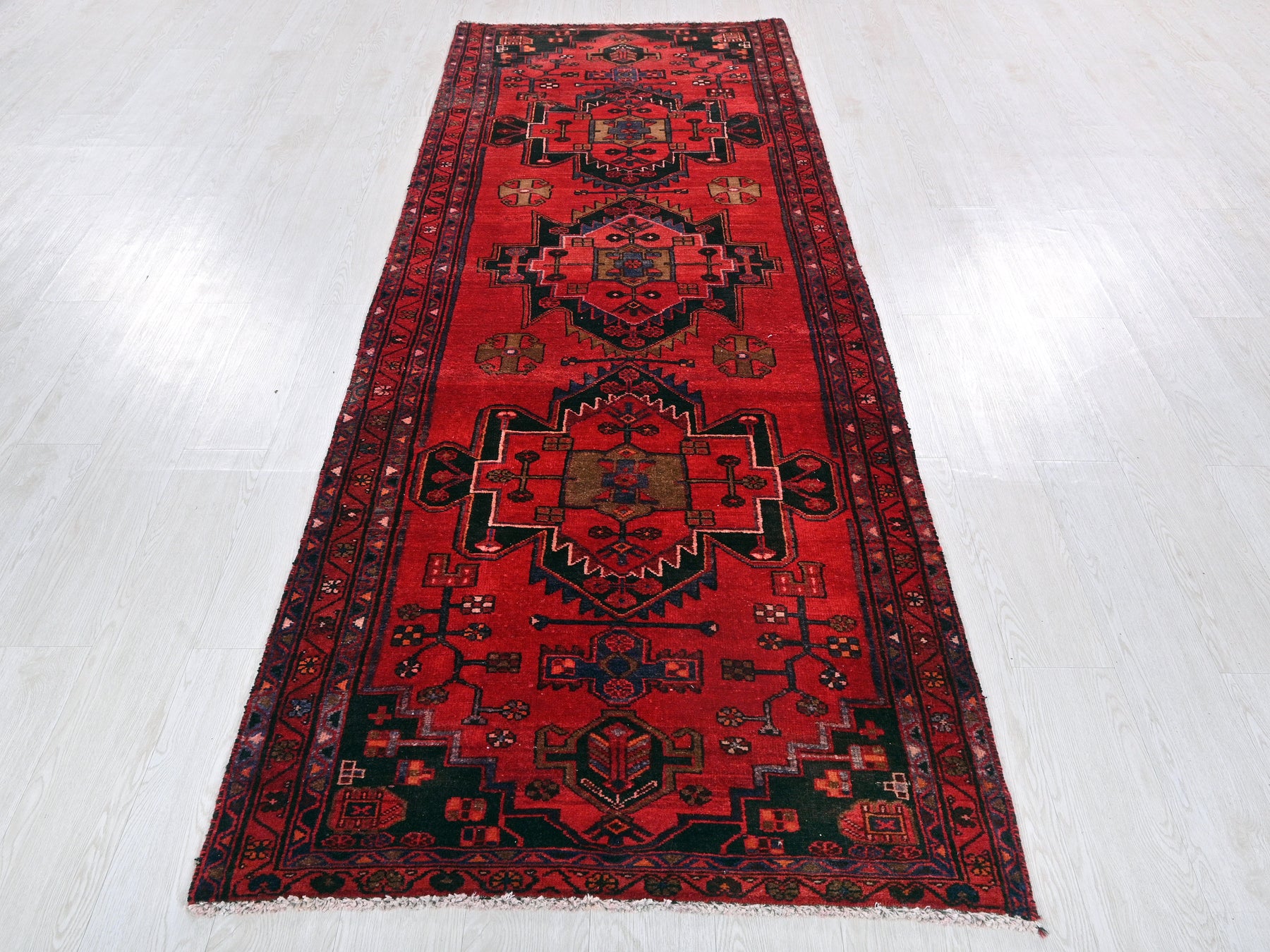 This is a hand-knotted, one-of-a-kind vintage rug. Due to the nature of this piece, there may be slight imperfections in its wear, shape, dimensions, and color. All of our rugs are professionally cleaned and repaired.