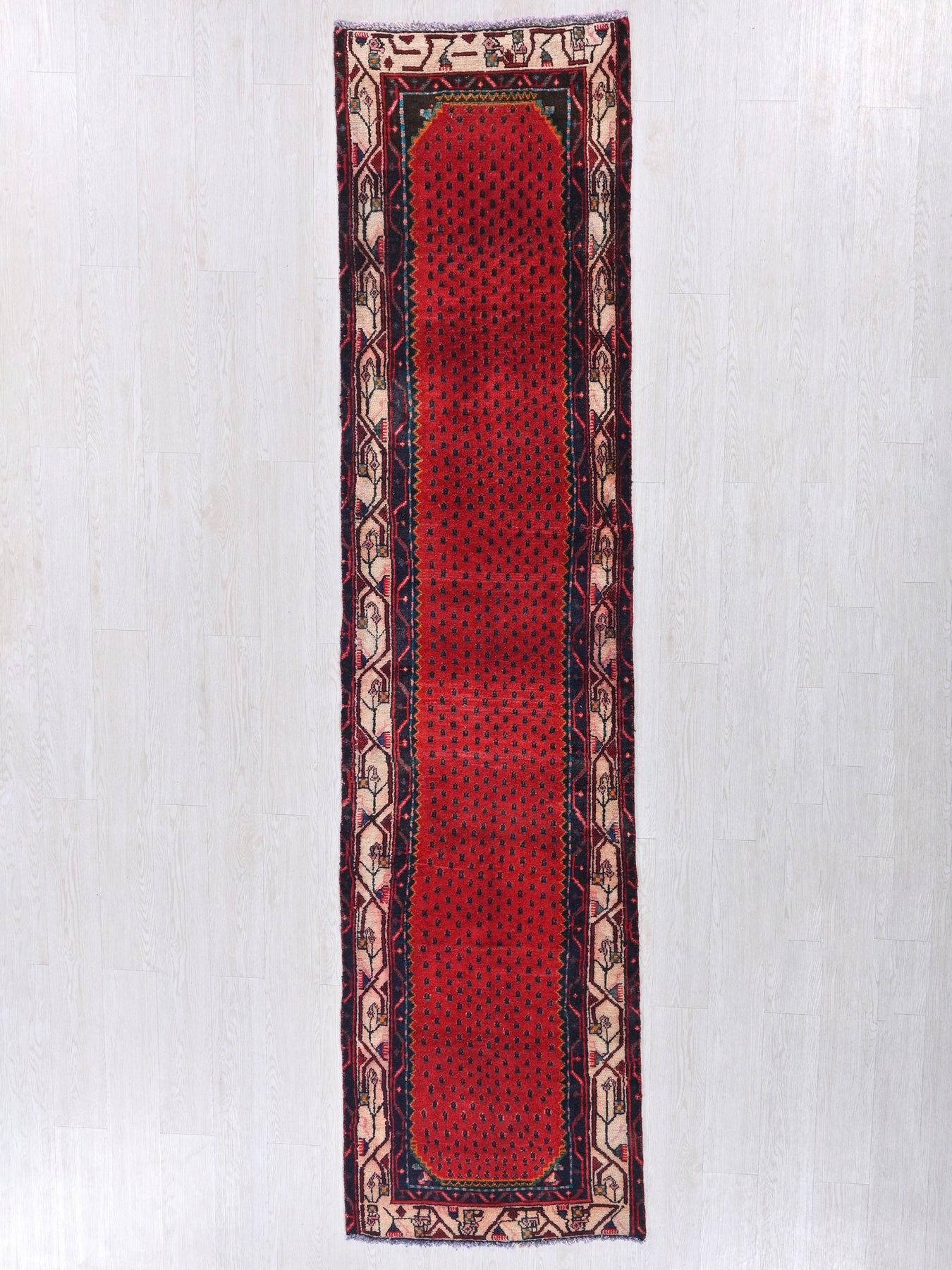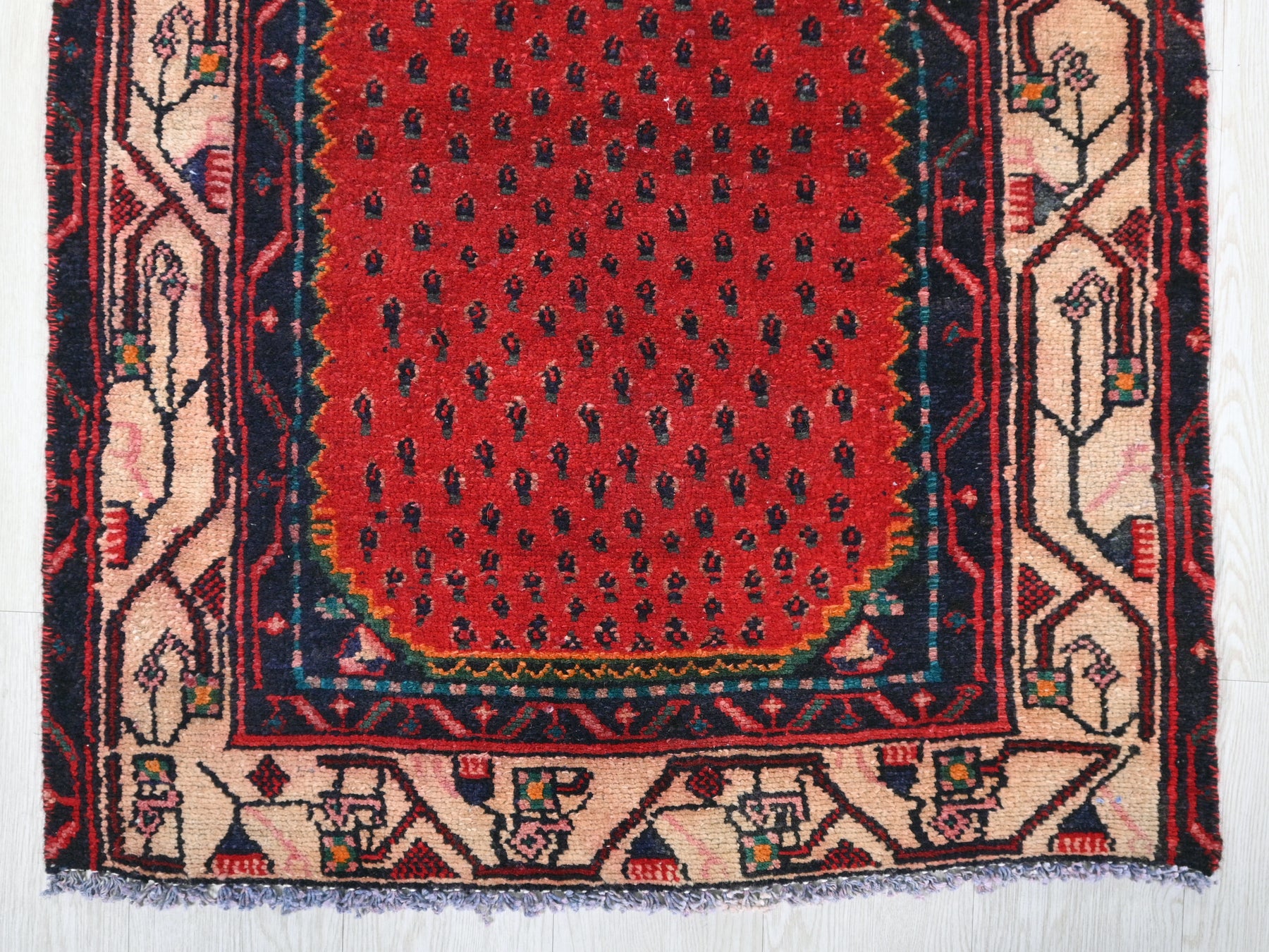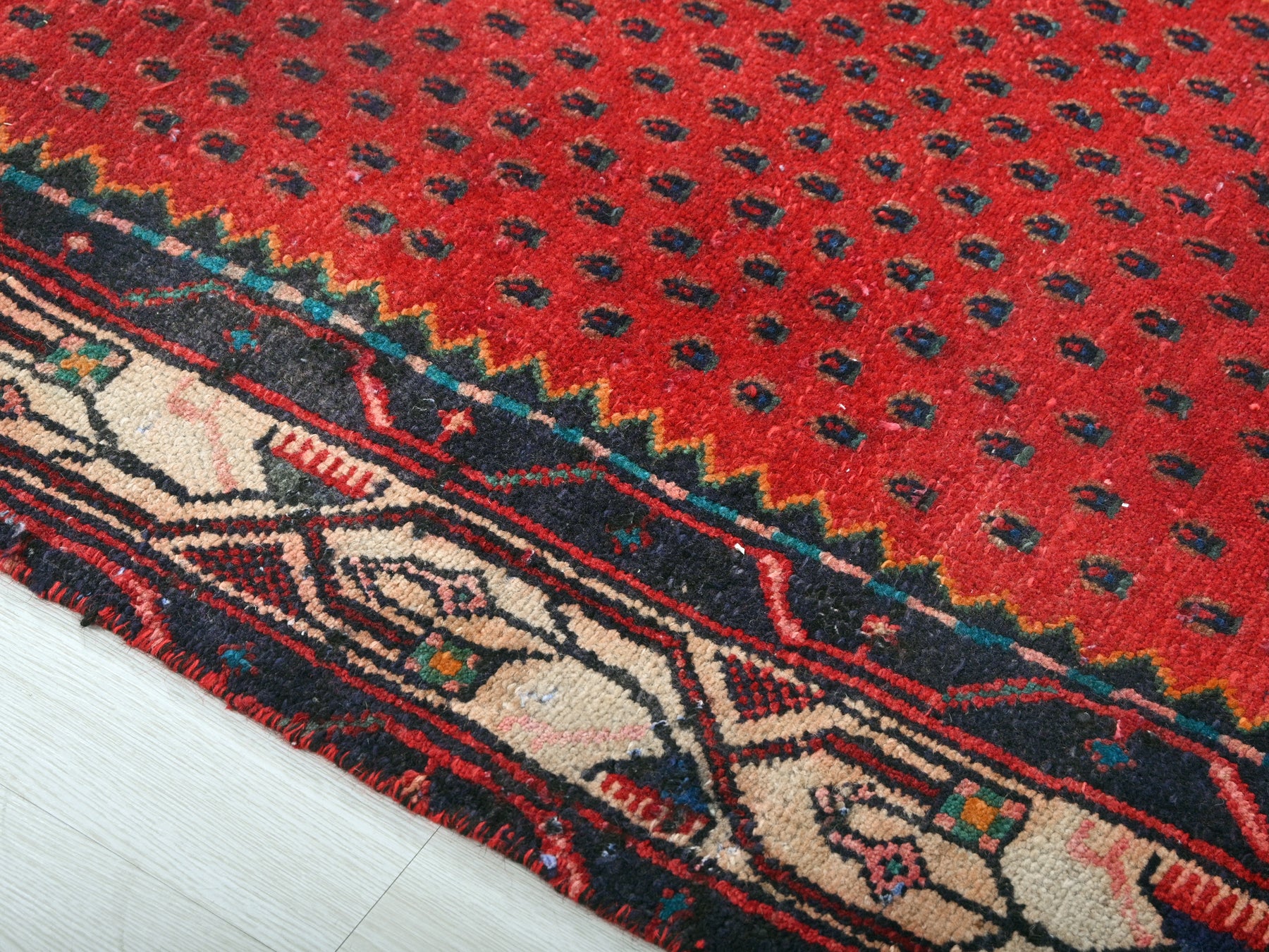 This is a hand-knotted, one-of-a-kind vintage rug. Due to the nature of this piece, there may be slight imperfections in its wear, shape, dimensions, and color. All of our rugs are professionally cleaned and repaired.
