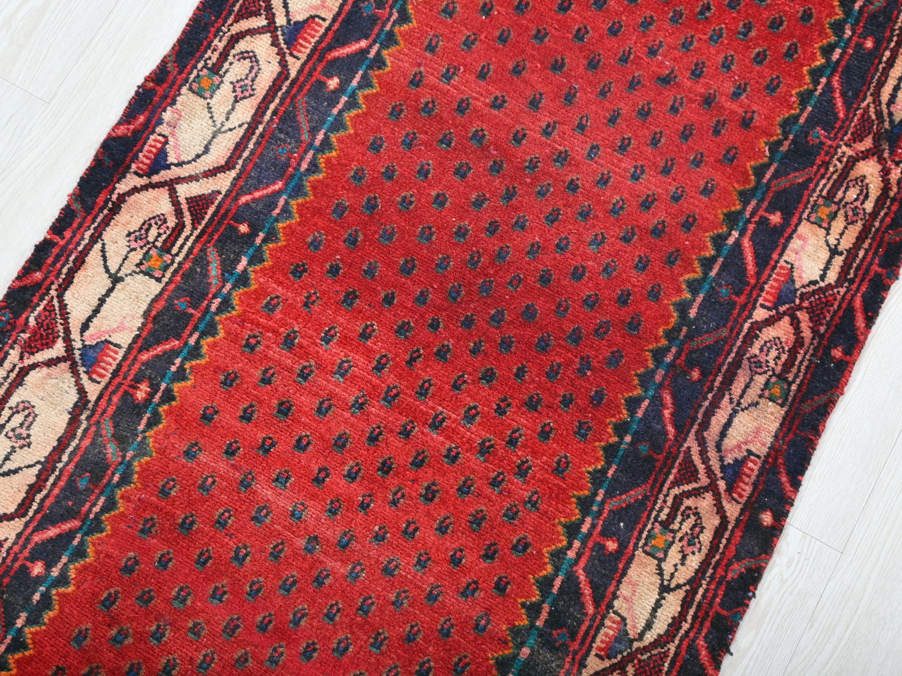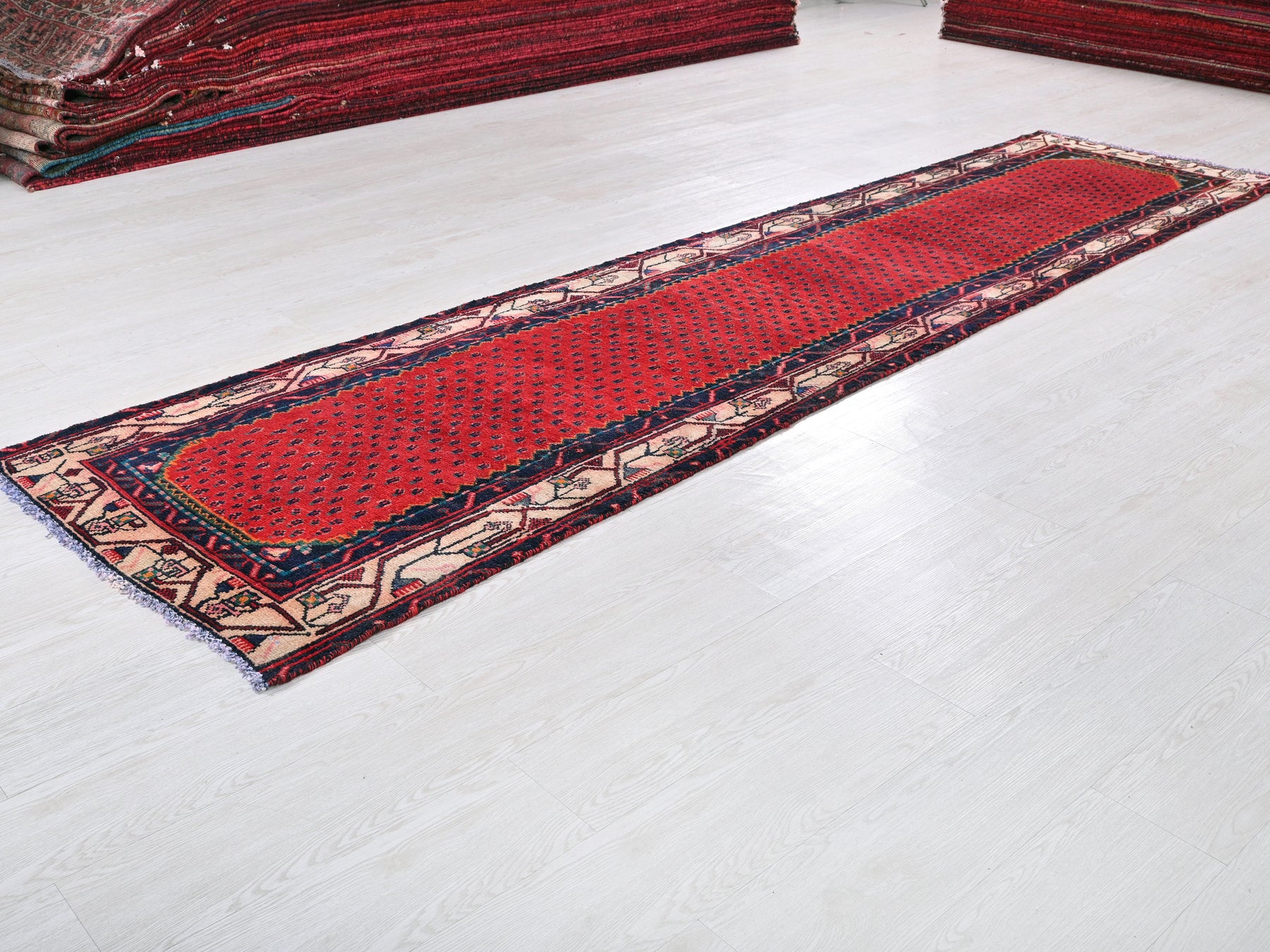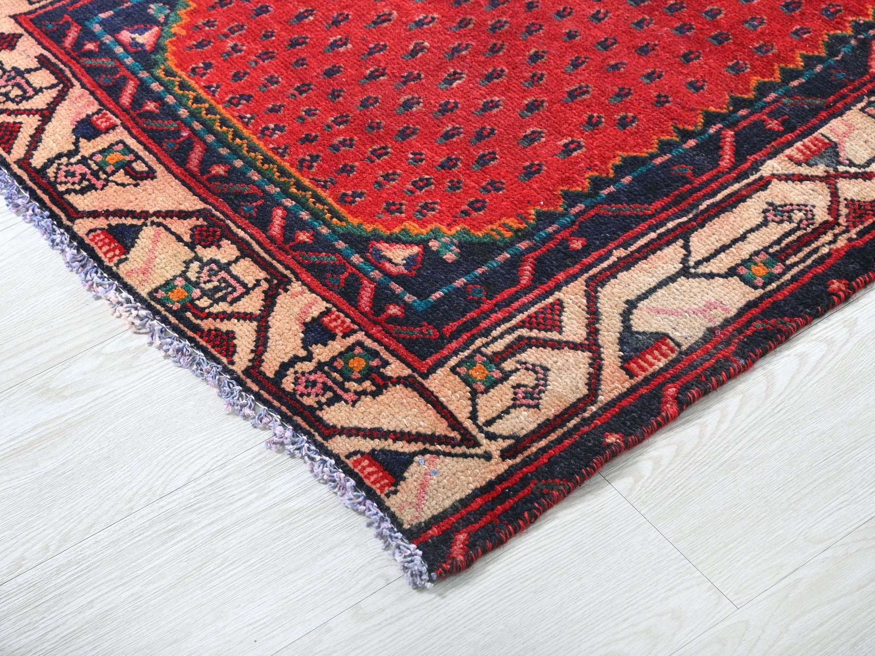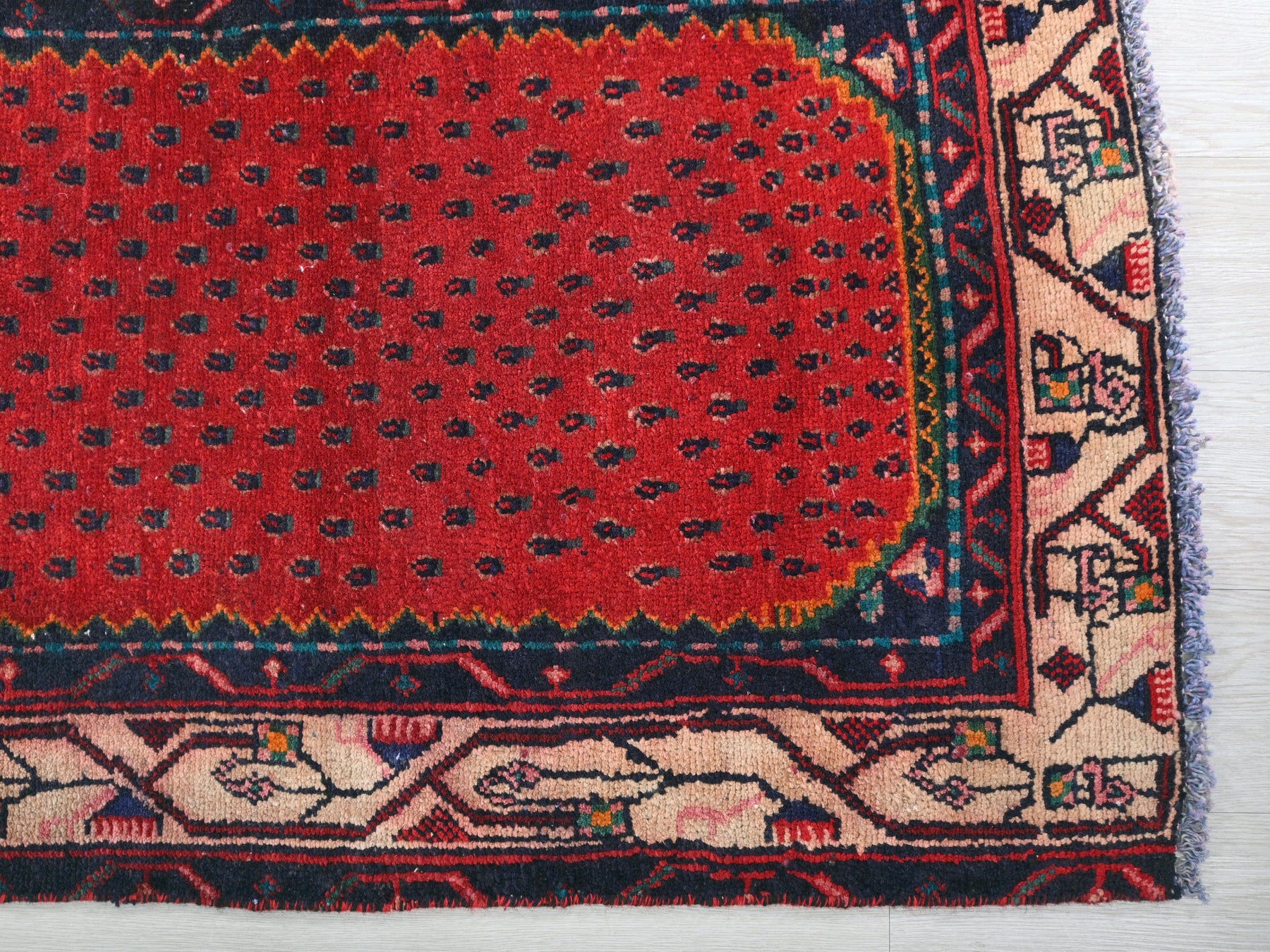 This is a hand-knotted, one-of-a-kind vintage rug. Due to the nature of this piece, there may be slight imperfections in its wear, shape, dimensions, and color. All of our rugs are professionally cleaned and repaired.