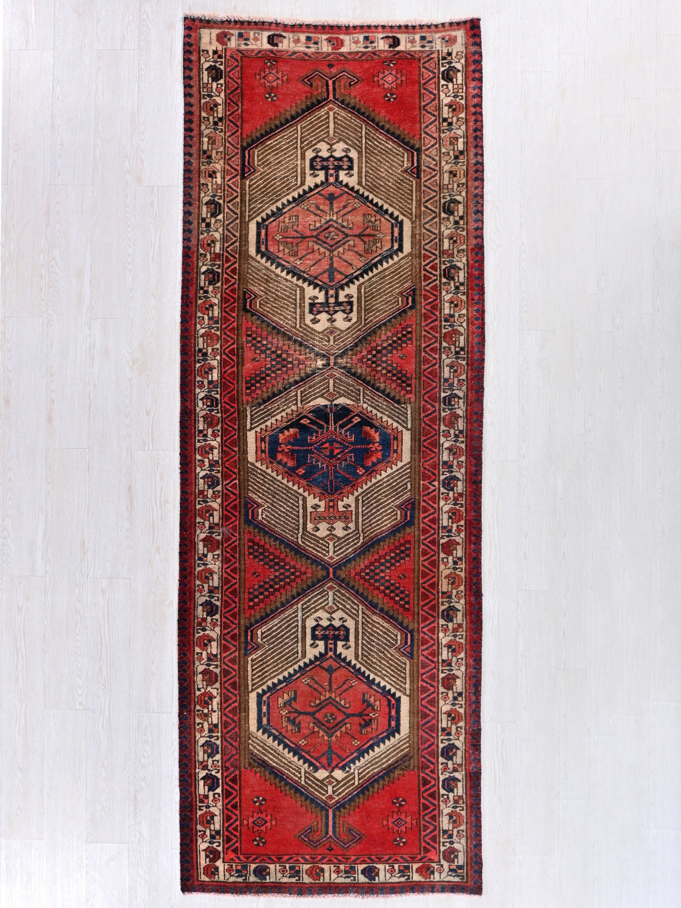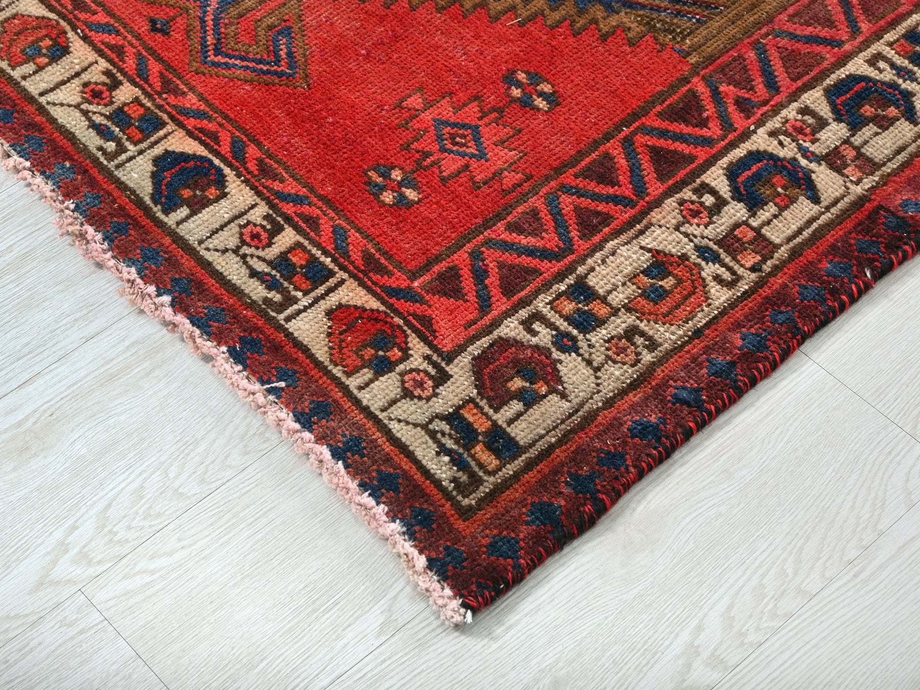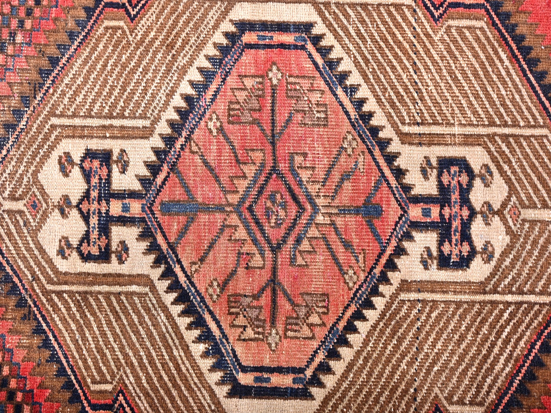 This is a hand-knotted, one-of-a-kind vintage rug. Due to the nature of this piece, there may be slight imperfections in its wear, shape, dimensions, and color. All of our rugs are professionally cleaned and repaired.