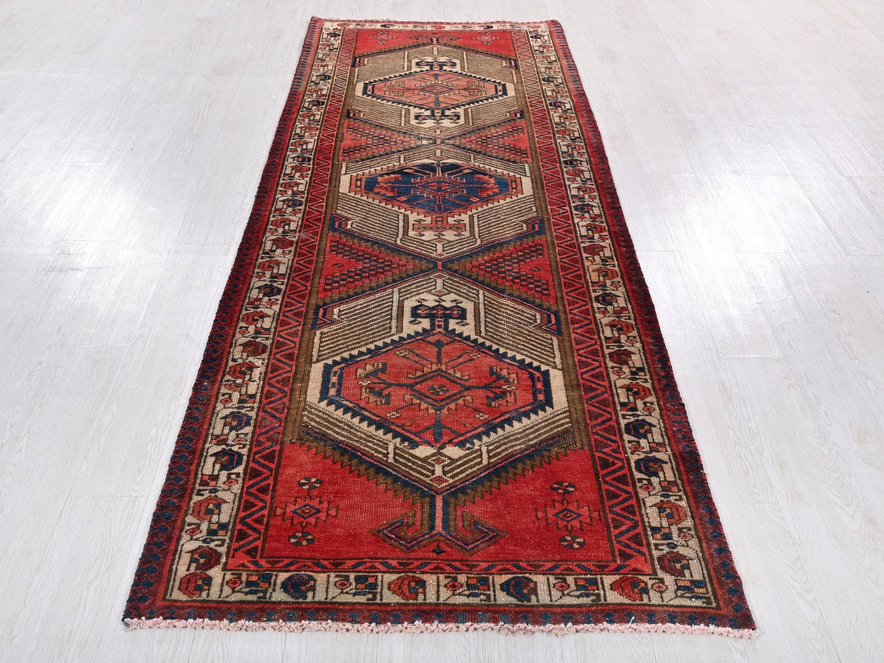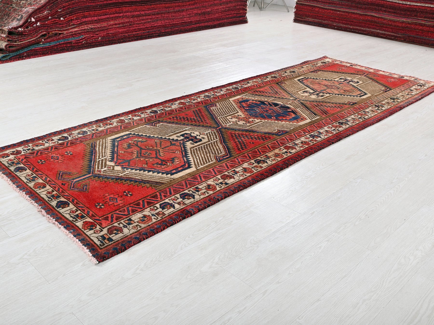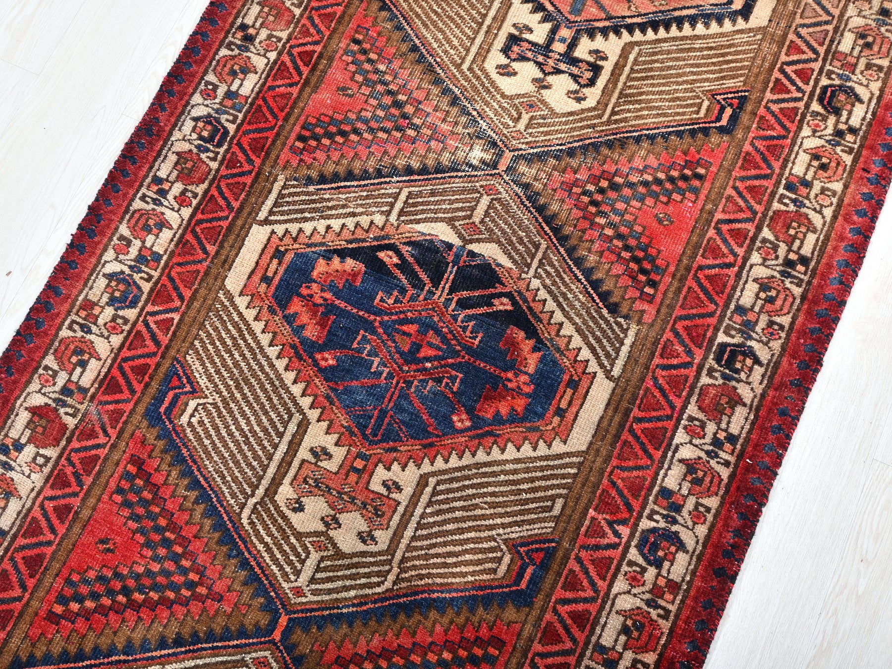 This is a hand-knotted, one-of-a-kind vintage rug. Due to the nature of this piece, there may be slight imperfections in its wear, shape, dimensions, and color. All of our rugs are professionally cleaned and repaired.