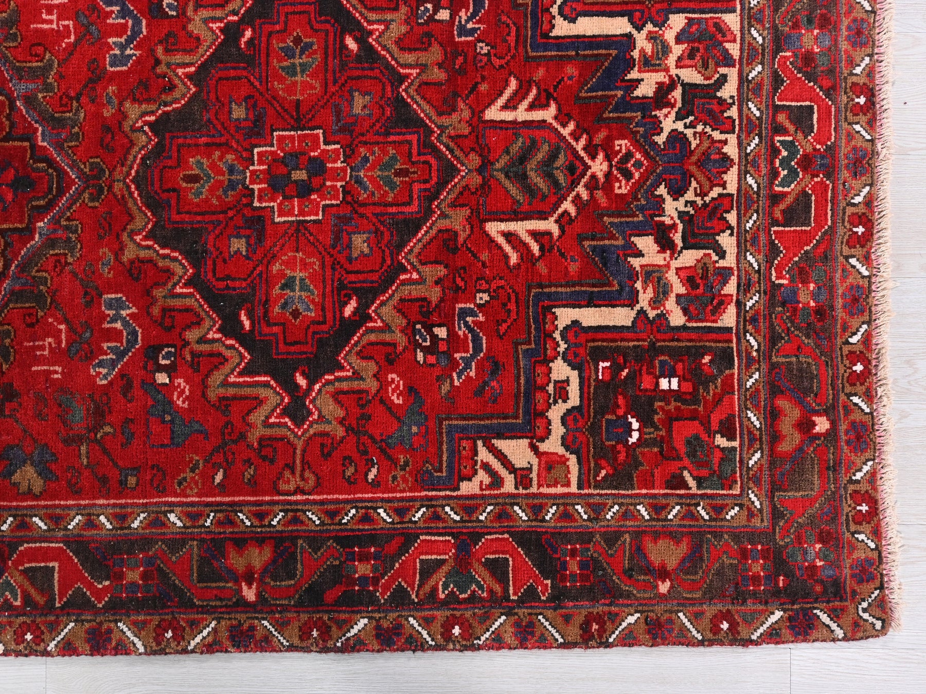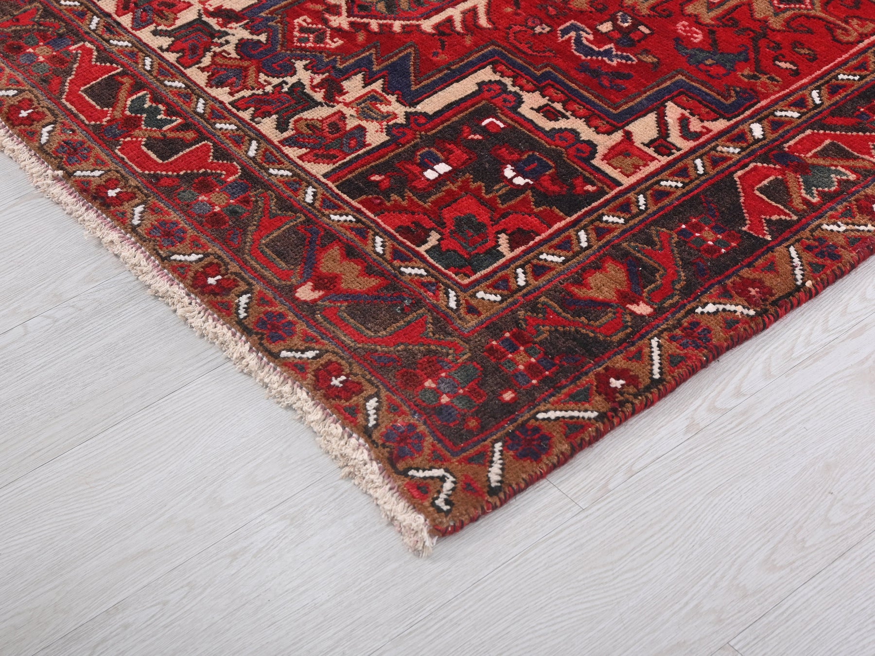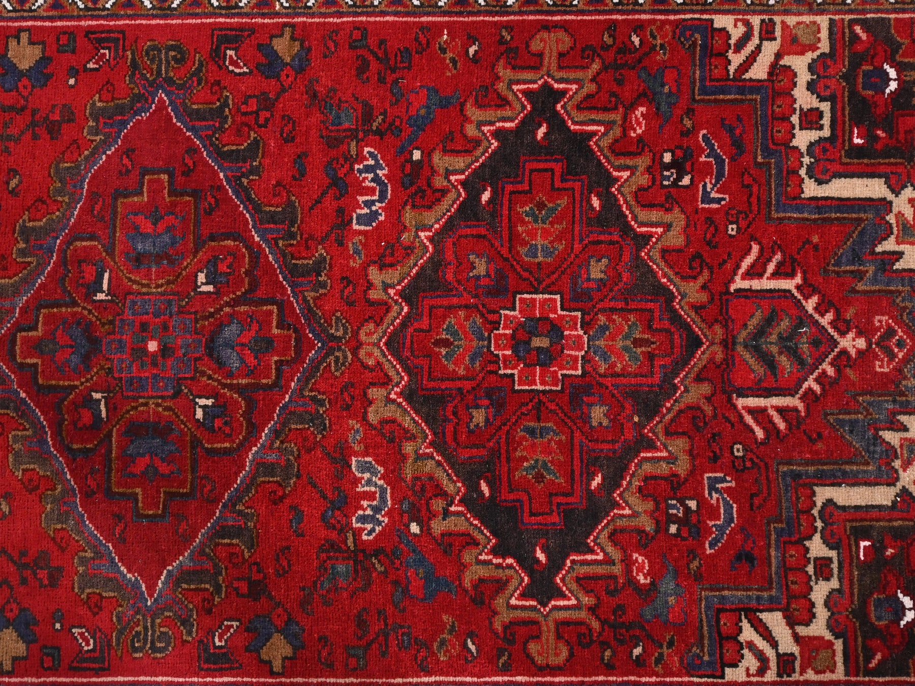 This is a hand-knotted, one-of-a-kind vintage rug. Due to the nature of this piece, there may be slight imperfections in its wear, shape, dimensions, and color. All of our rugs are professionally cleaned and repaired.