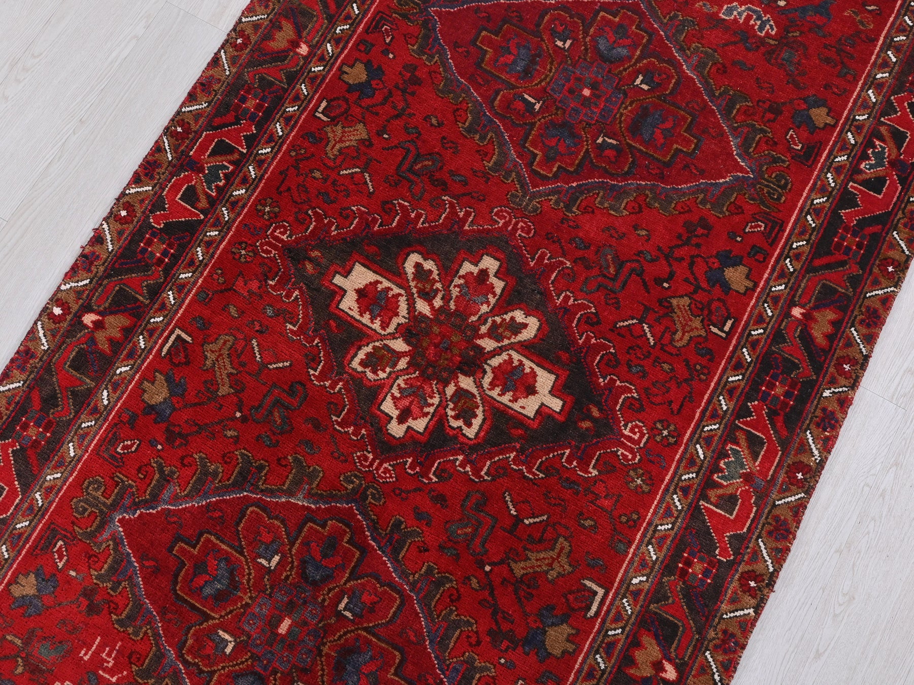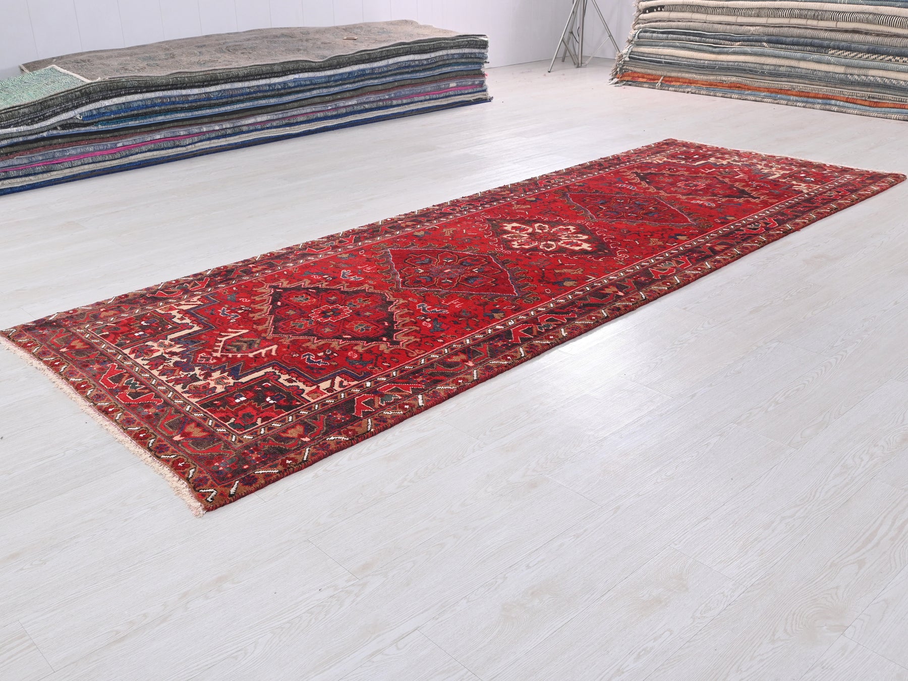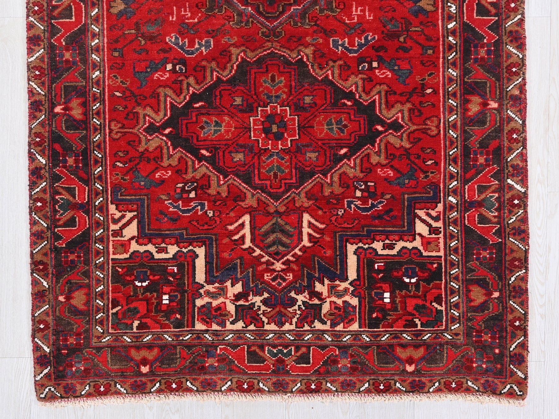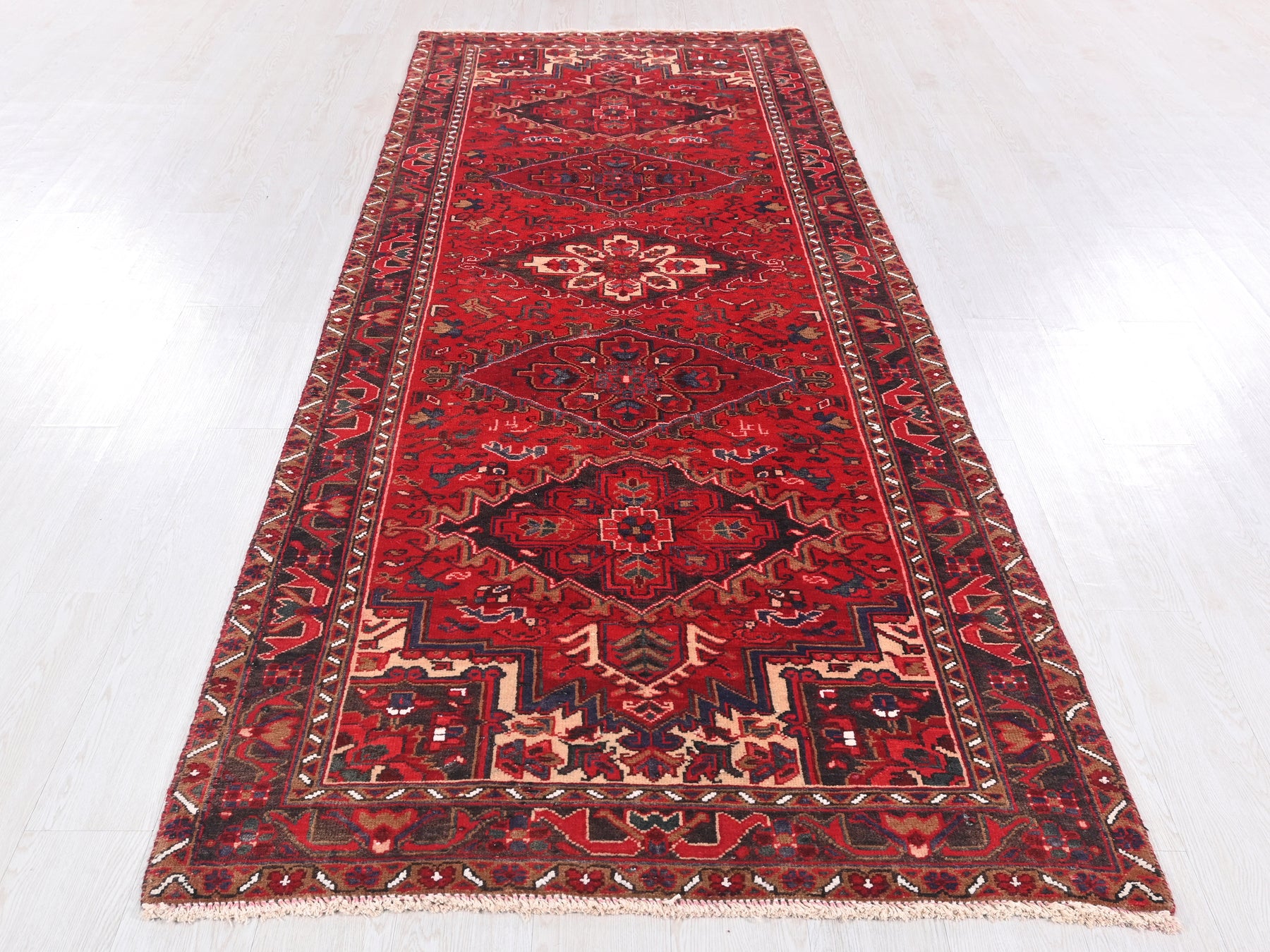 This is a hand-knotted, one-of-a-kind vintage rug. Due to the nature of this piece, there may be slight imperfections in its wear, shape, dimensions, and color. All of our rugs are professionally cleaned and repaired.