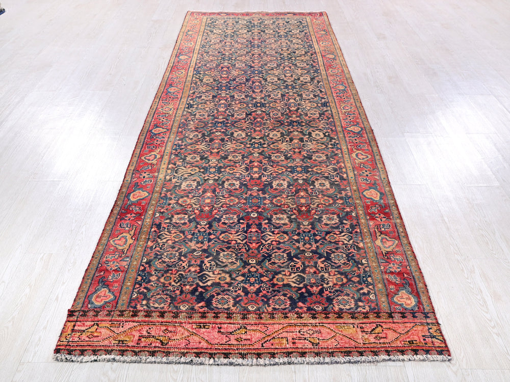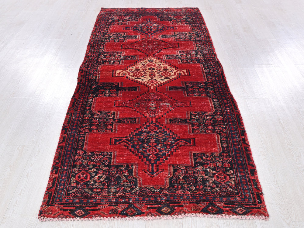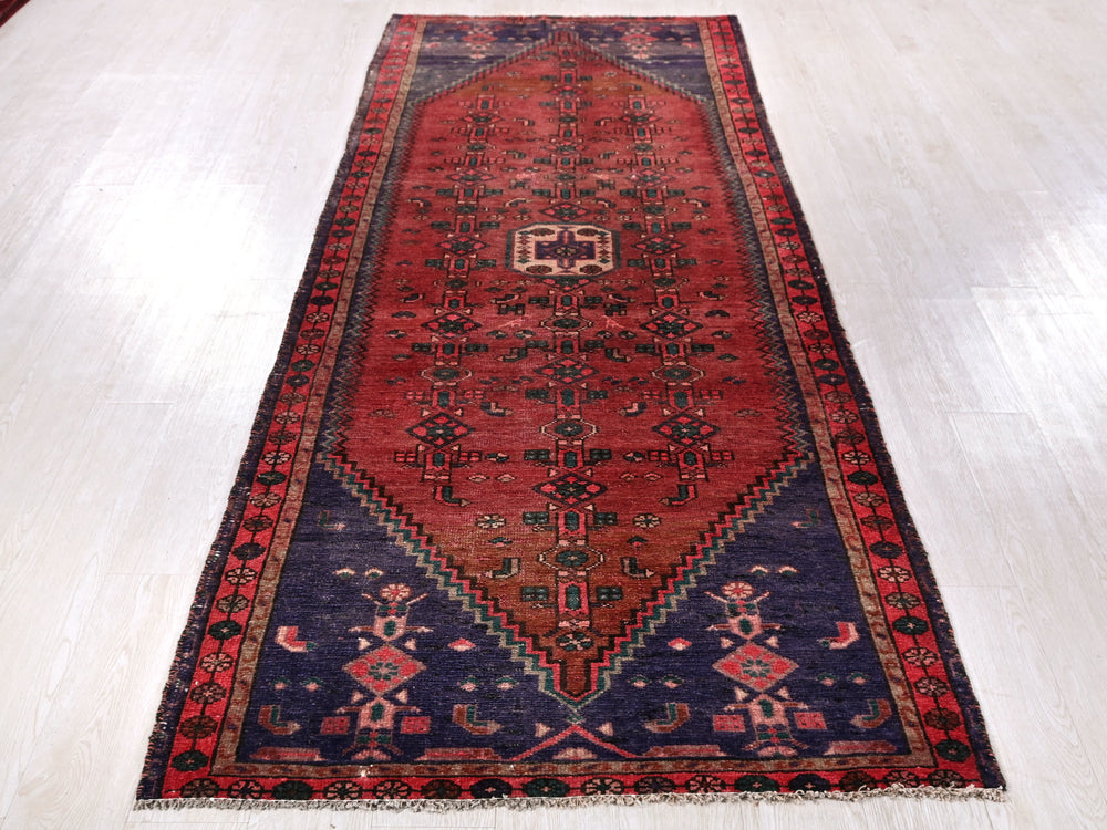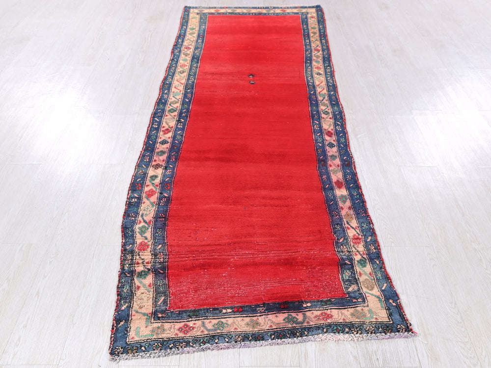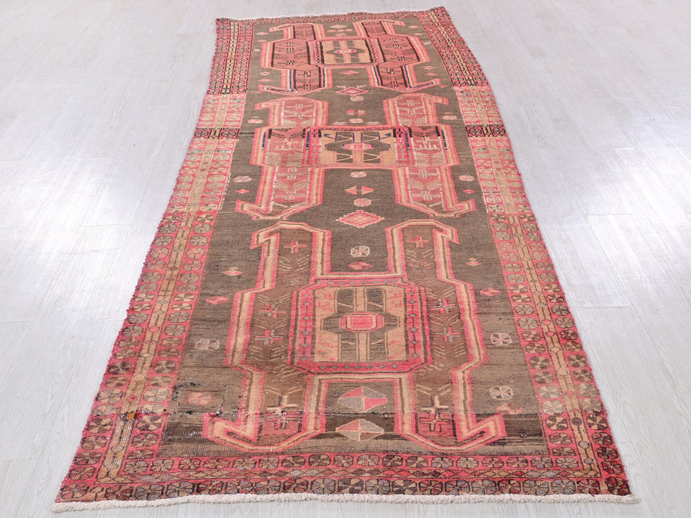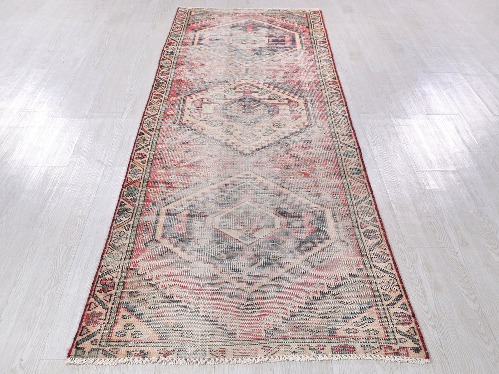 Vintage, hand‑knotted, repaired/restored wear