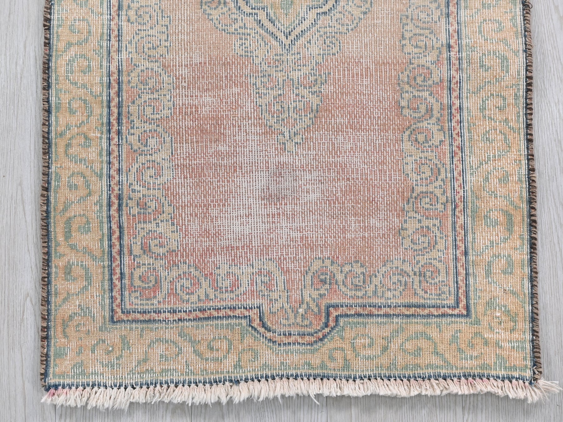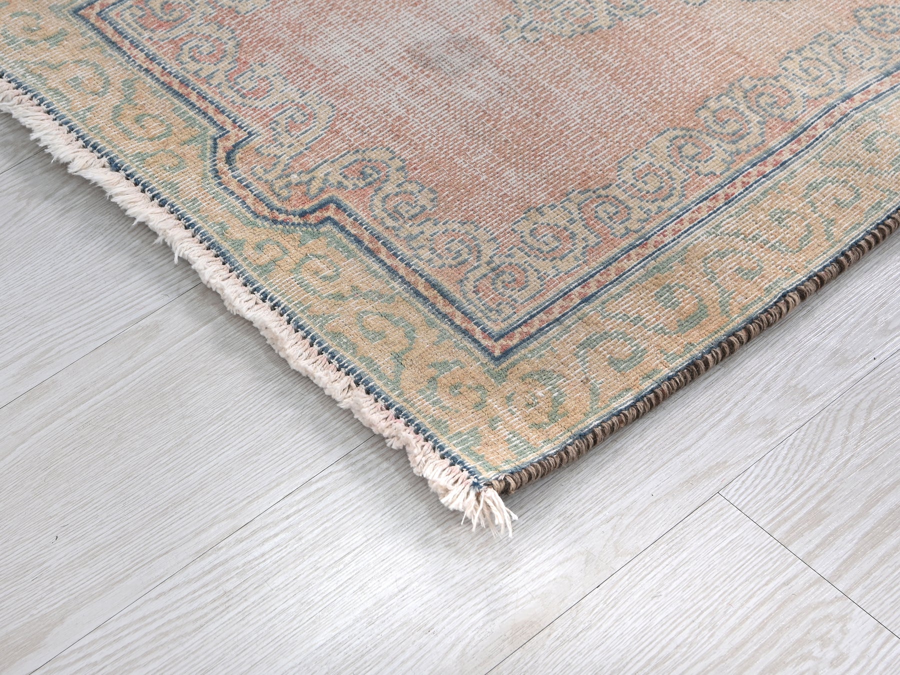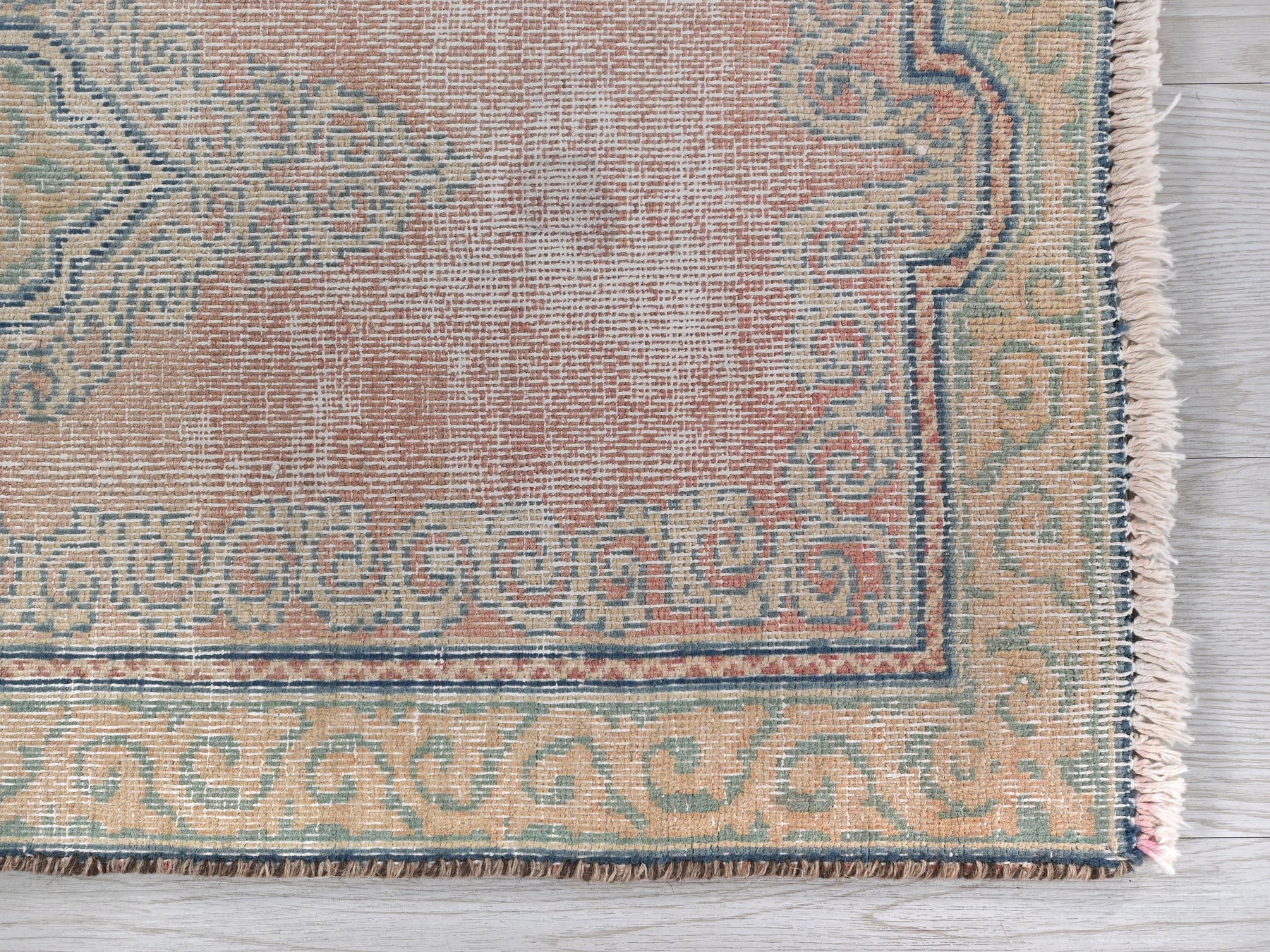 This is a hand-knotted, one-of-a-kind vintage rug. Due to the nature of this piece, there may be slight imperfections in its wear, shape, dimensions, and color. All of our rugs are professionally cleaned and repaired.