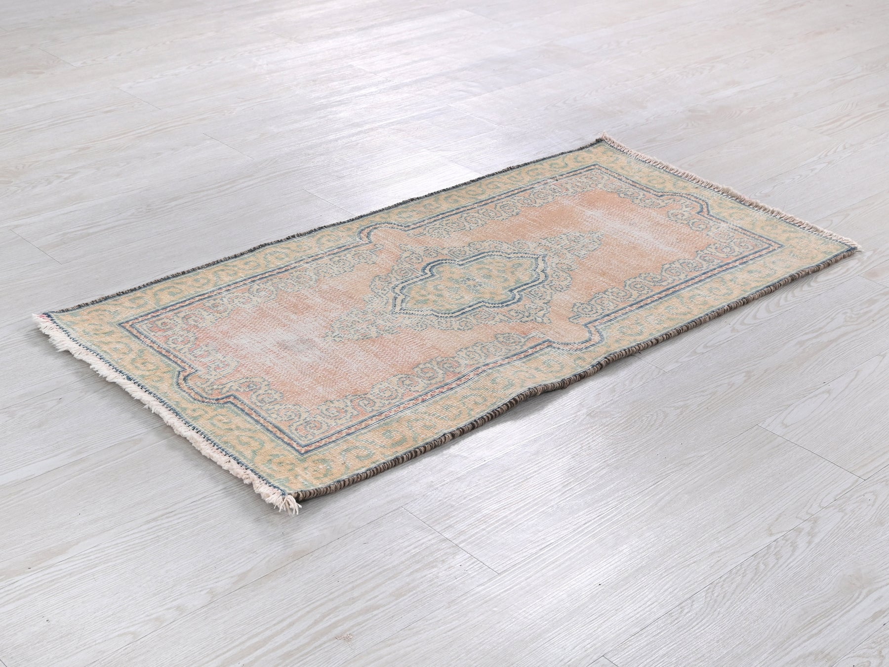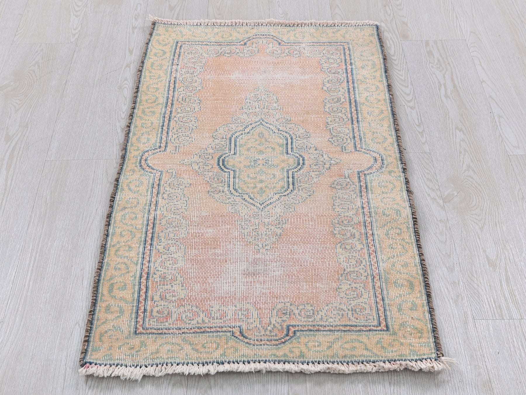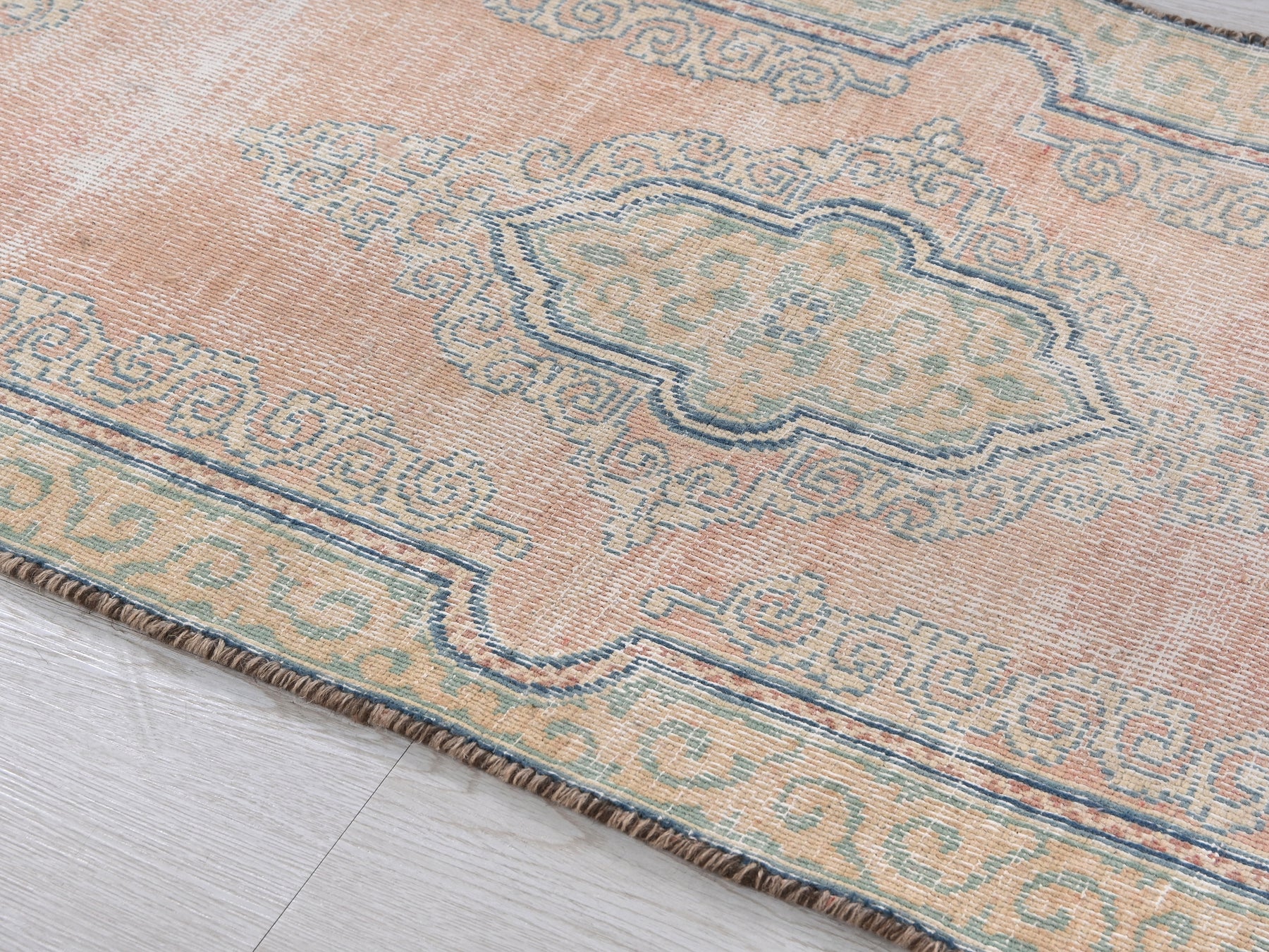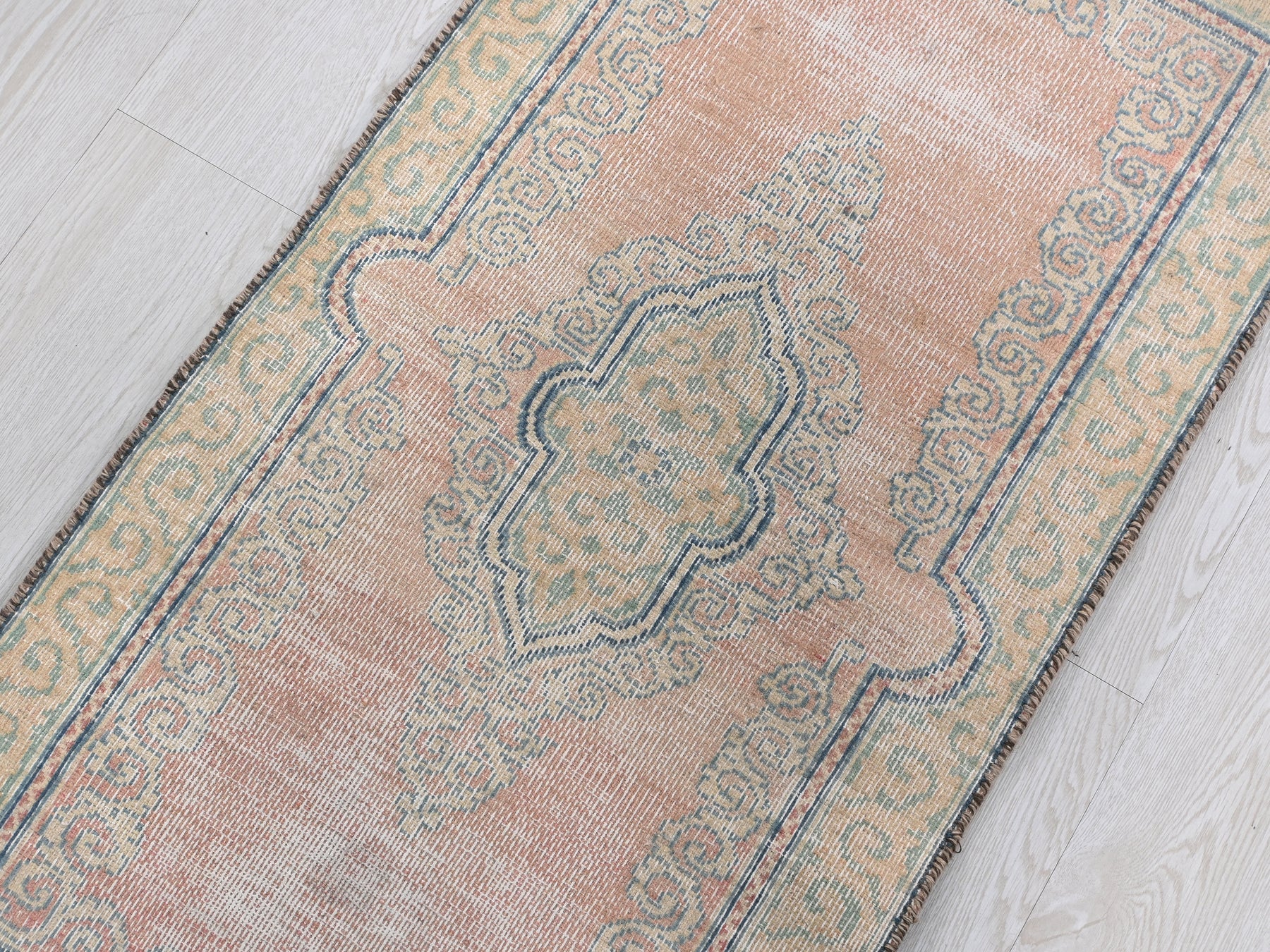 This is a hand-knotted, one-of-a-kind vintage rug. Due to the nature of this piece, there may be slight imperfections in its wear, shape, dimensions, and color. All of our rugs are professionally cleaned and repaired.
