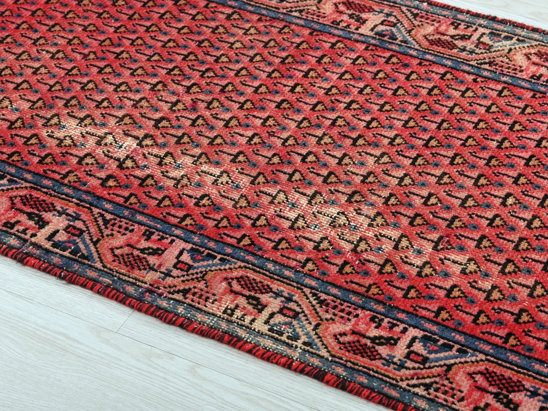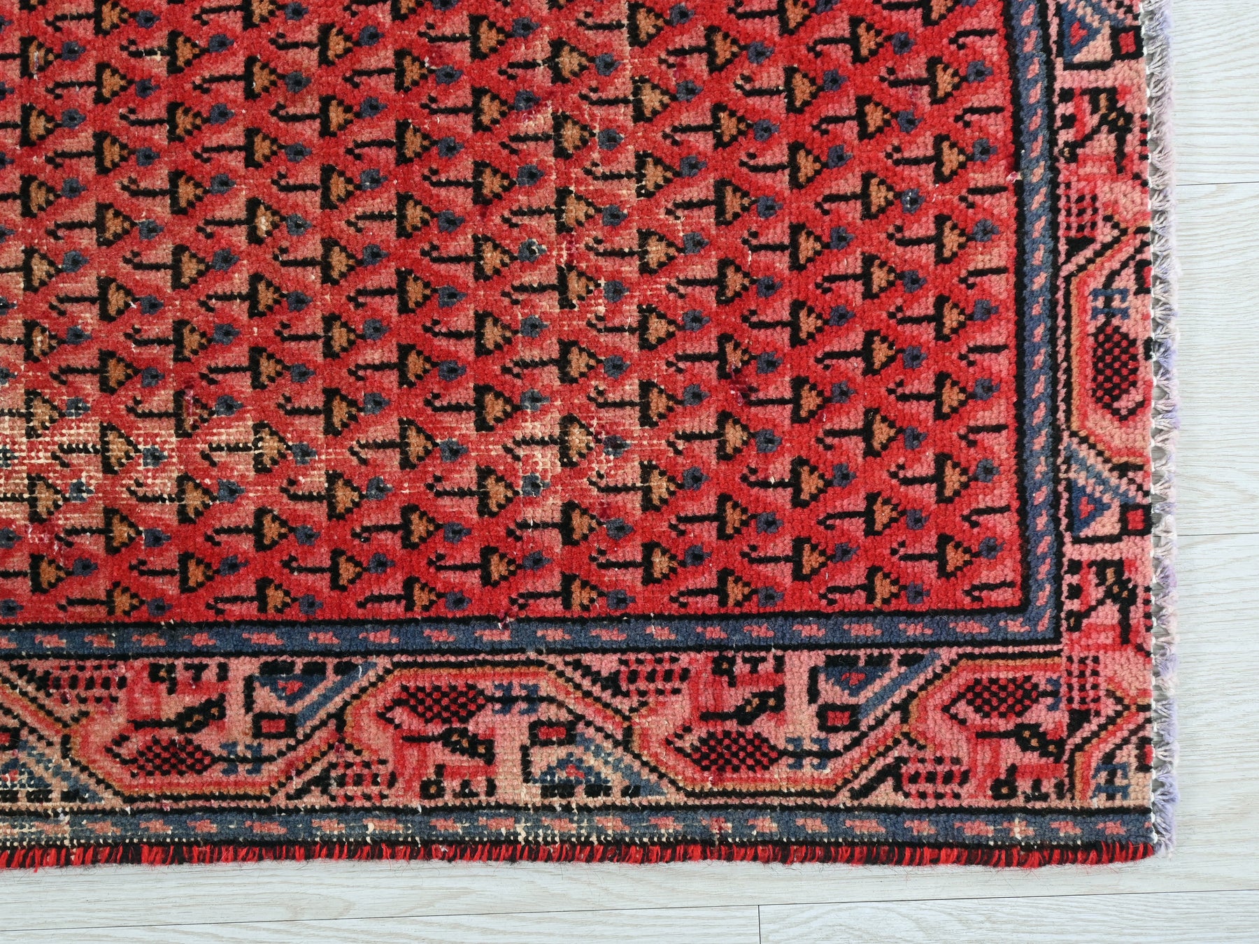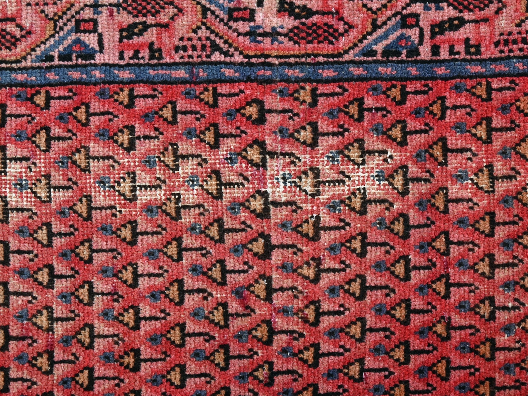 This is a hand-knotted, one-of-a-kind vintage rug. Due to the nature of this piece, there may be slight imperfections in its wear, shape, dimensions, and color. All of our rugs are professionally cleaned and repaired.