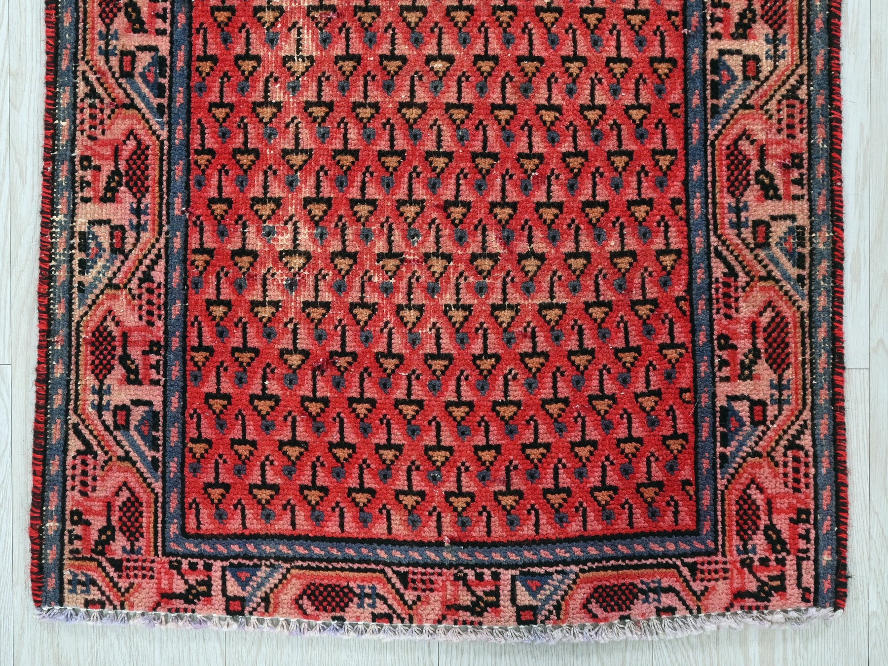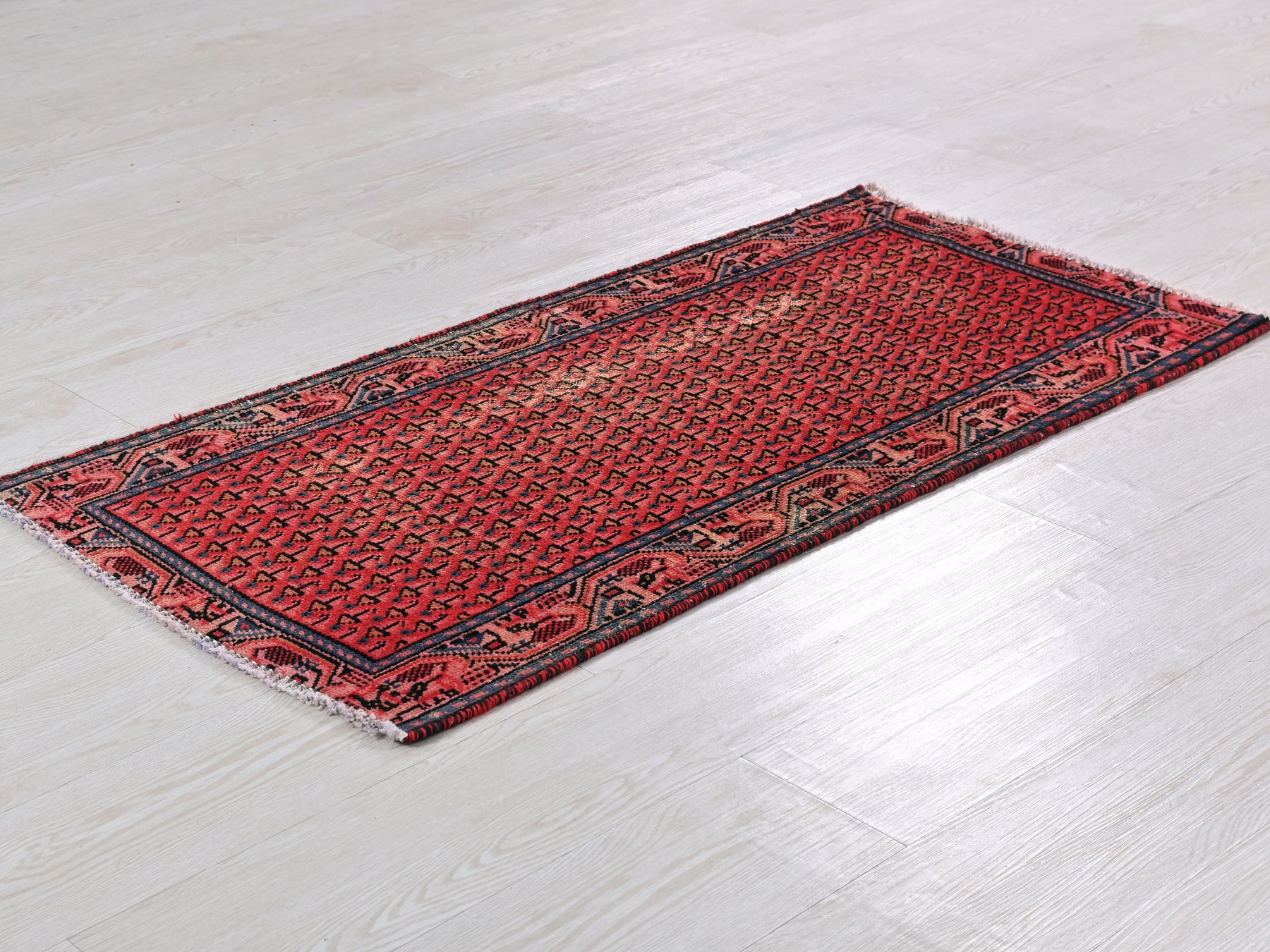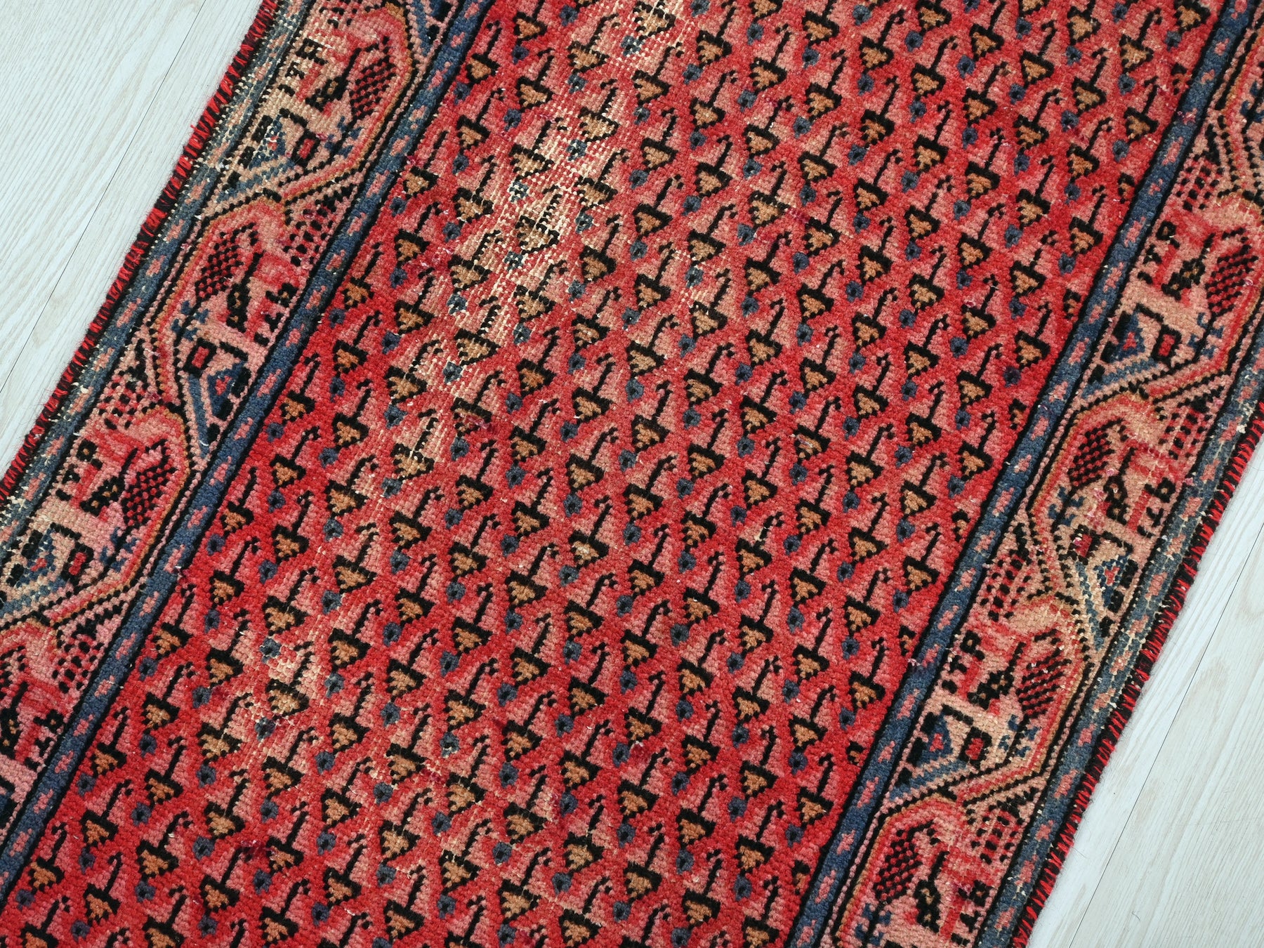 This is a hand-knotted, one-of-a-kind vintage rug. Due to the nature of this piece, there may be slight imperfections in its wear, shape, dimensions, and color. All of our rugs are professionally cleaned and repaired.