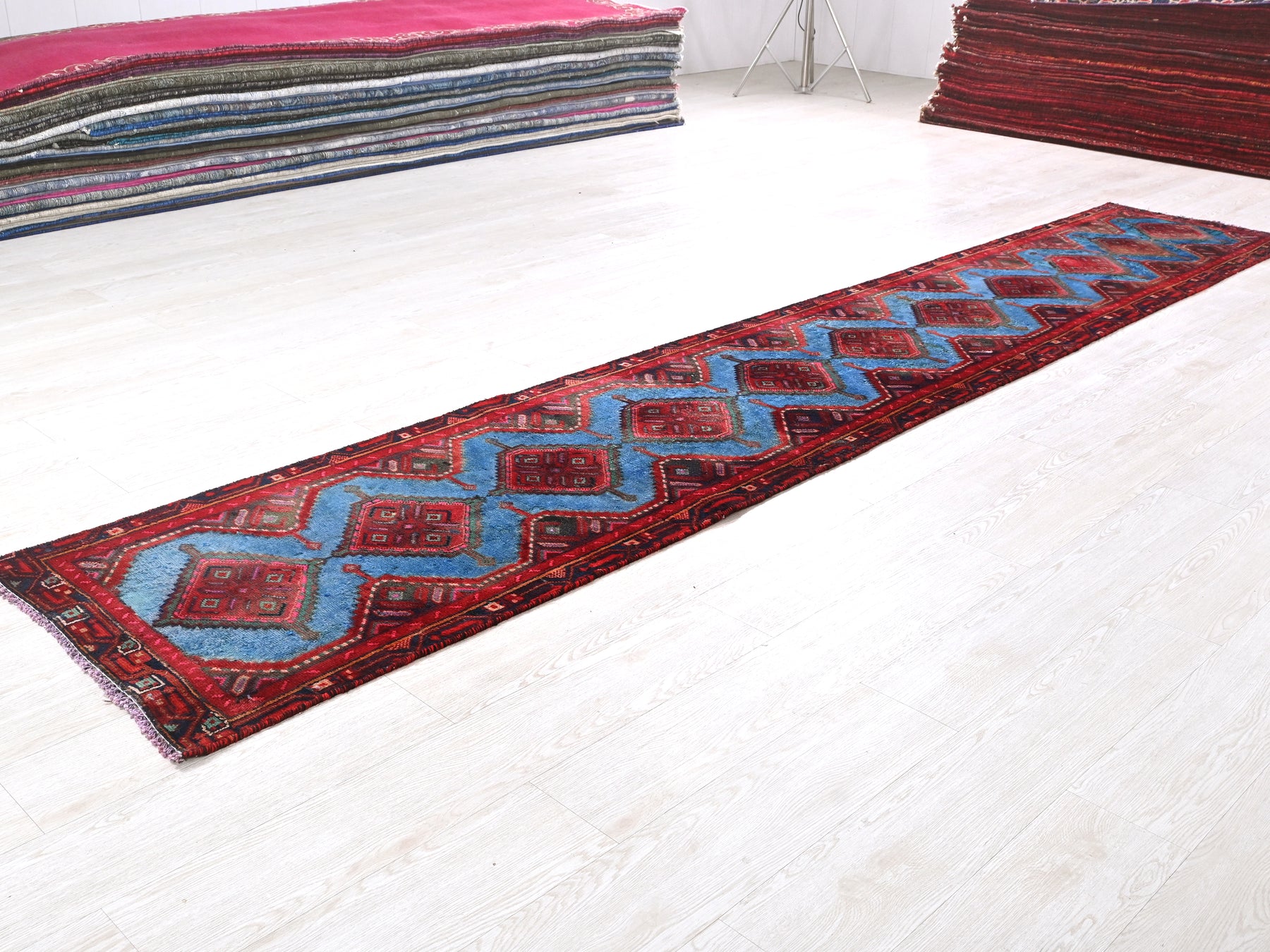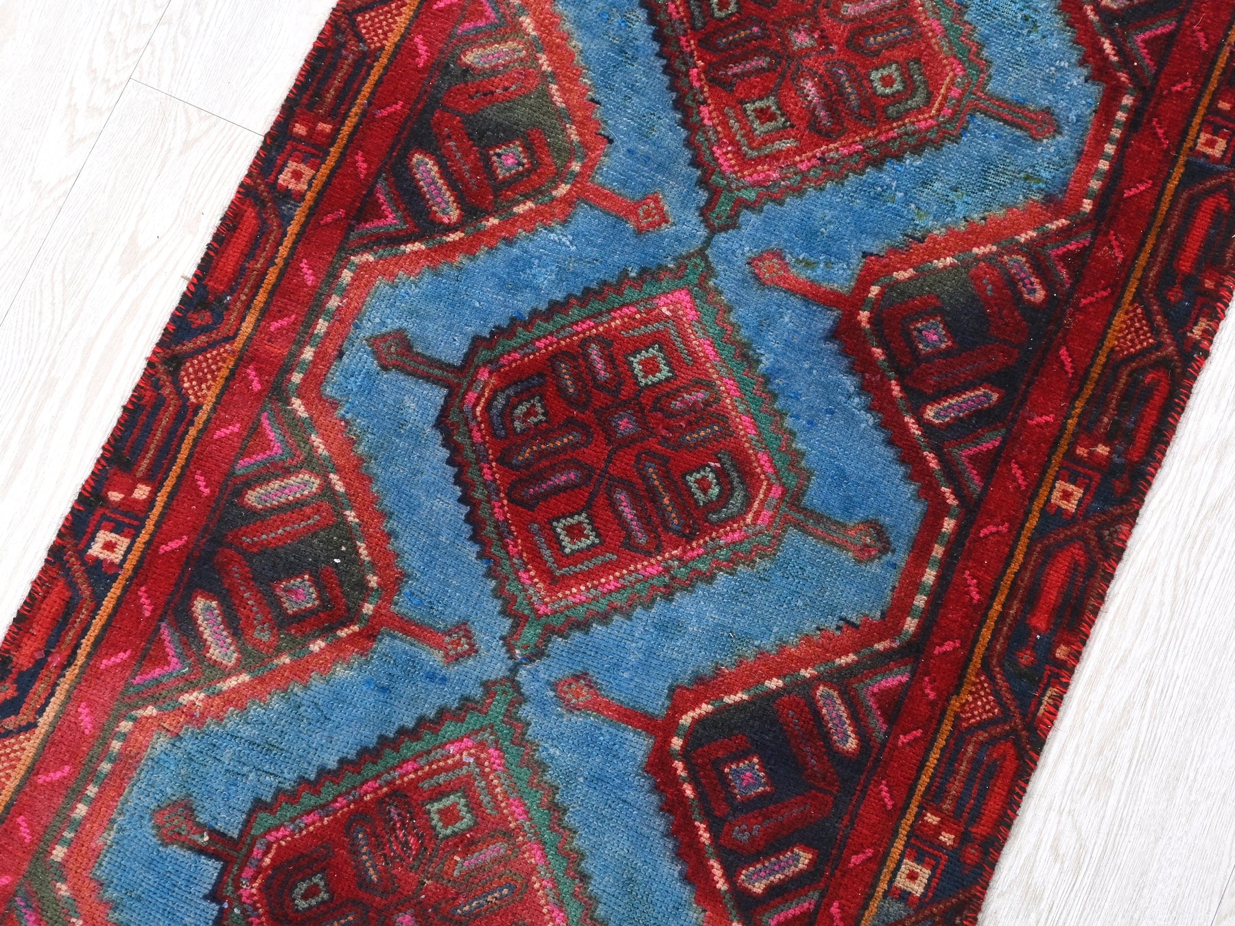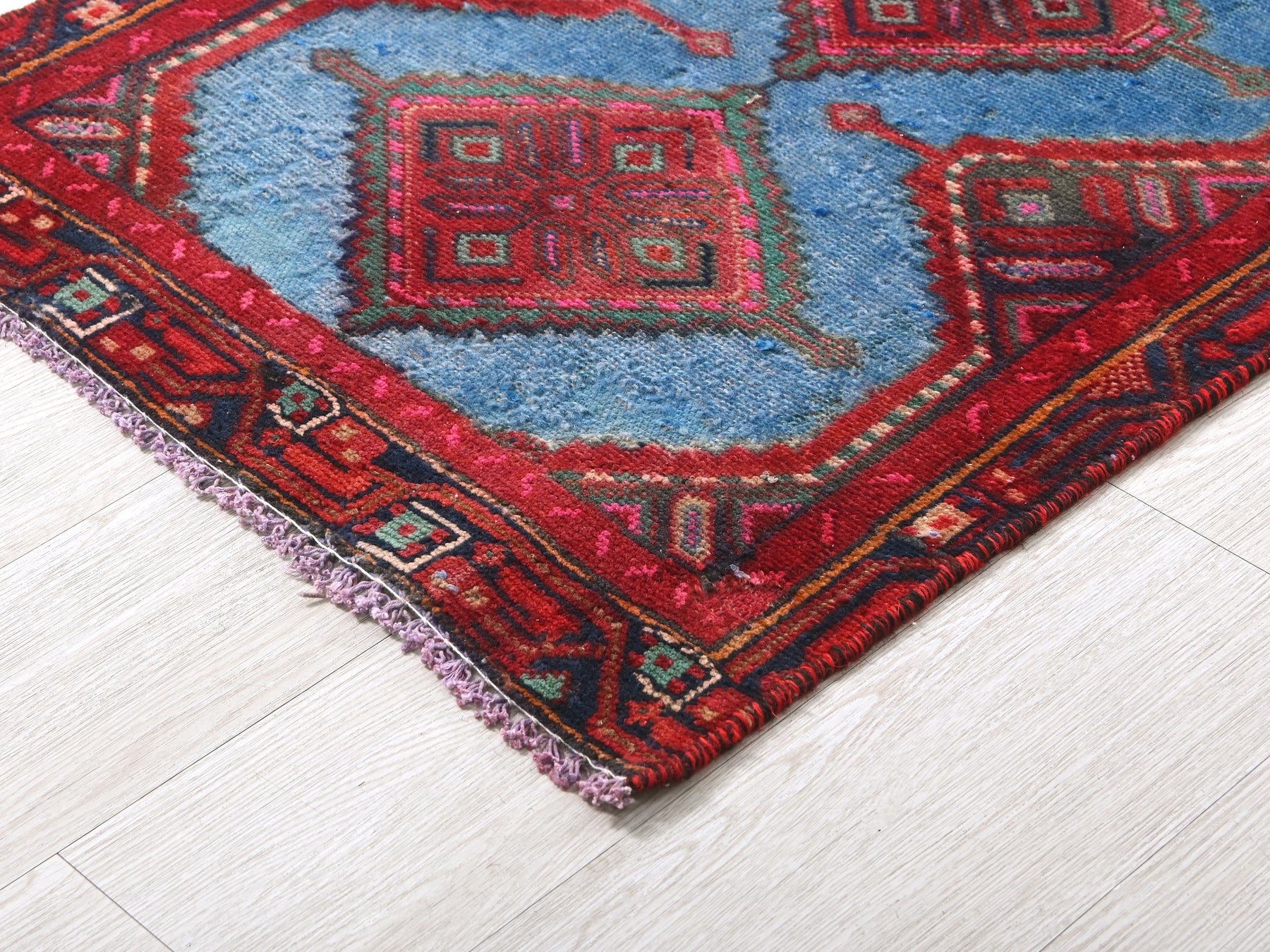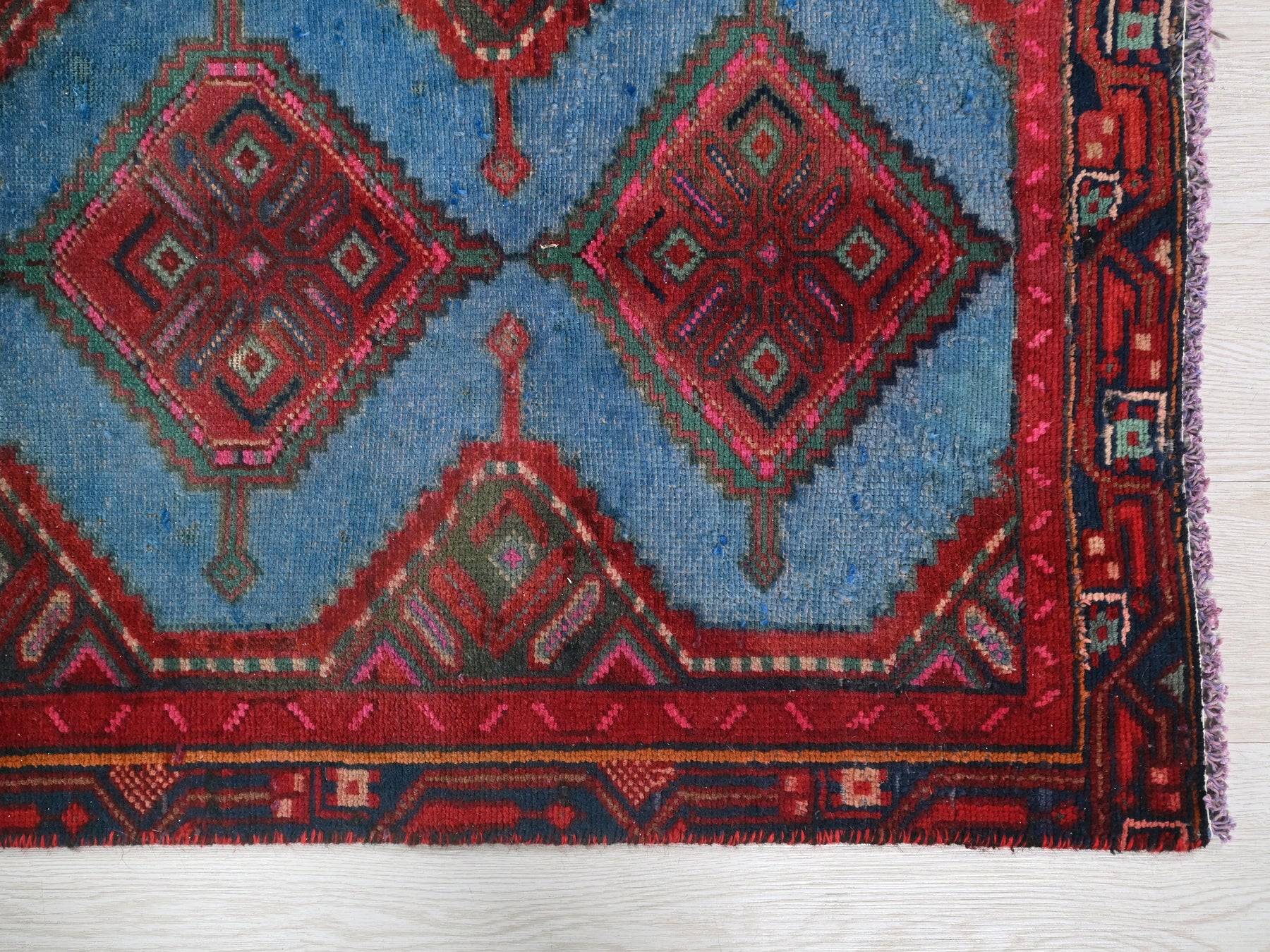 This is a hand-knotted, one-of-a-kind vintage rug. Due to the nature of this piece, there may be slight imperfections in its wear, shape, dimensions, and color. All of our rugs are professionally cleaned and repaired.