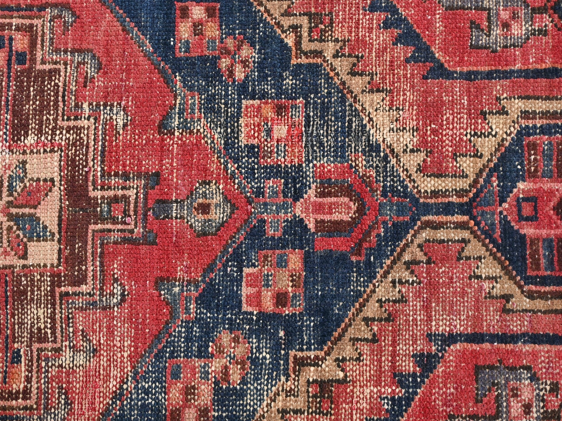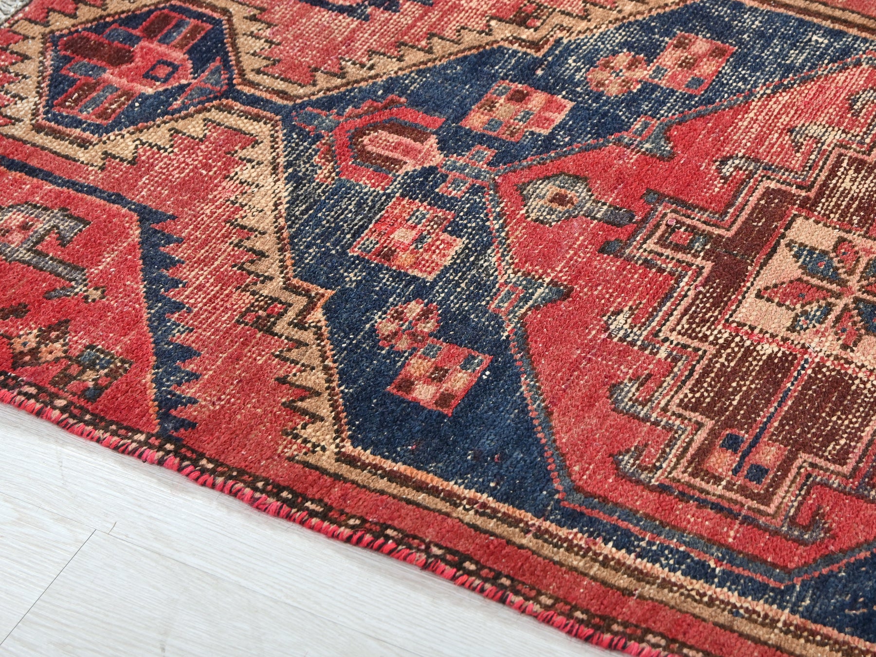 This is a hand-knotted, one-of-a-kind vintage rug. Due to the nature of this piece, there may be slight imperfections in its wear, shape, dimensions, and color. All of our rugs are professionally cleaned and repaired.