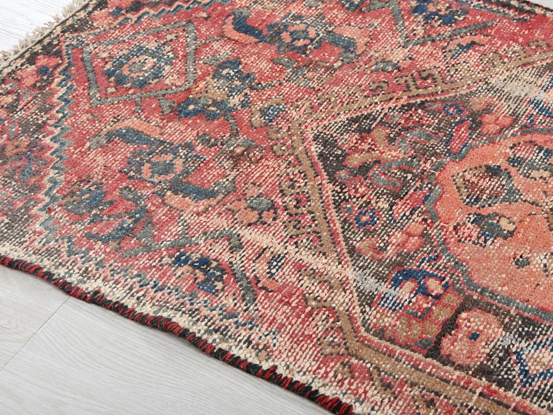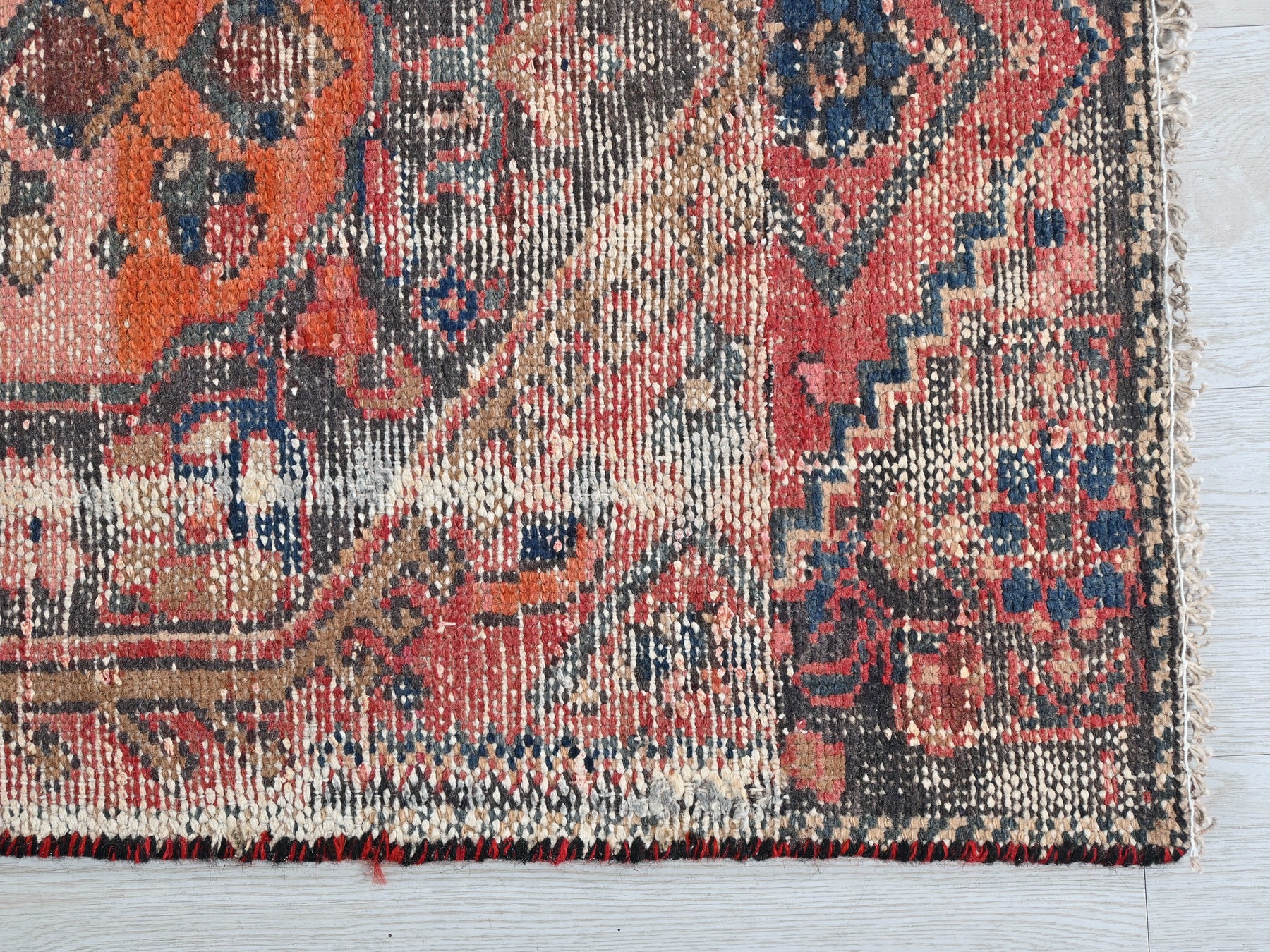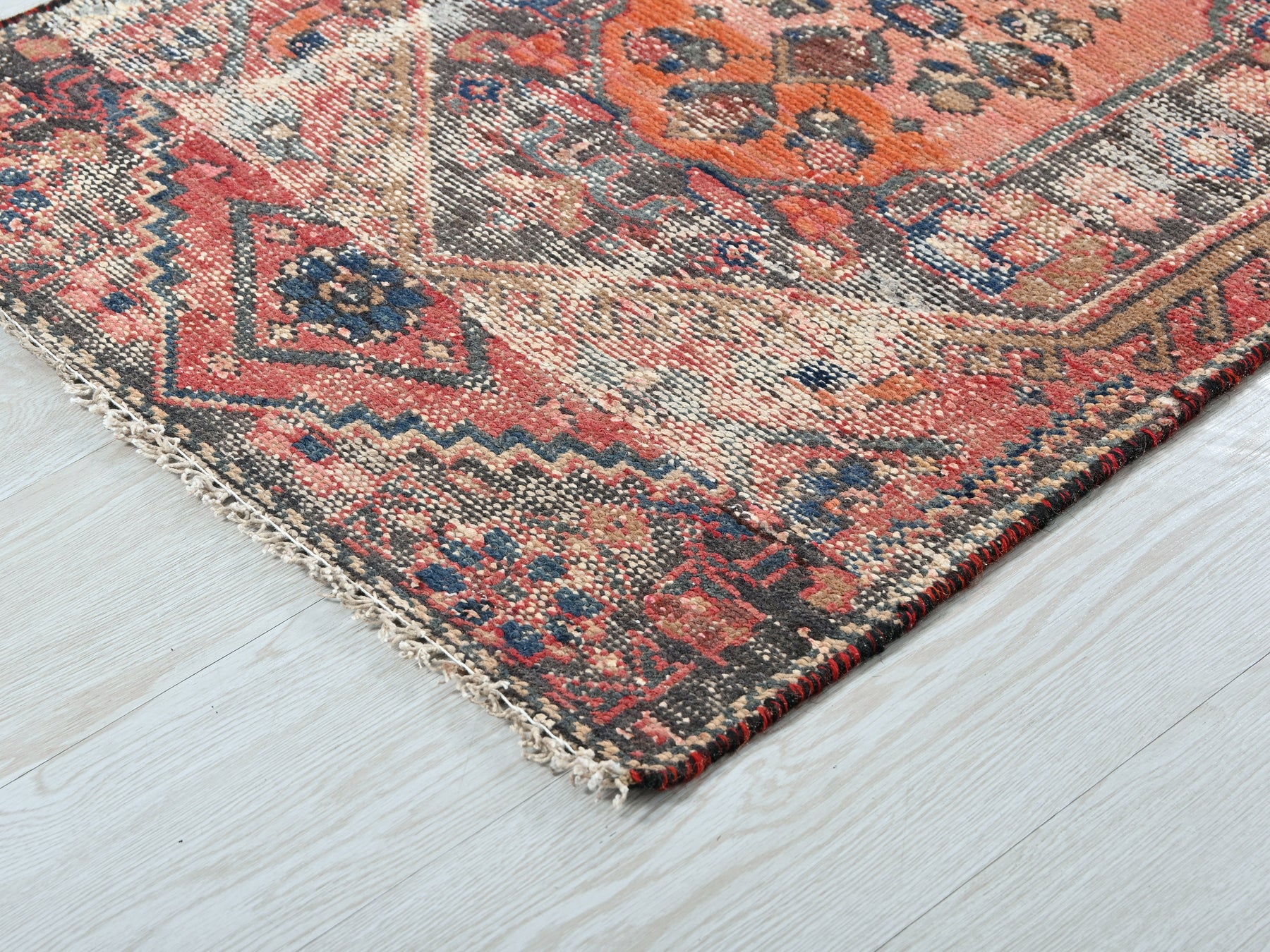 This is a hand-knotted, one-of-a-kind vintage rug. Due to the nature of this piece, there may be slight imperfections in its wear, shape, dimensions, and color. All of our rugs are professionally cleaned and repaired.