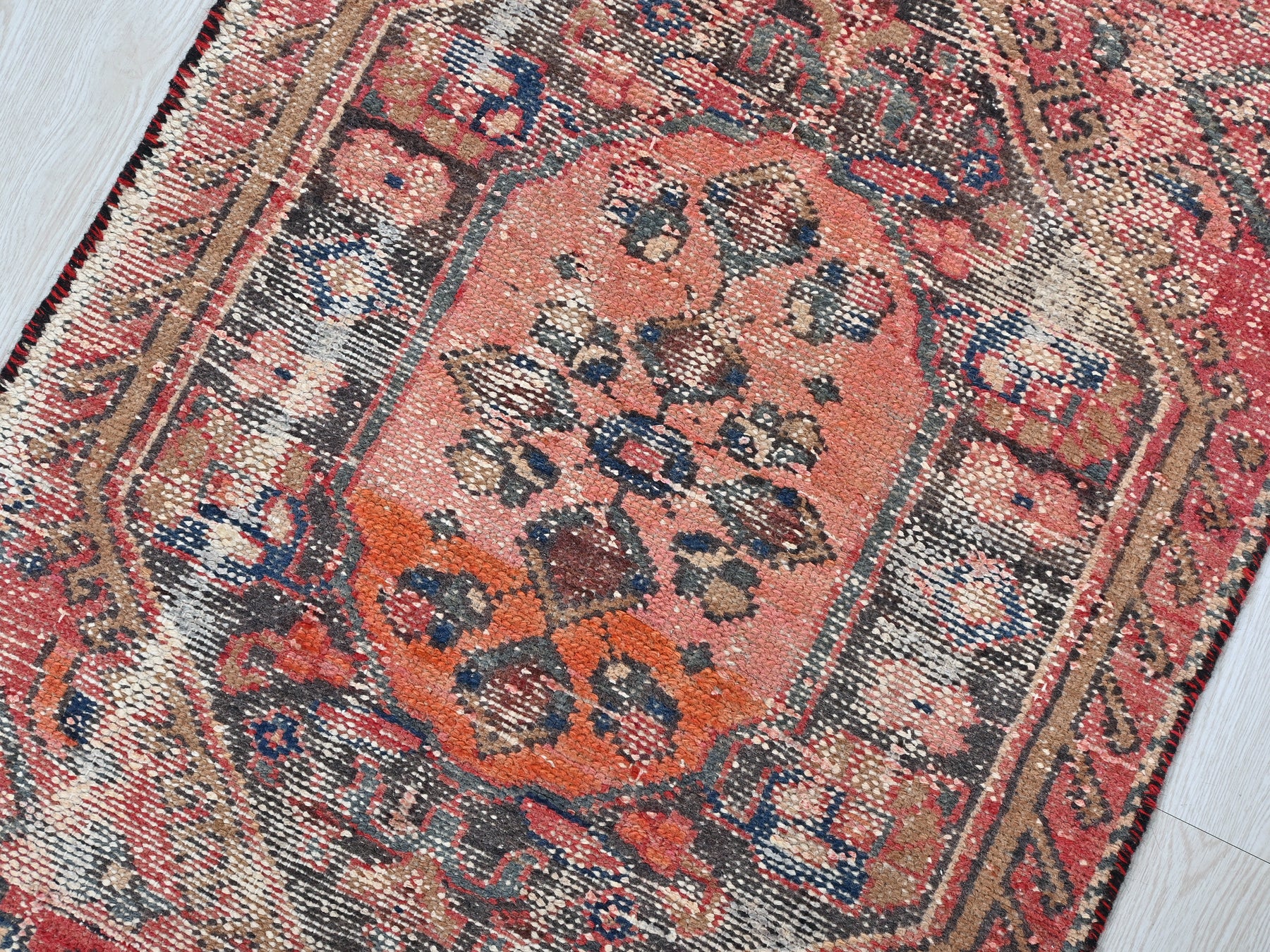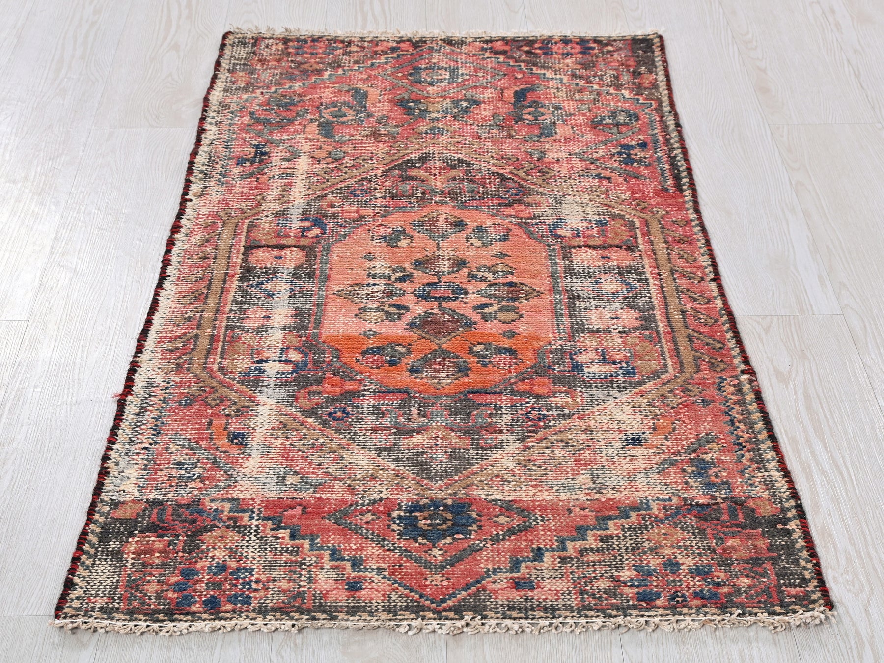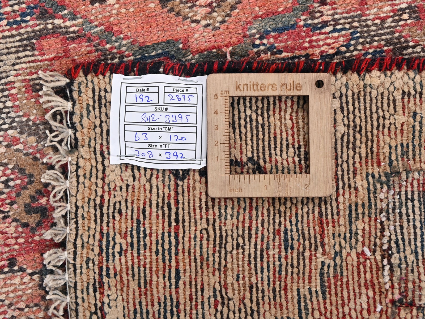 This is a hand-knotted, one-of-a-kind vintage rug. Due to the nature of this piece, there may be slight imperfections in its wear, shape, dimensions, and color. All of our rugs are professionally cleaned and repaired.