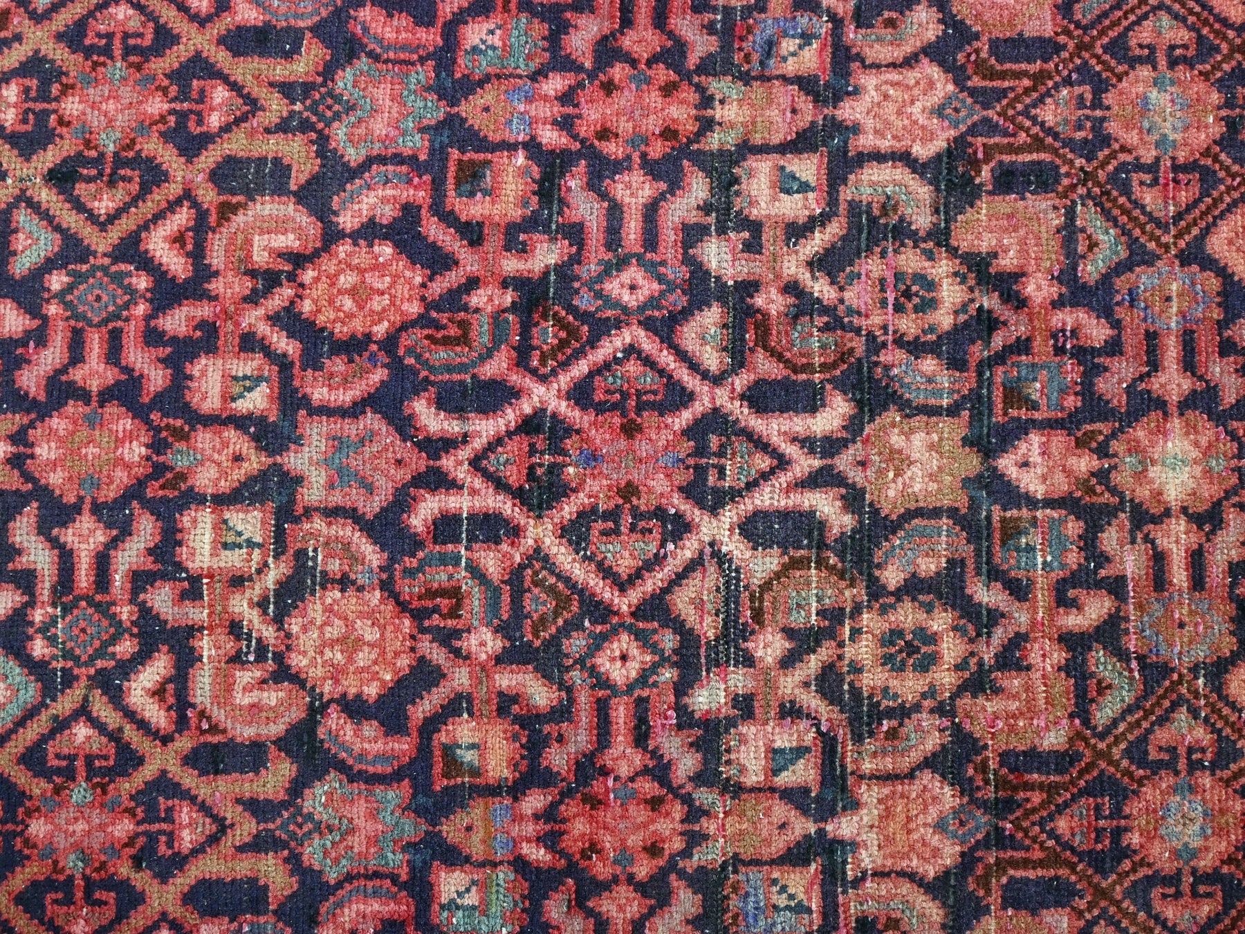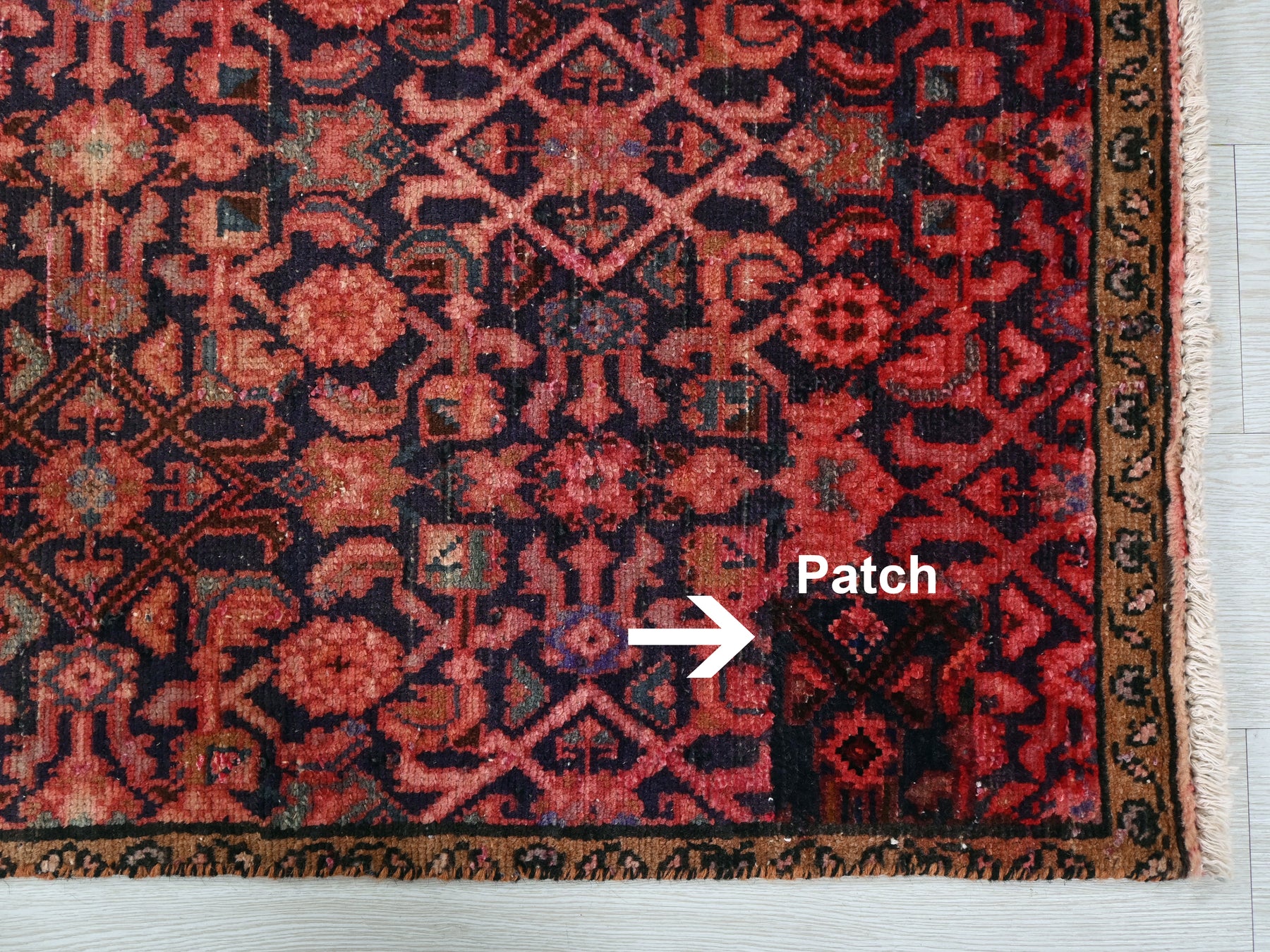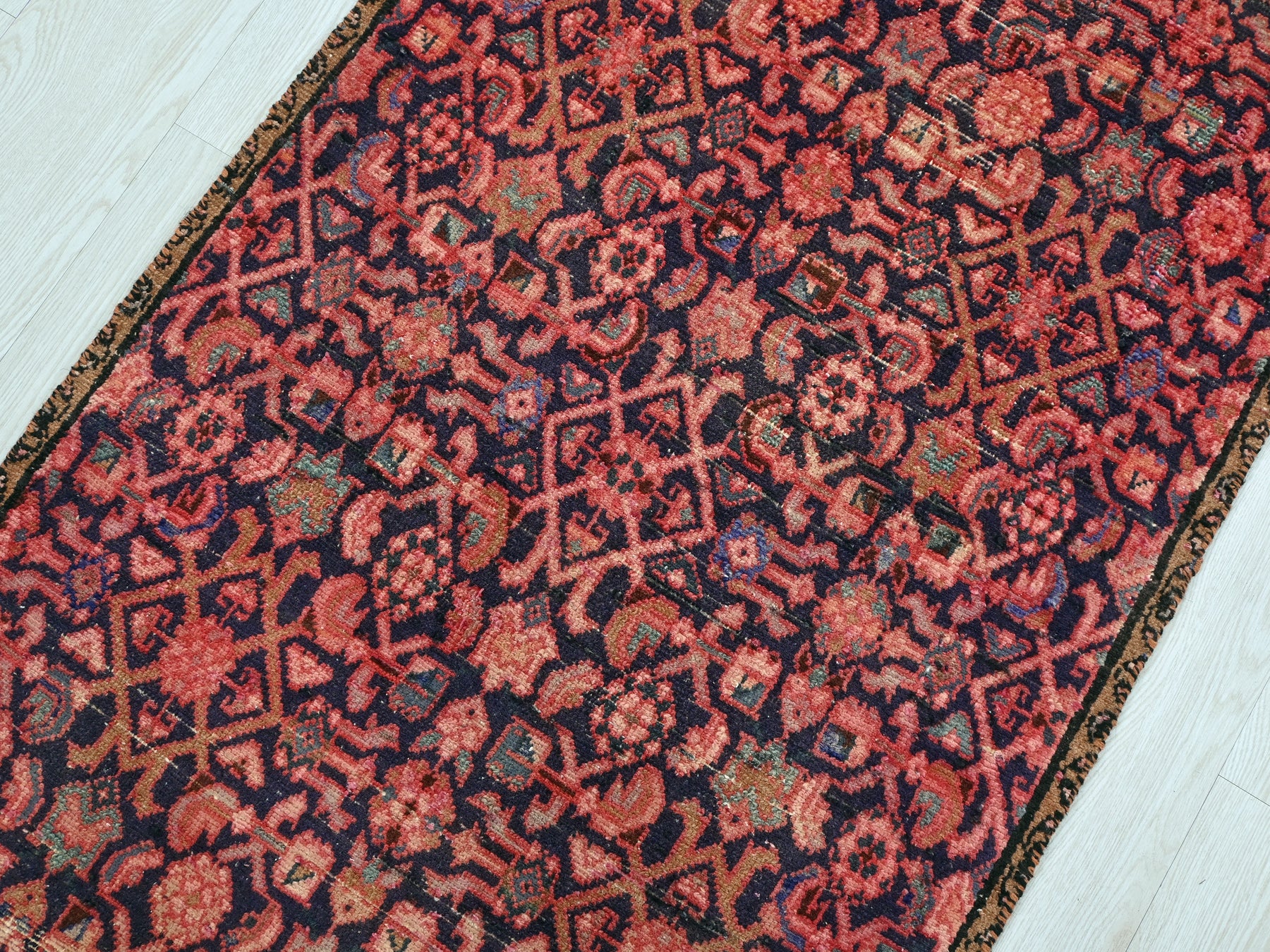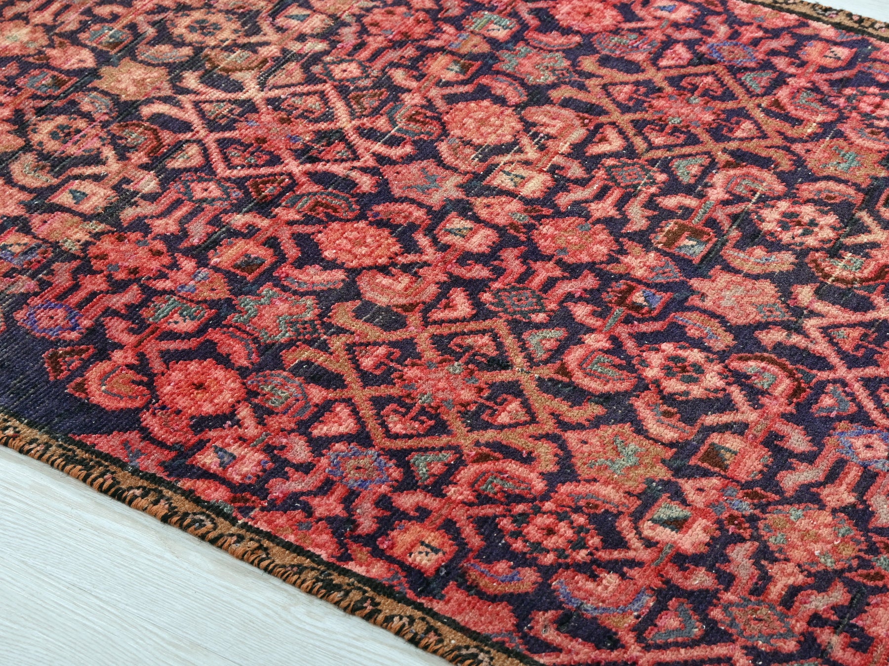 This is a hand-knotted, one-of-a-kind vintage rug. Due to the nature of this piece, there may be slight imperfections in its wear, shape, dimensions, and color. All of our rugs are professionally cleaned and repaired.