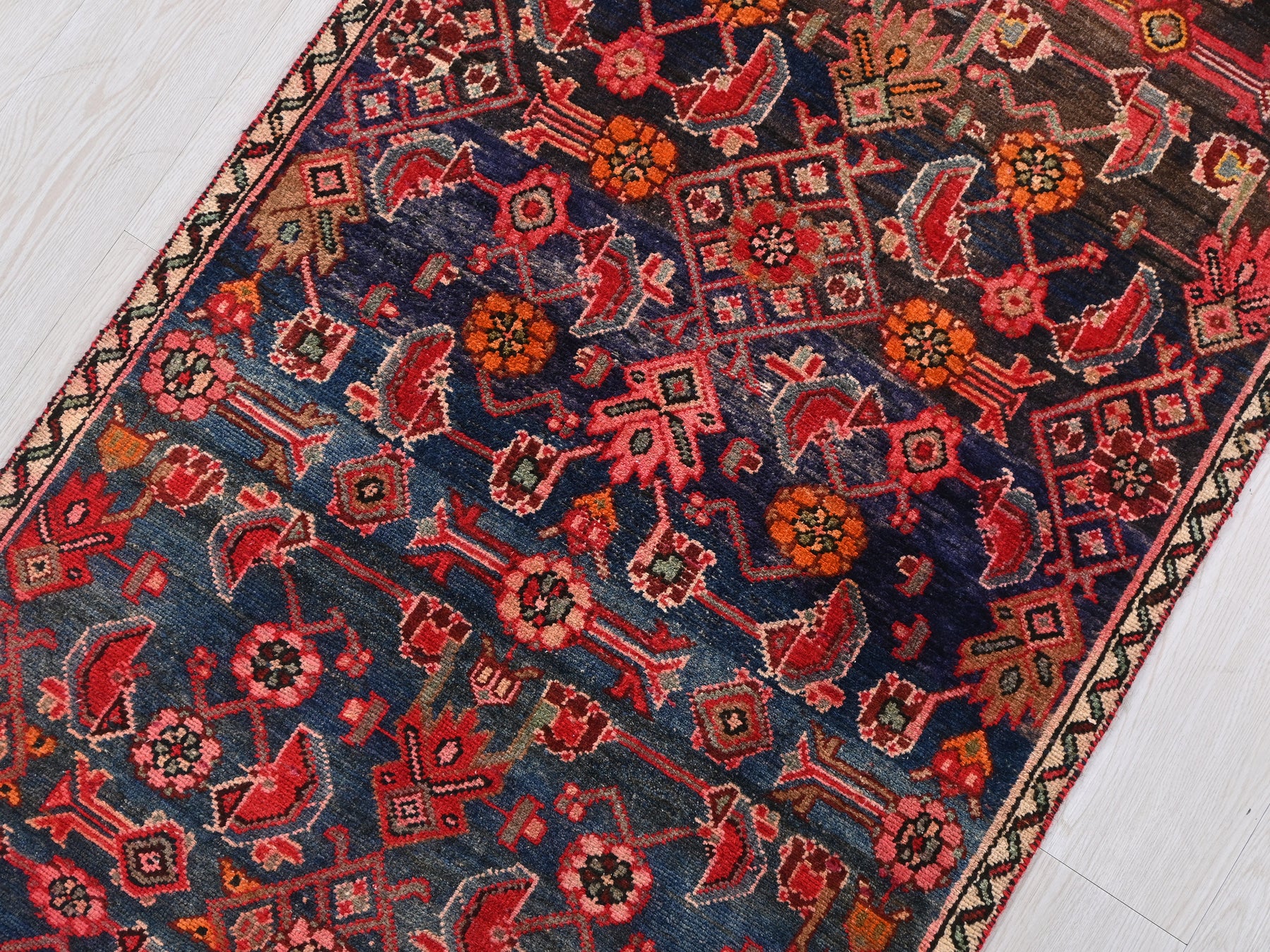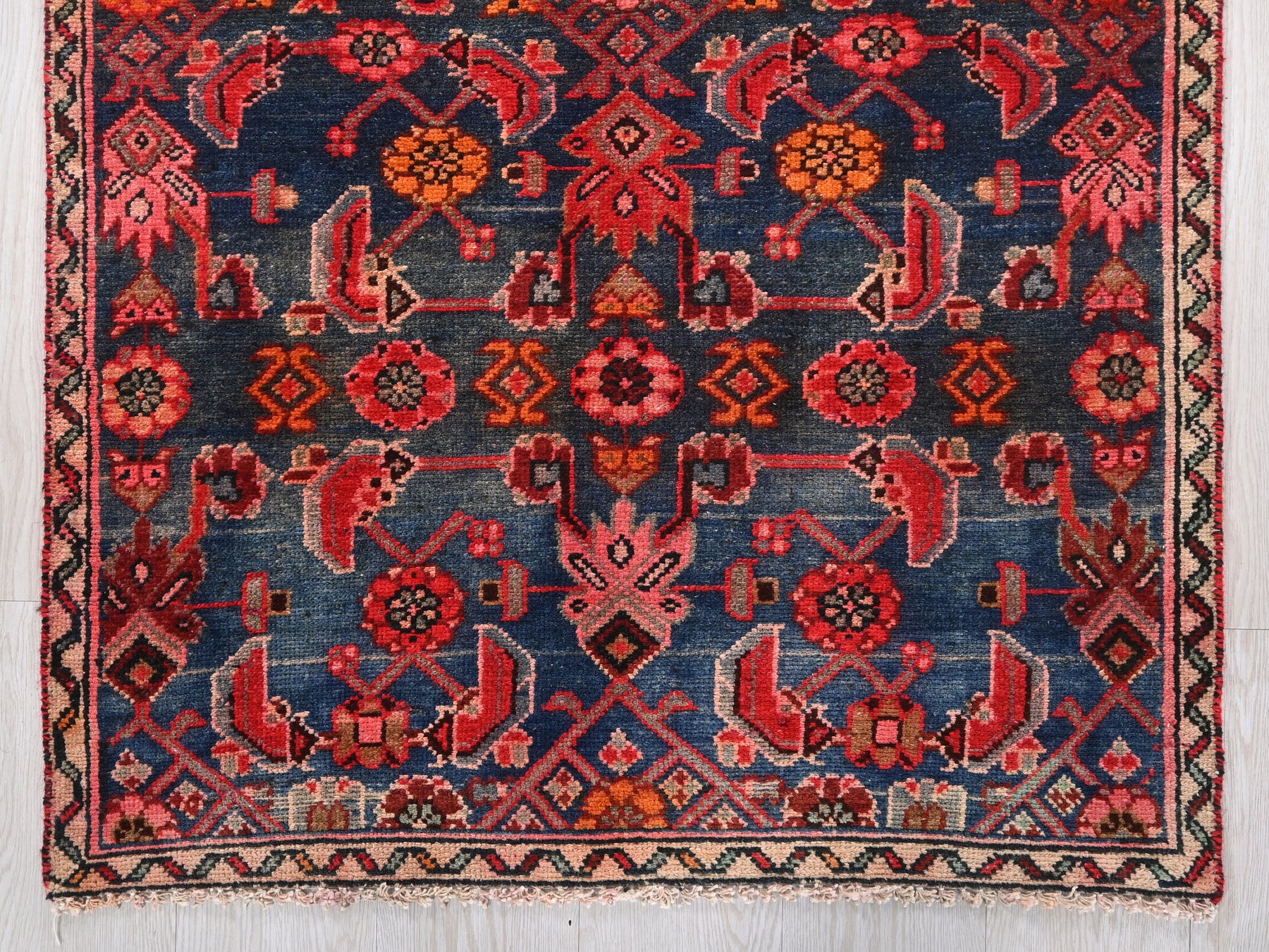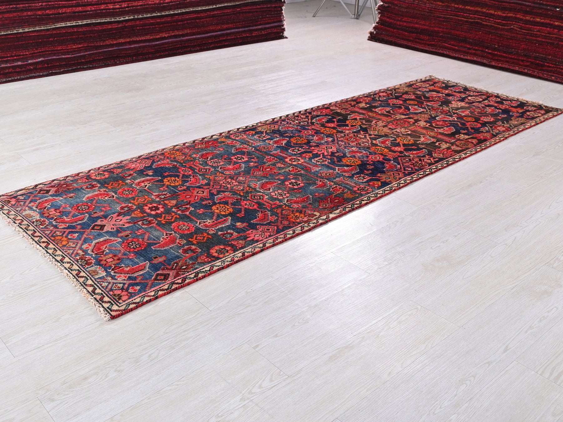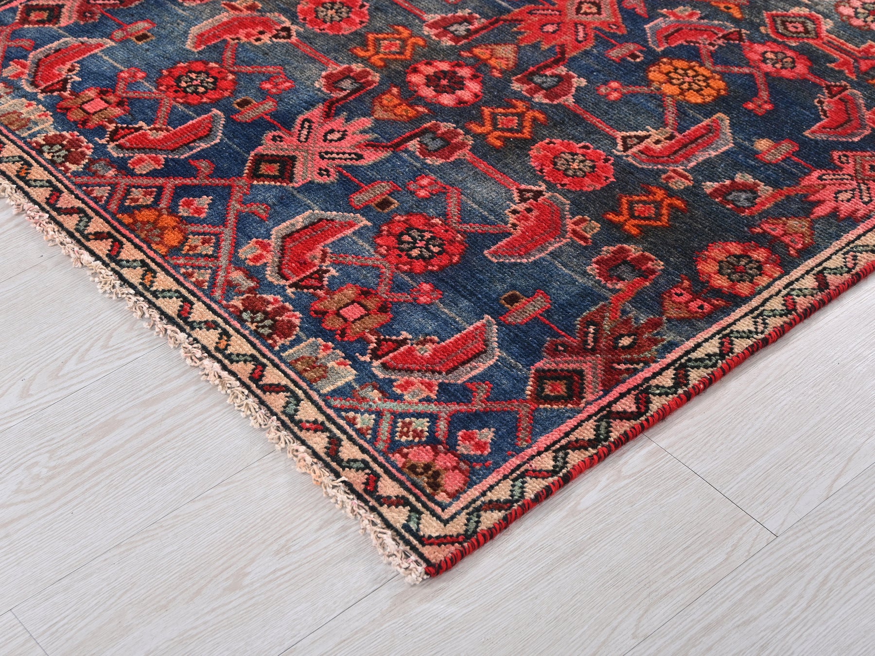 This is a hand-knotted, one-of-a-kind vintage rug. Due to the nature of this piece, there may be slight imperfections in its wear, shape, dimensions, and color. All of our rugs are professionally cleaned and repaired.