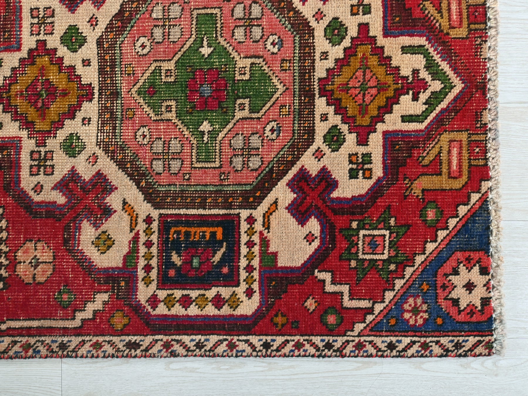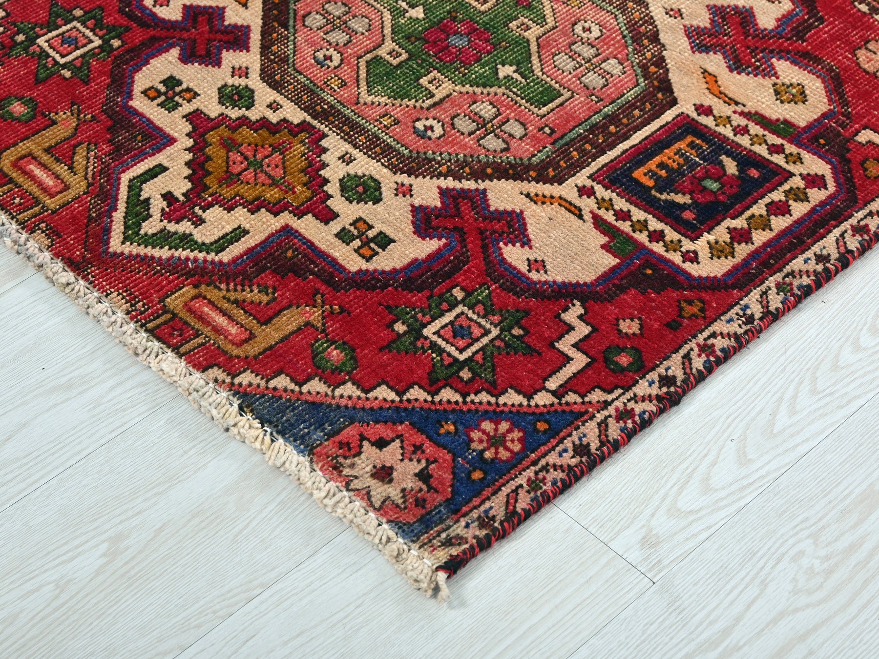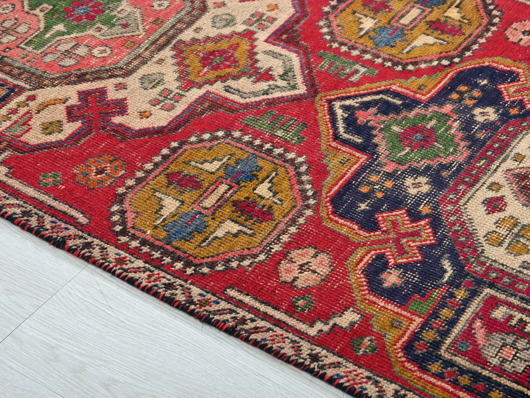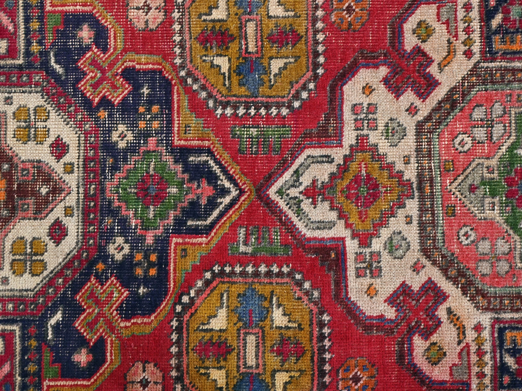 This is a hand-knotted, one-of-a-kind vintage rug. Due to the nature of this piece, there may be slight imperfections in its wear, shape, dimensions, and color. All of our rugs are professionally cleaned and repaired.
