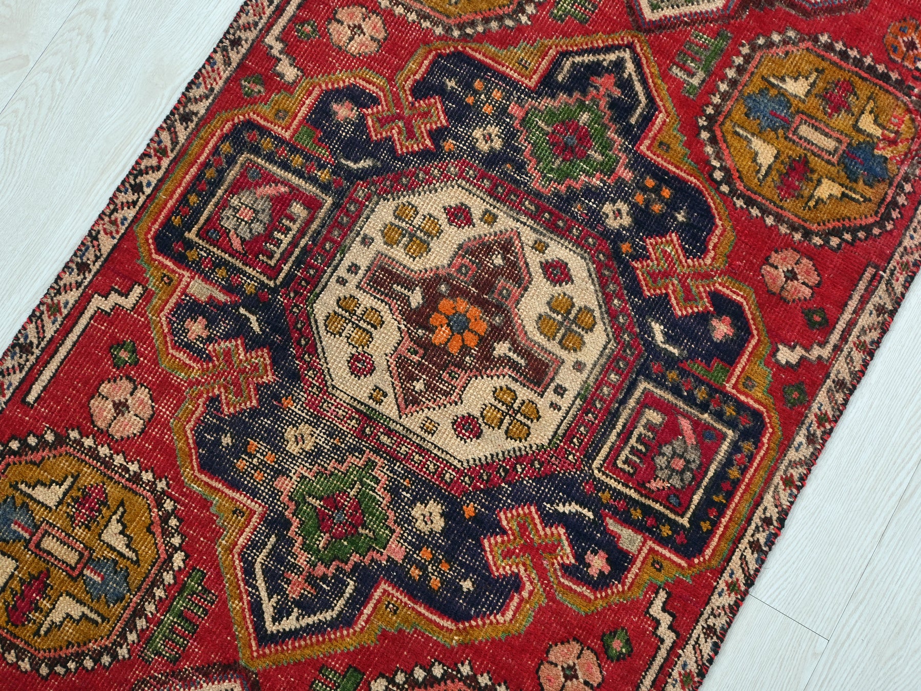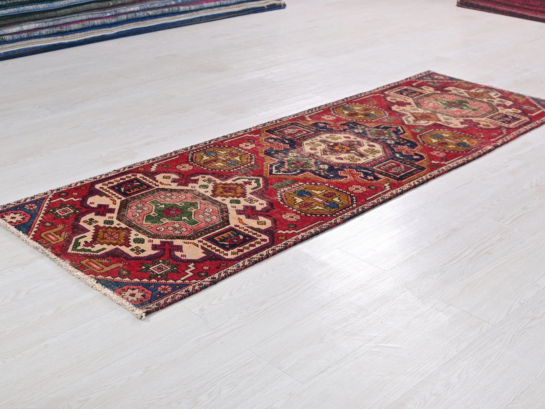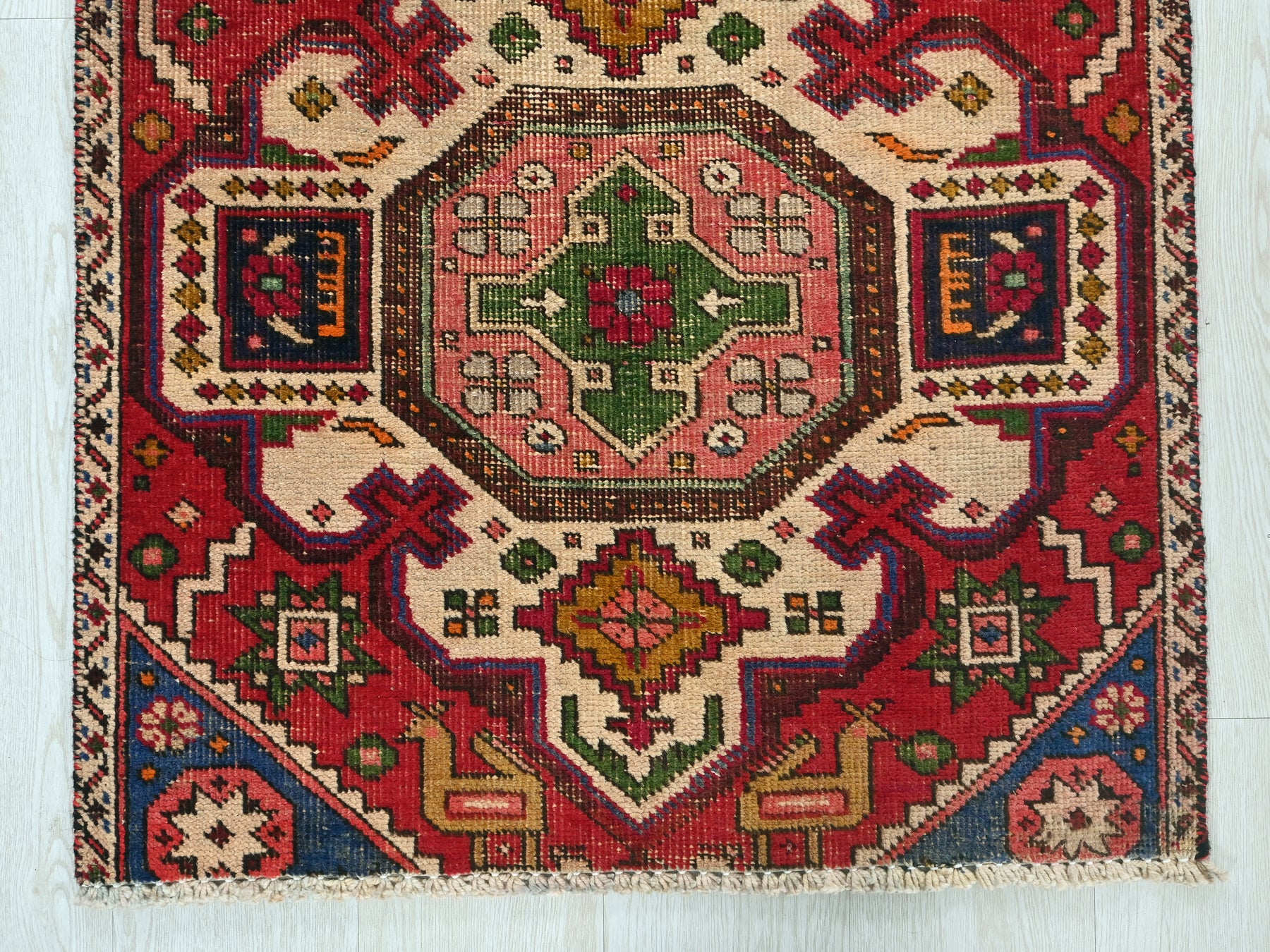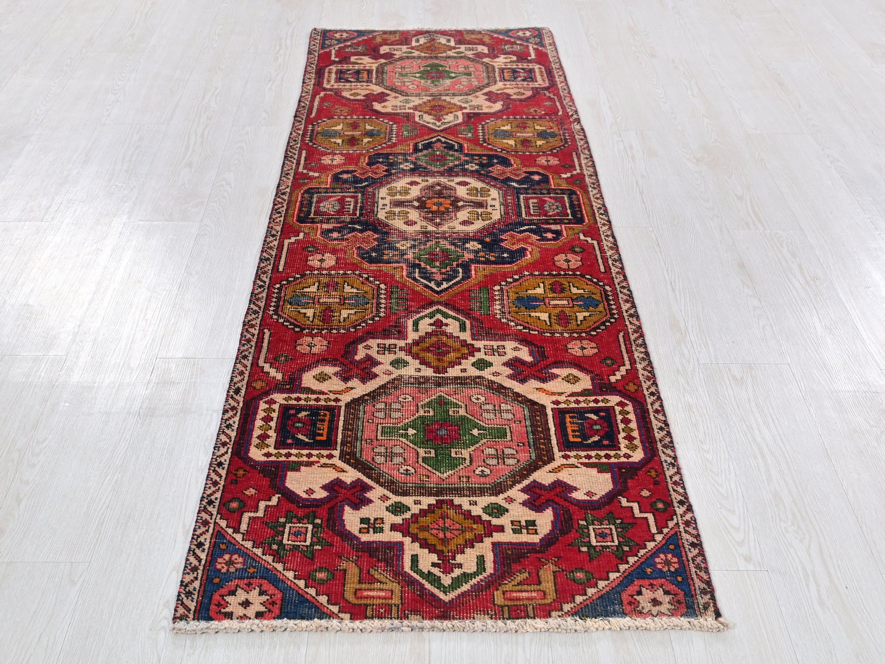 This is a hand-knotted, one-of-a-kind vintage rug. Due to the nature of this piece, there may be slight imperfections in its wear, shape, dimensions, and color. All of our rugs are professionally cleaned and repaired.