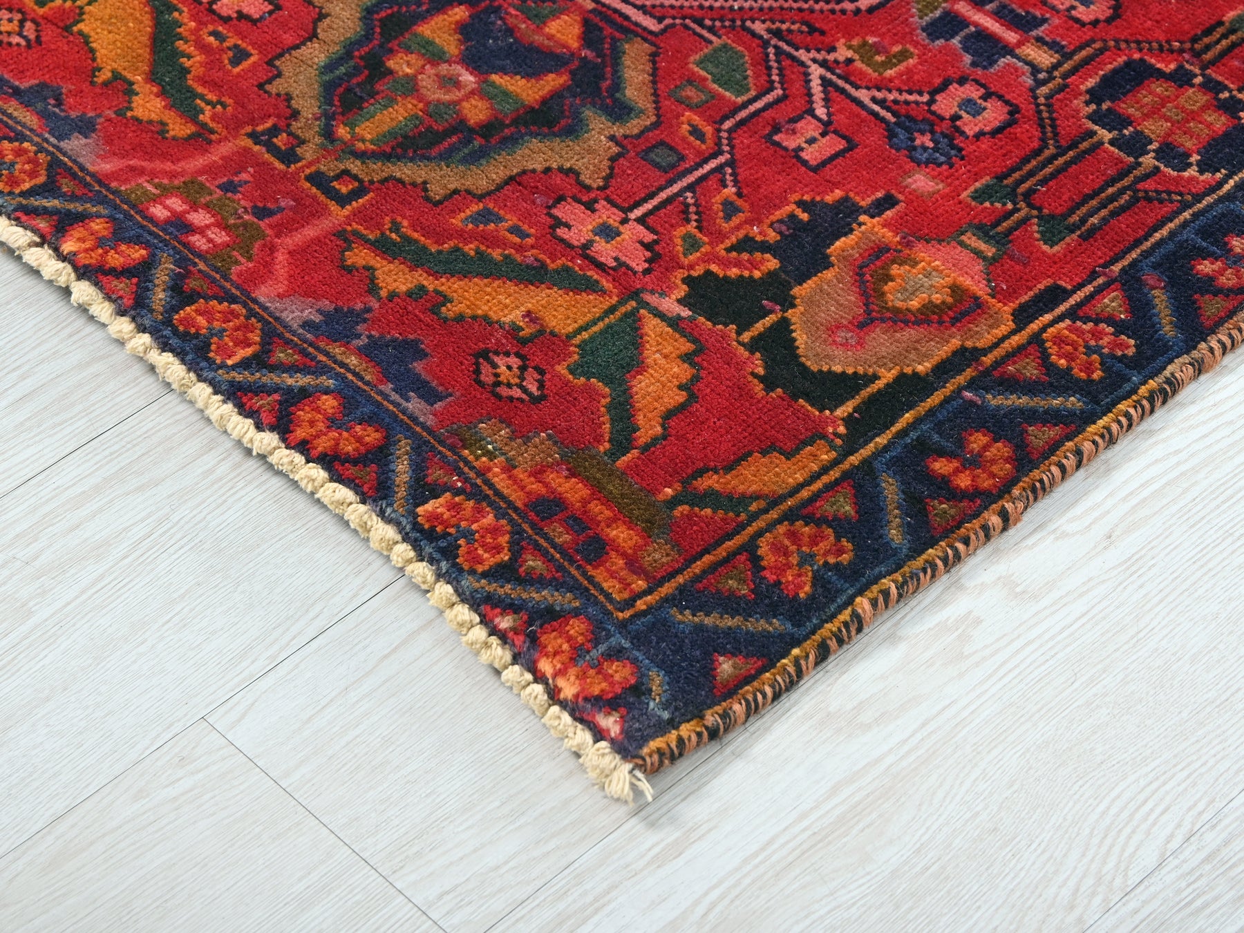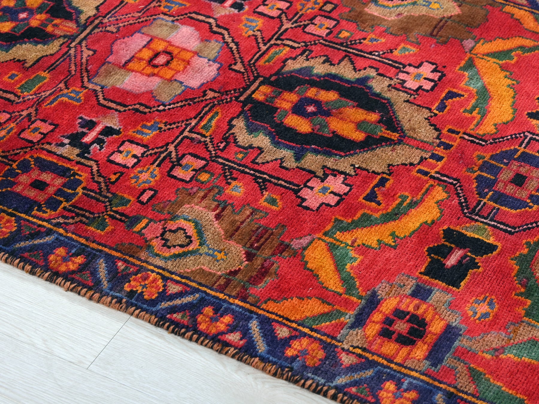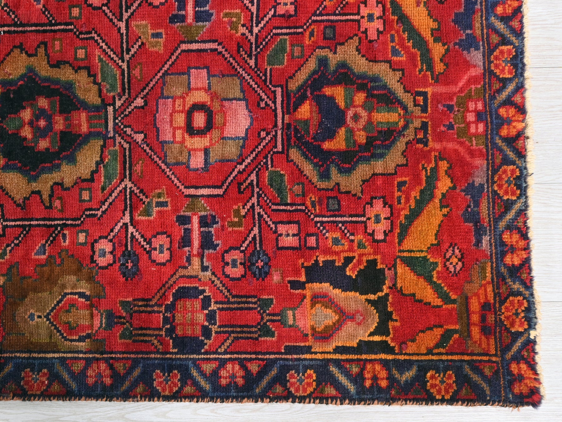 This is a hand-knotted, one-of-a-kind vintage rug. Due to the nature of this piece, there may be slight imperfections in its wear, shape, dimensions, and color. All of our rugs are professionally cleaned and repaired.