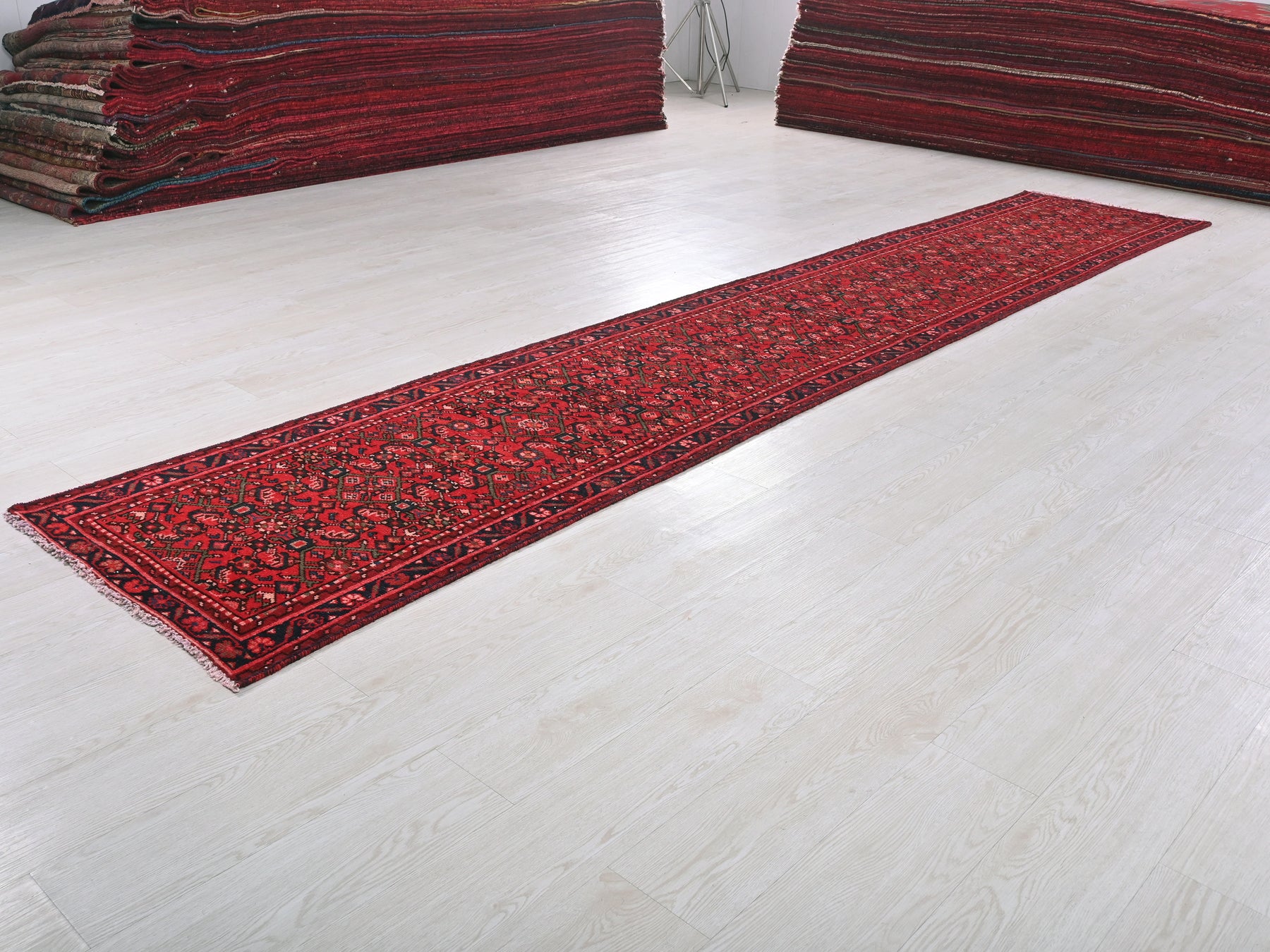 This is a hand-knotted, one-of-a-kind vintage rug. Due to the nature of this piece, there may be slight imperfections in its wear, shape, dimensions, and color. All of our rugs are professionally cleaned and repaired.