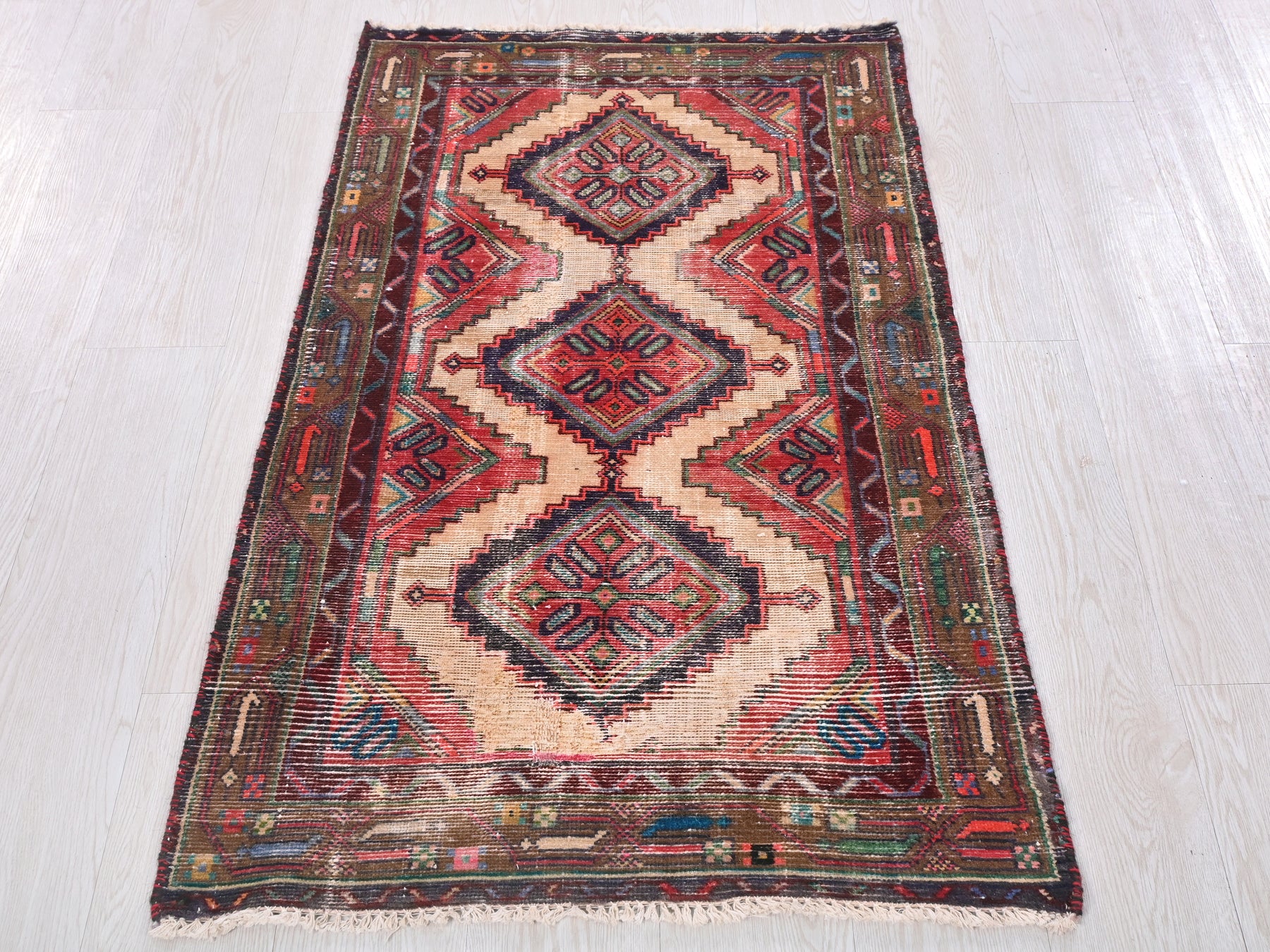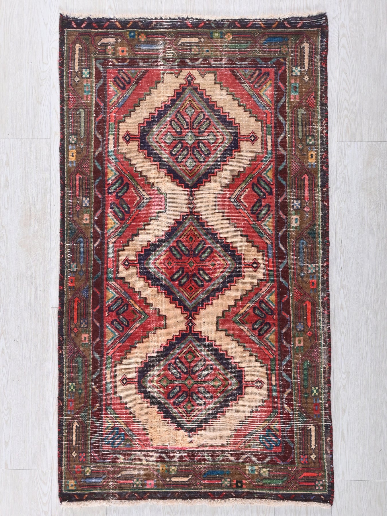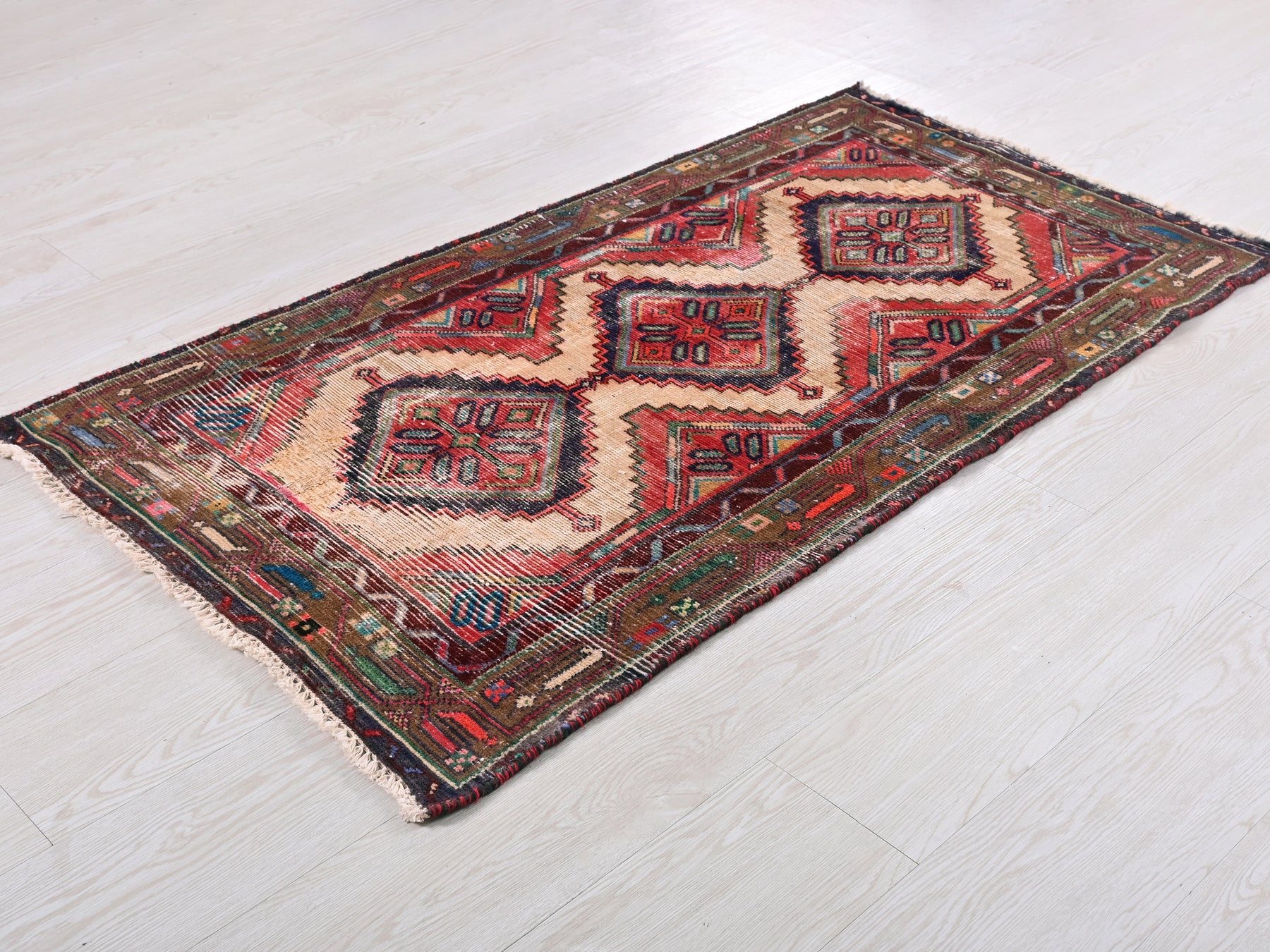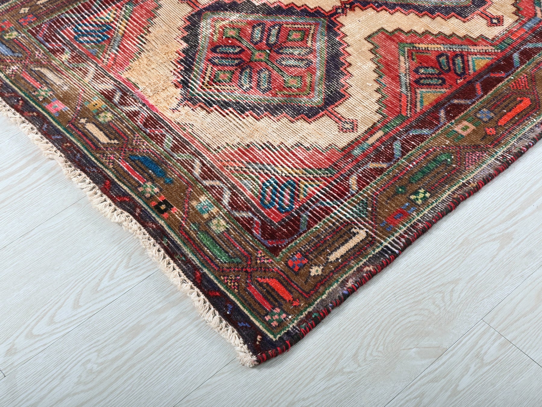 This is a hand-knotted, one-of-a-kind vintage rug. Due to the nature of this piece, there may be slight imperfections in its wear, shape, dimensions, and color. All of our rugs are professionally cleaned and repaired.