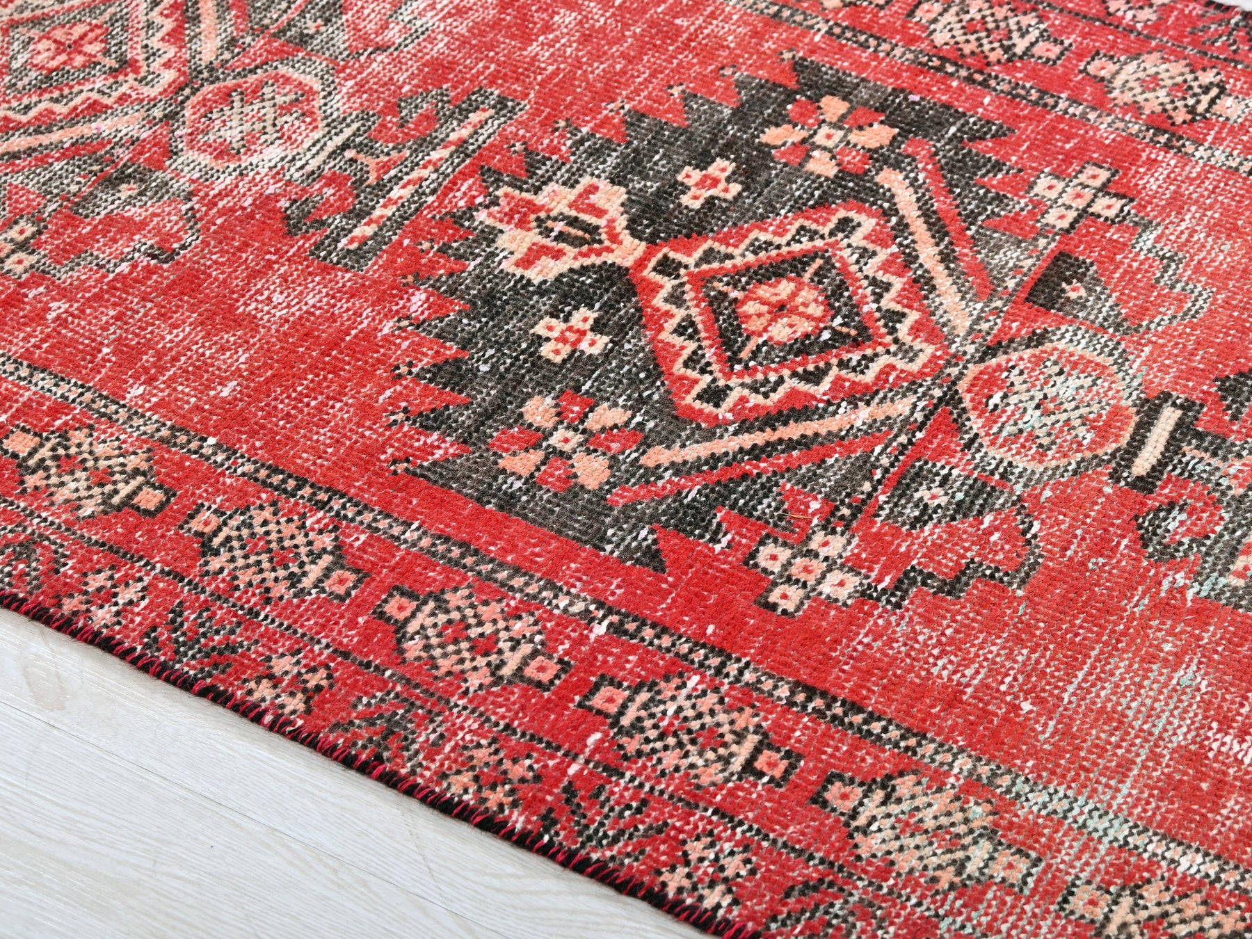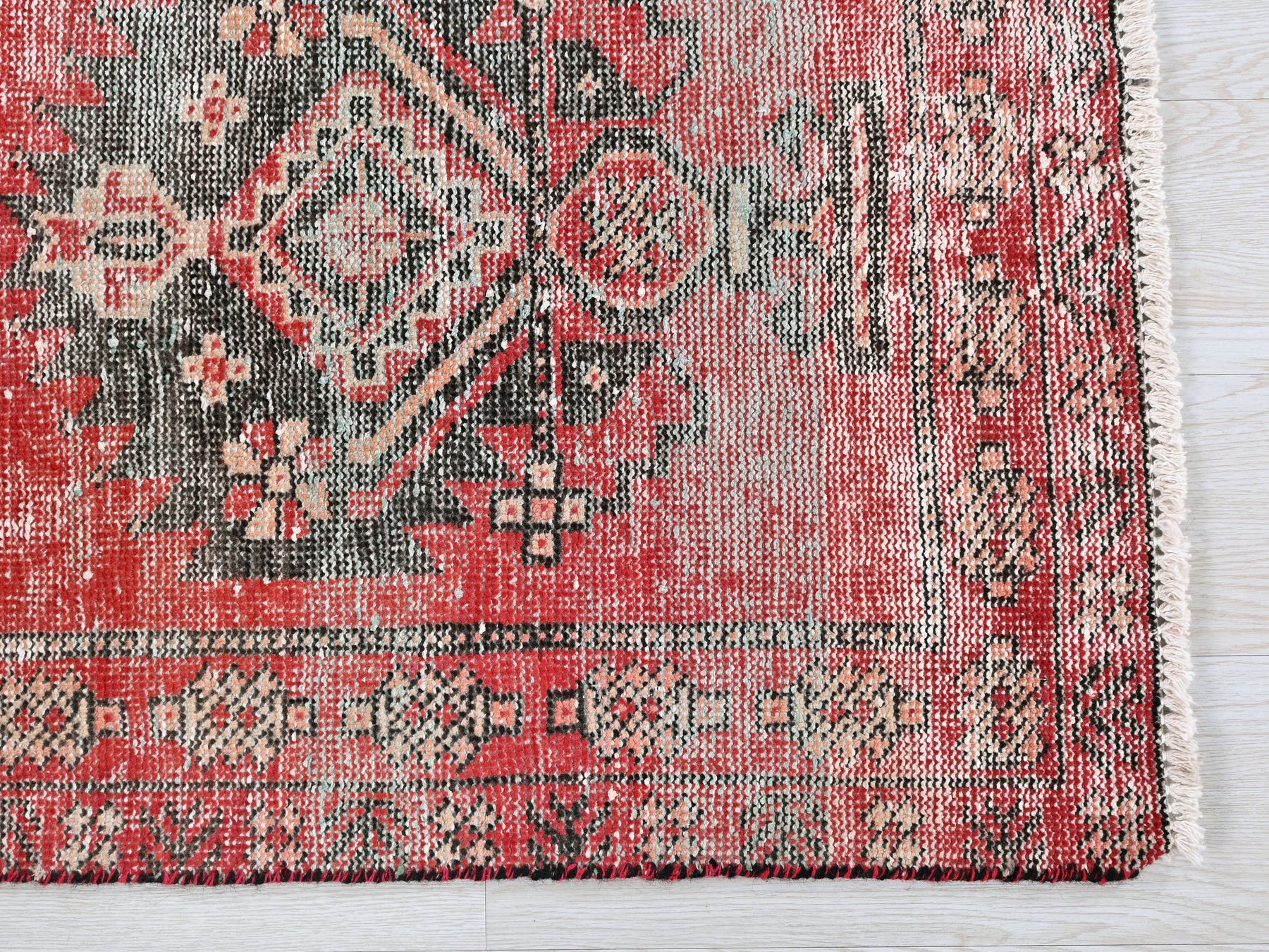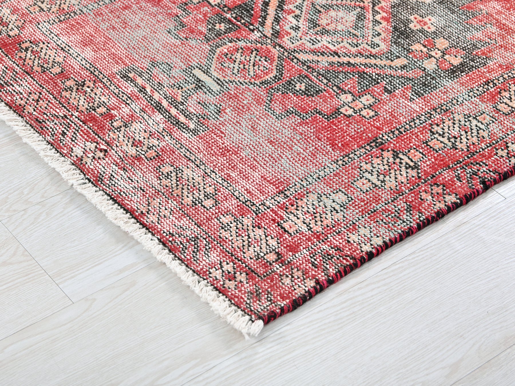 This is a hand-knotted, one-of-a-kind vintage rug. Due to the nature of this piece, there may be slight imperfections in its wear, shape, dimensions, and color. All of our rugs are professionally cleaned and repaired.