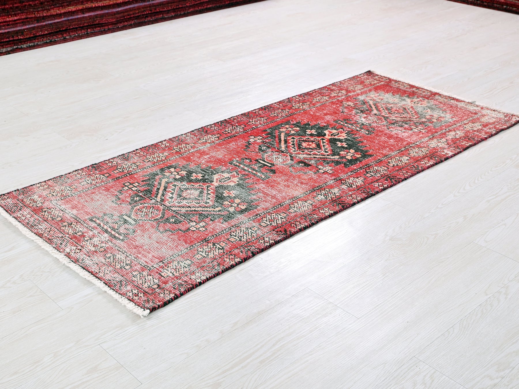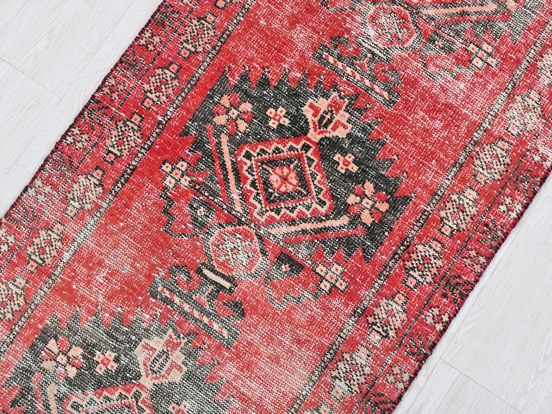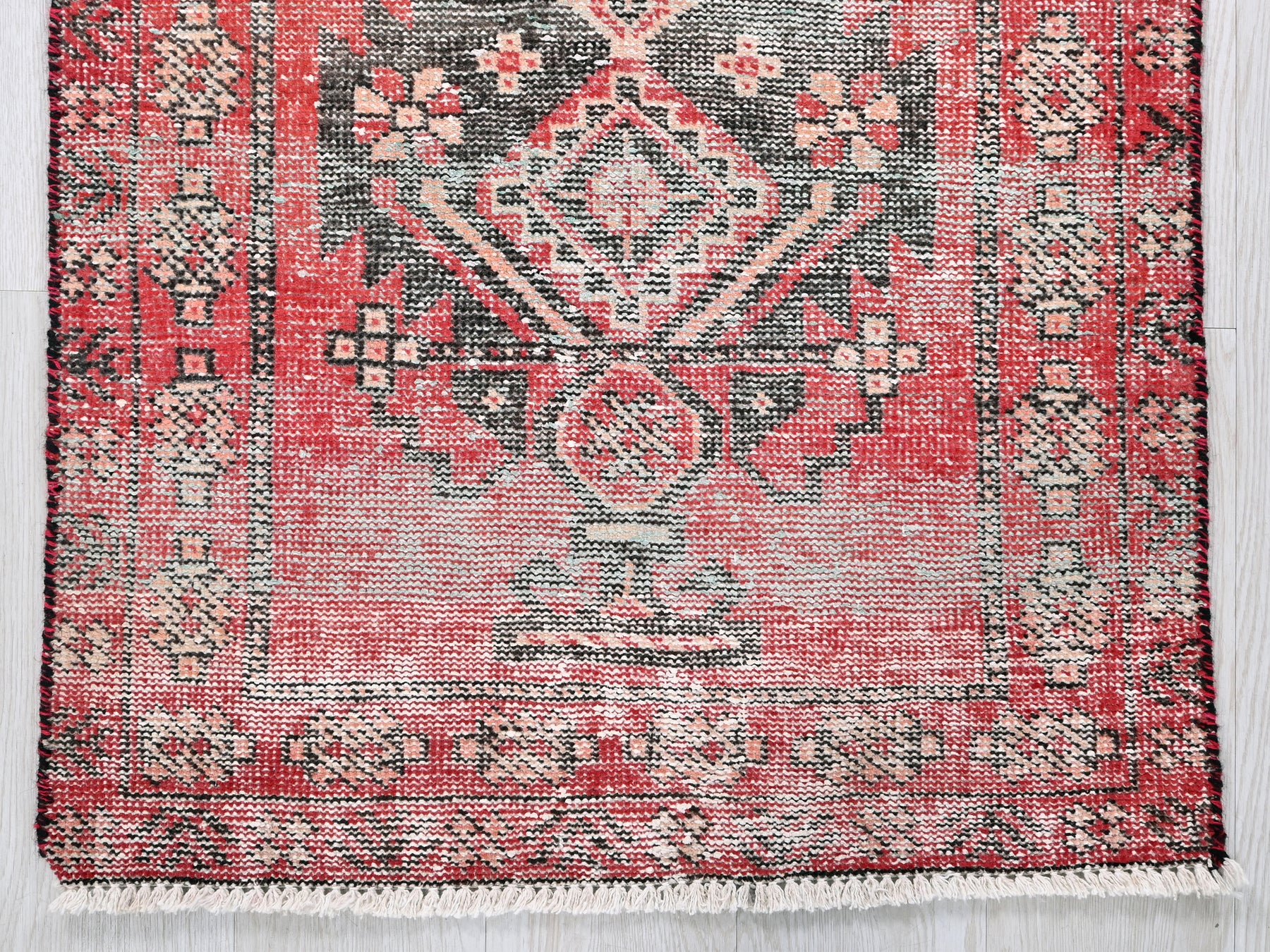 This is a hand-knotted, one-of-a-kind vintage rug. Due to the nature of this piece, there may be slight imperfections in its wear, shape, dimensions, and color. All of our rugs are professionally cleaned and repaired.