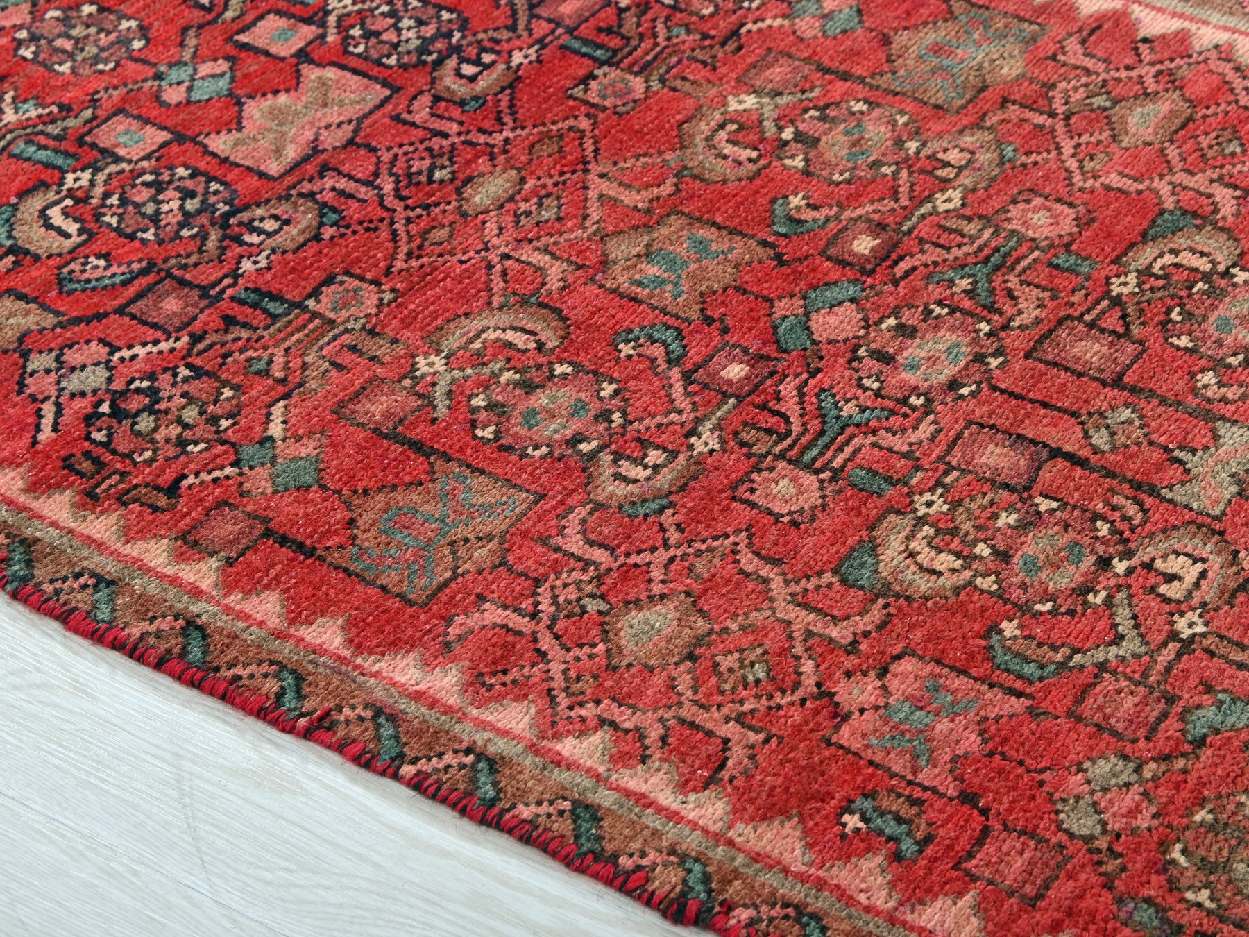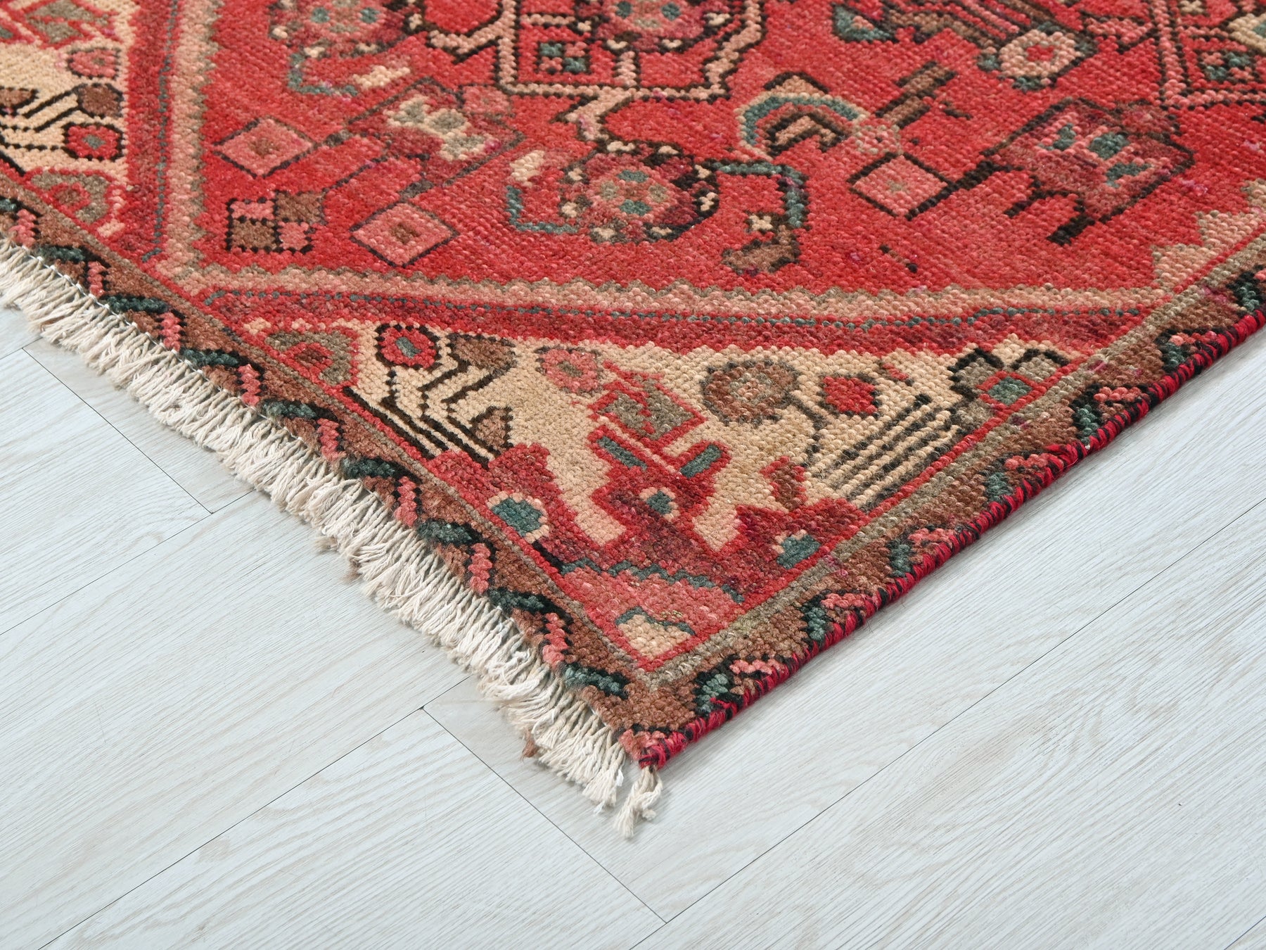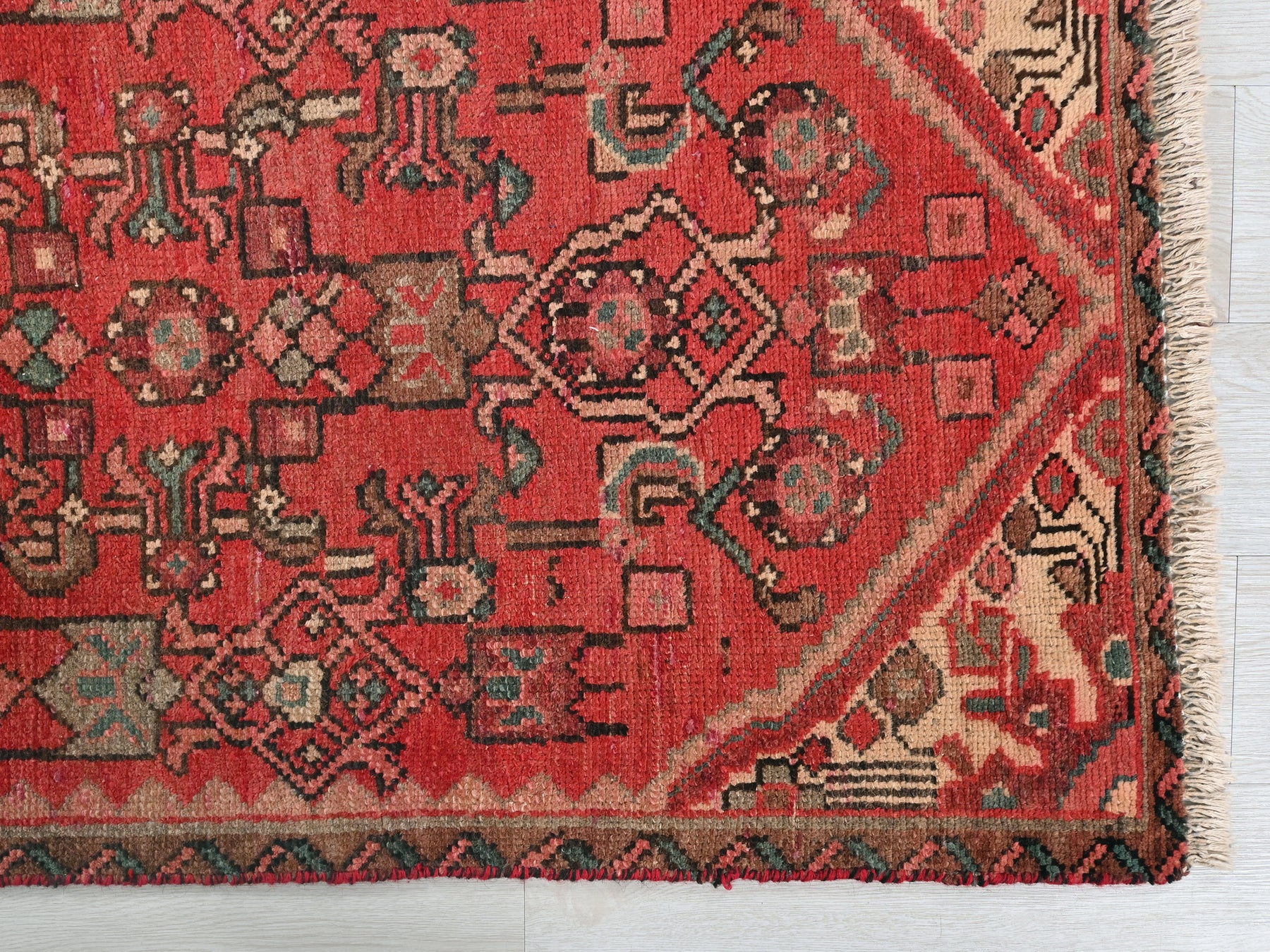 This is a hand-knotted, one-of-a-kind vintage rug. Due to the nature of this piece, there may be slight imperfections in its wear, shape, dimensions, and color. All of our rugs are professionally cleaned and repaired.