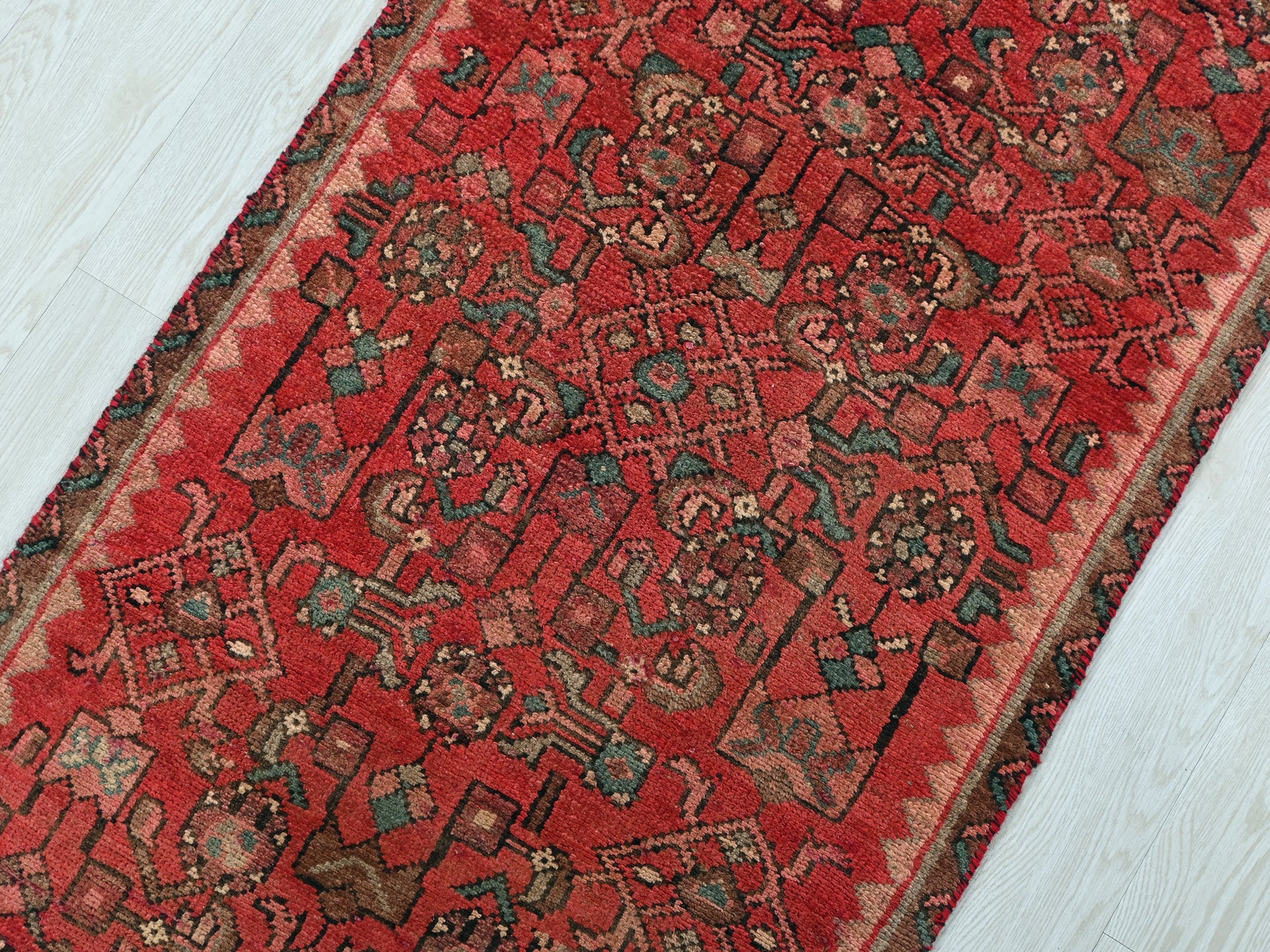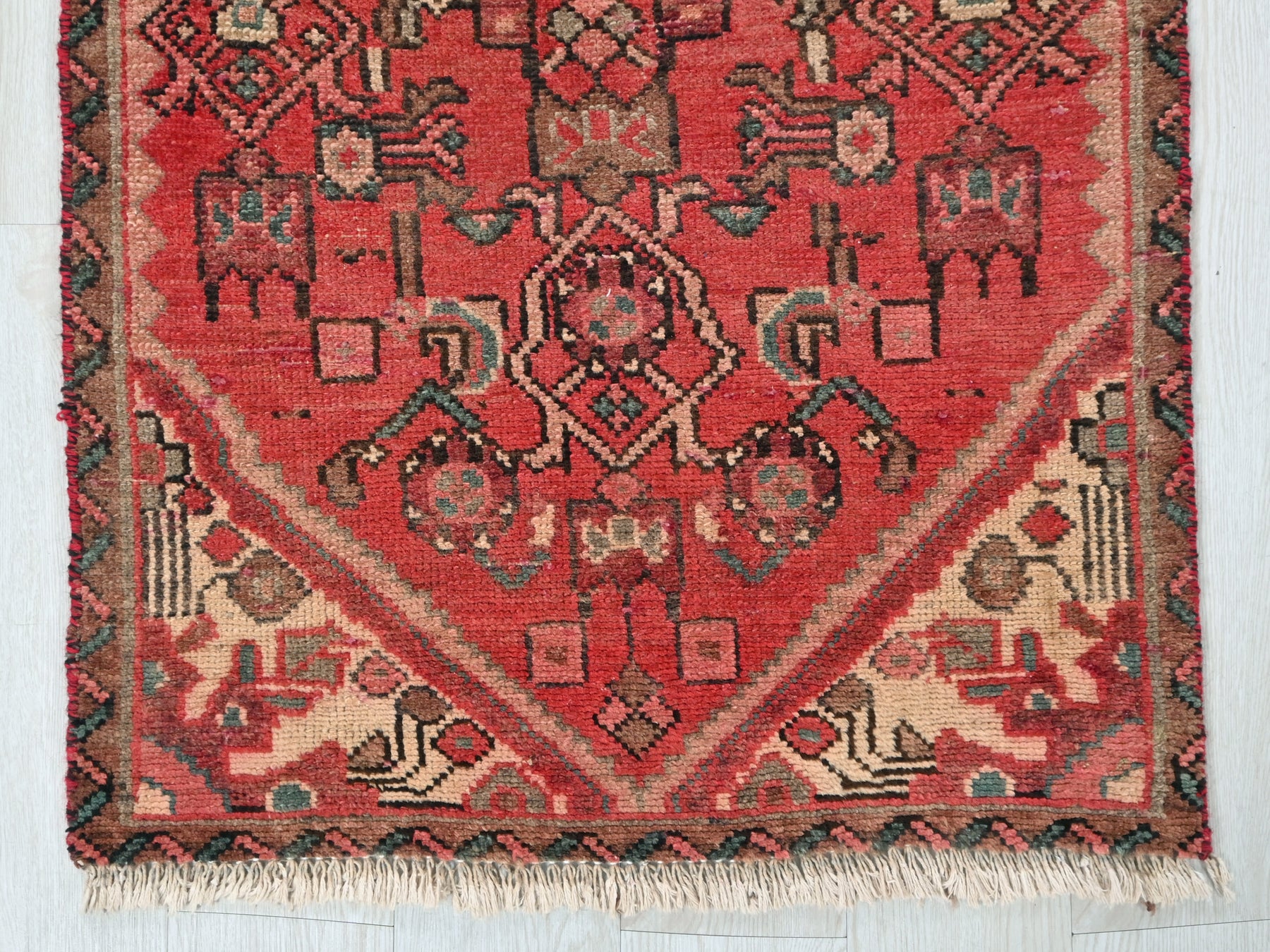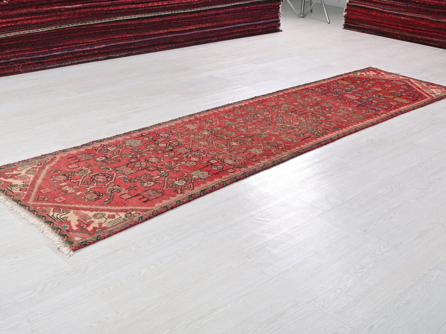 This is a hand-knotted, one-of-a-kind vintage rug. Due to the nature of this piece, there may be slight imperfections in its wear, shape, dimensions, and color. All of our rugs are professionally cleaned and repaired.