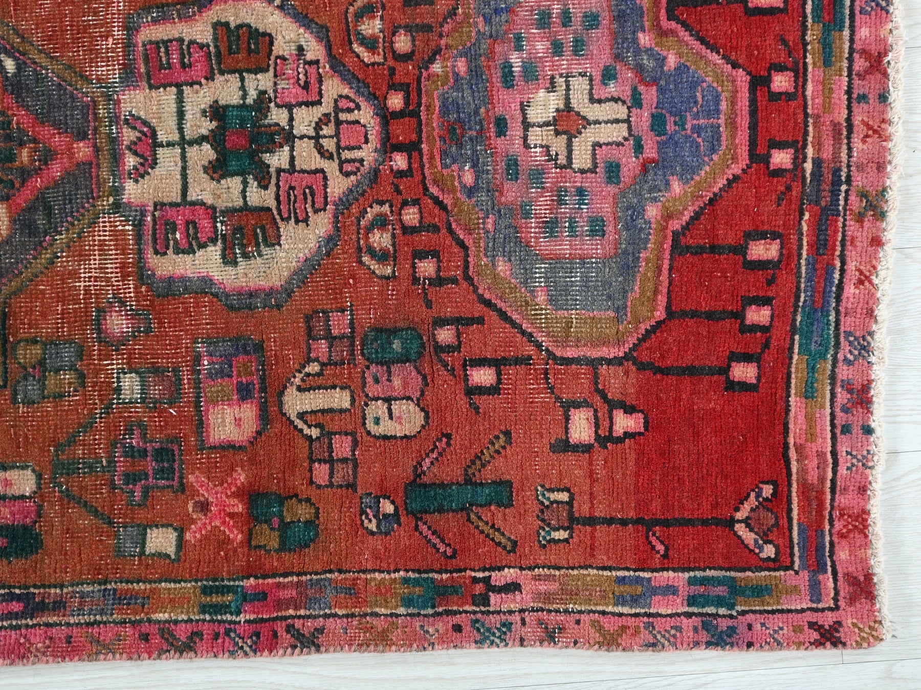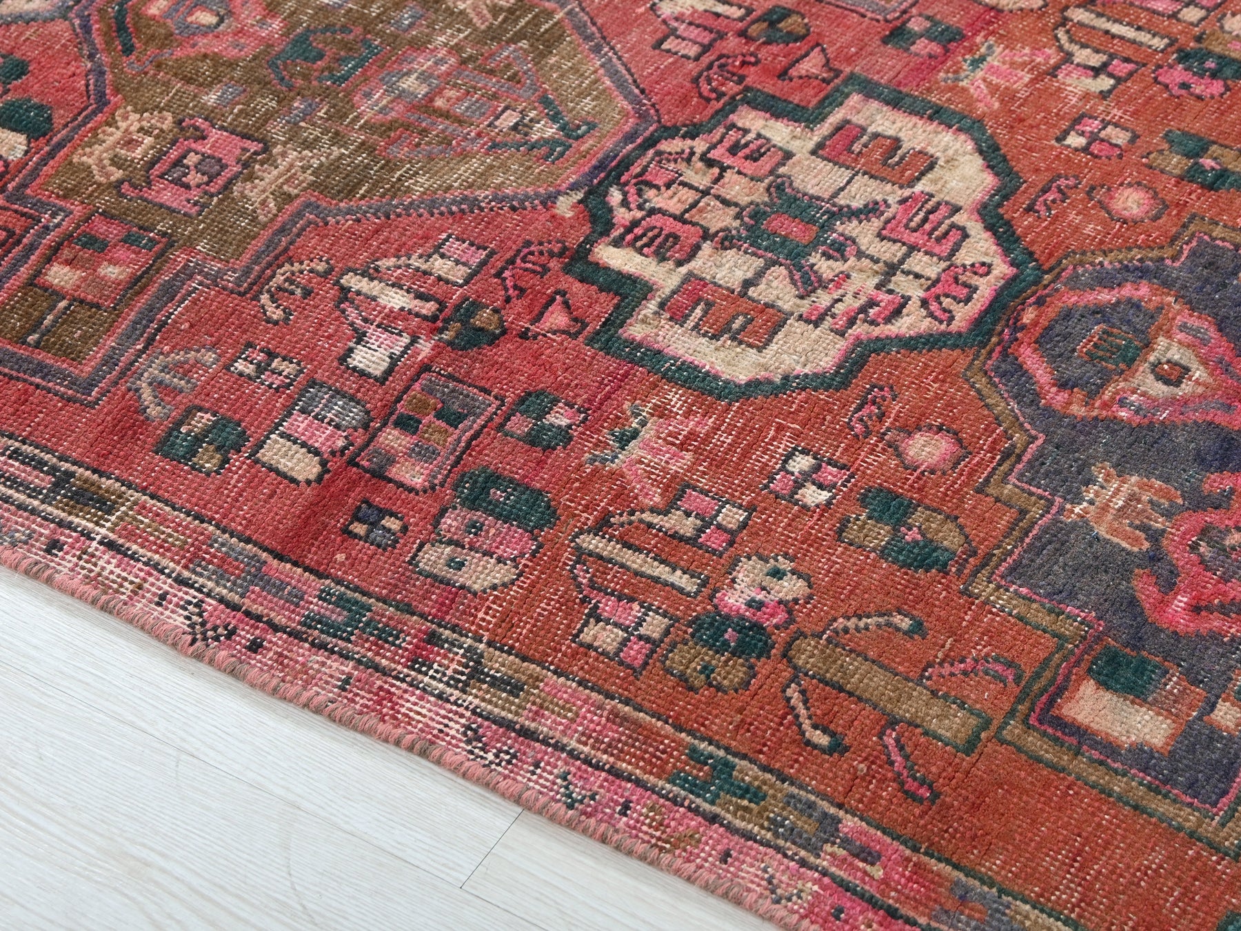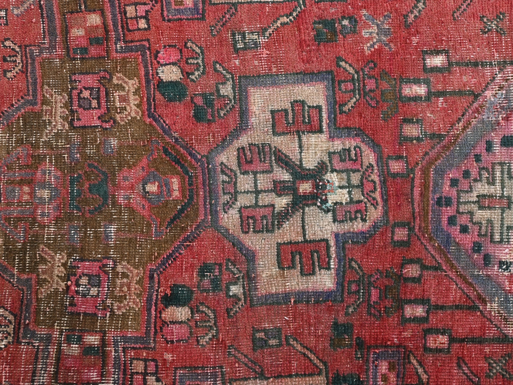 This is a hand-knotted, one-of-a-kind vintage rug. Due to the nature of this piece, there may be slight imperfections in its wear, shape, dimensions, and color. All of our rugs are professionally cleaned and repaired.