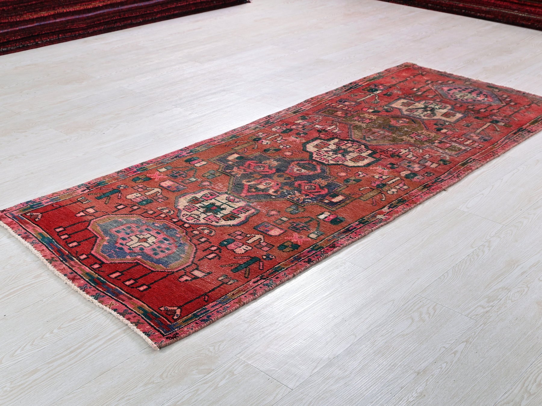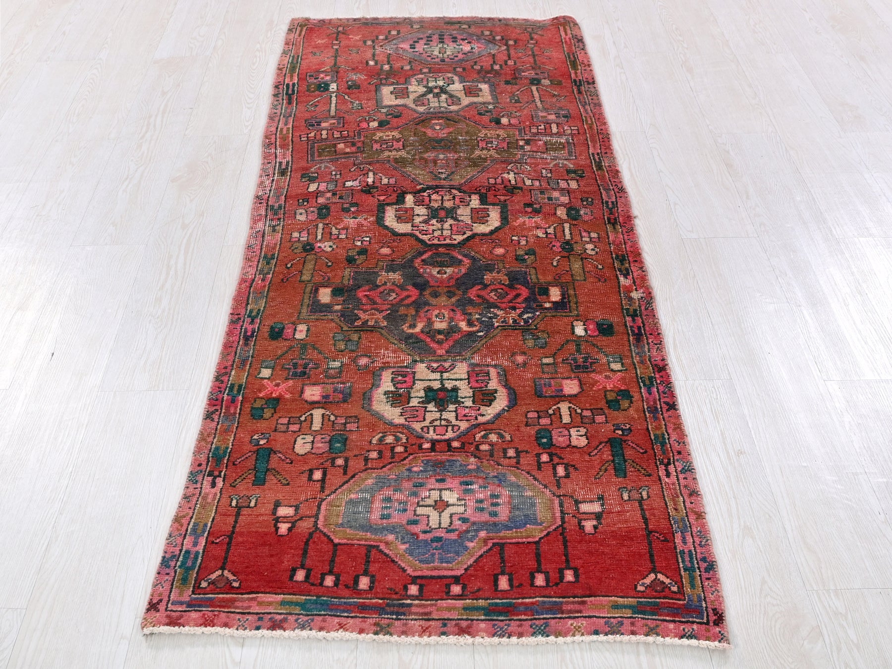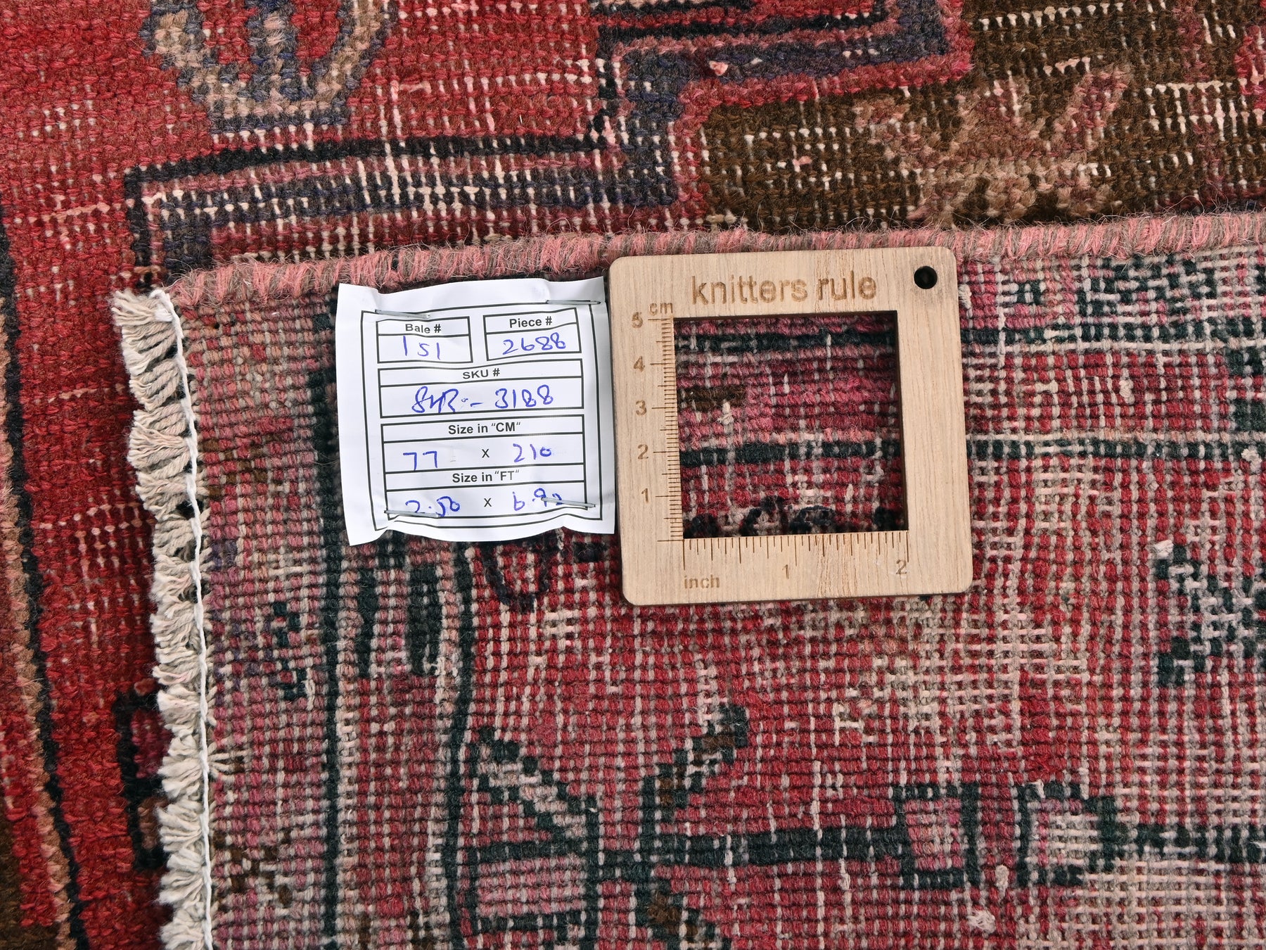 This is a hand-knotted, one-of-a-kind vintage rug. Due to the nature of this piece, there may be slight imperfections in its wear, shape, dimensions, and color. All of our rugs are professionally cleaned and repaired.