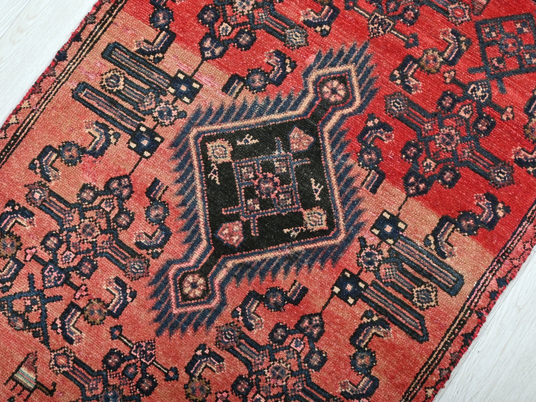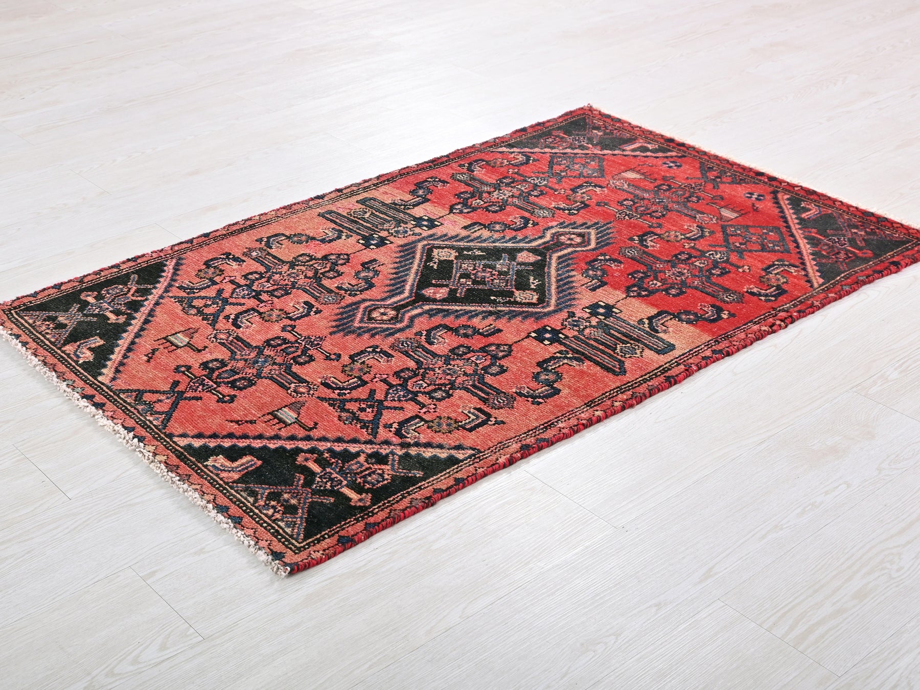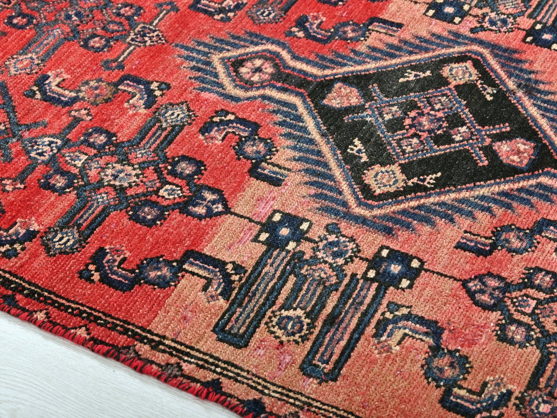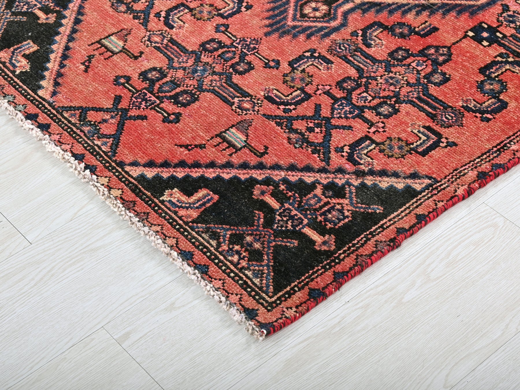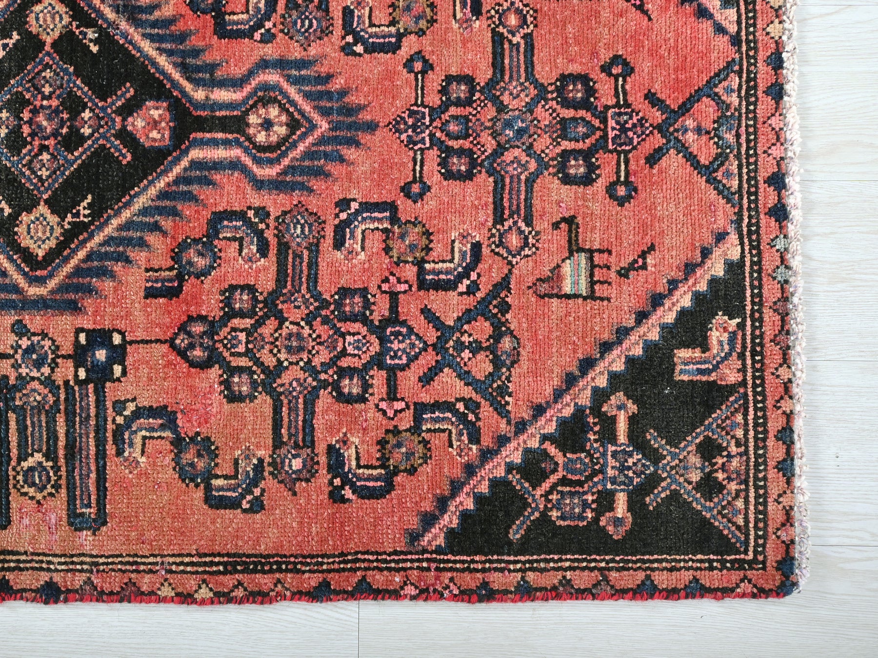 This is a hand-knotted, one-of-a-kind vintage rug. Due to the nature of this piece, there may be slight imperfections in its wear, shape, dimensions, and color. All of our rugs are professionally cleaned and repaired.